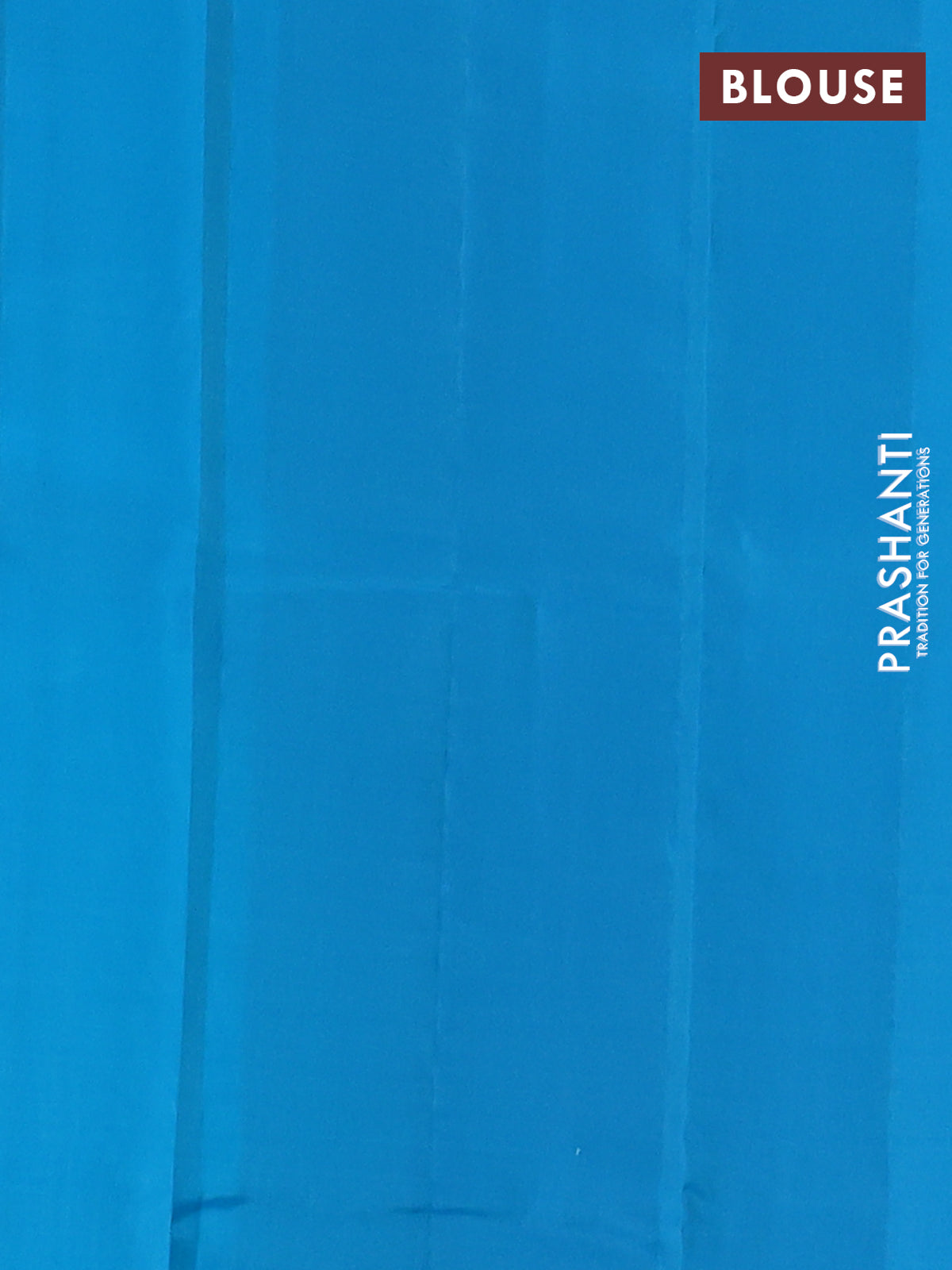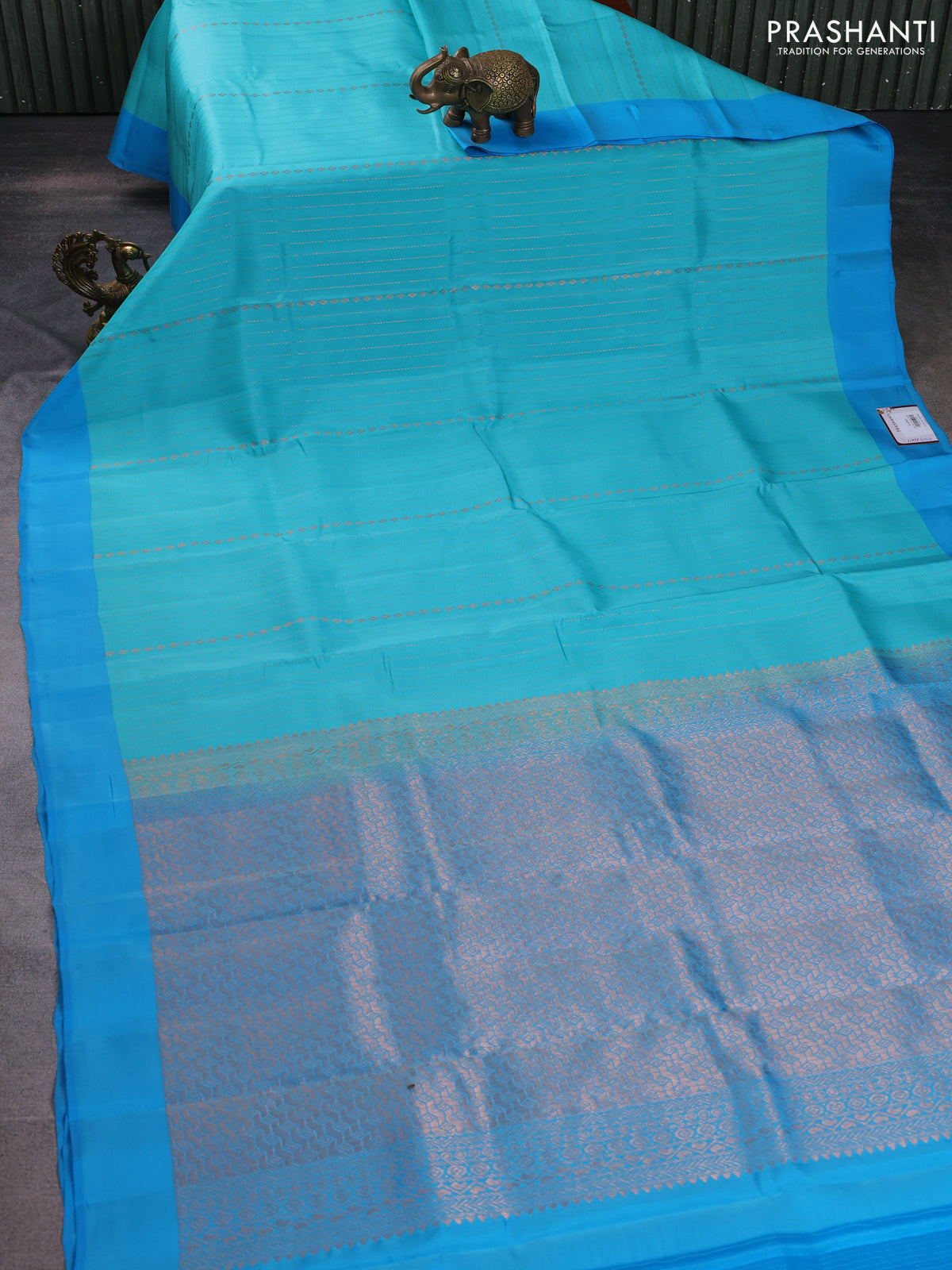 Kanchipuram silk saree teal blue and blue with allover copper zari weaves and simple border