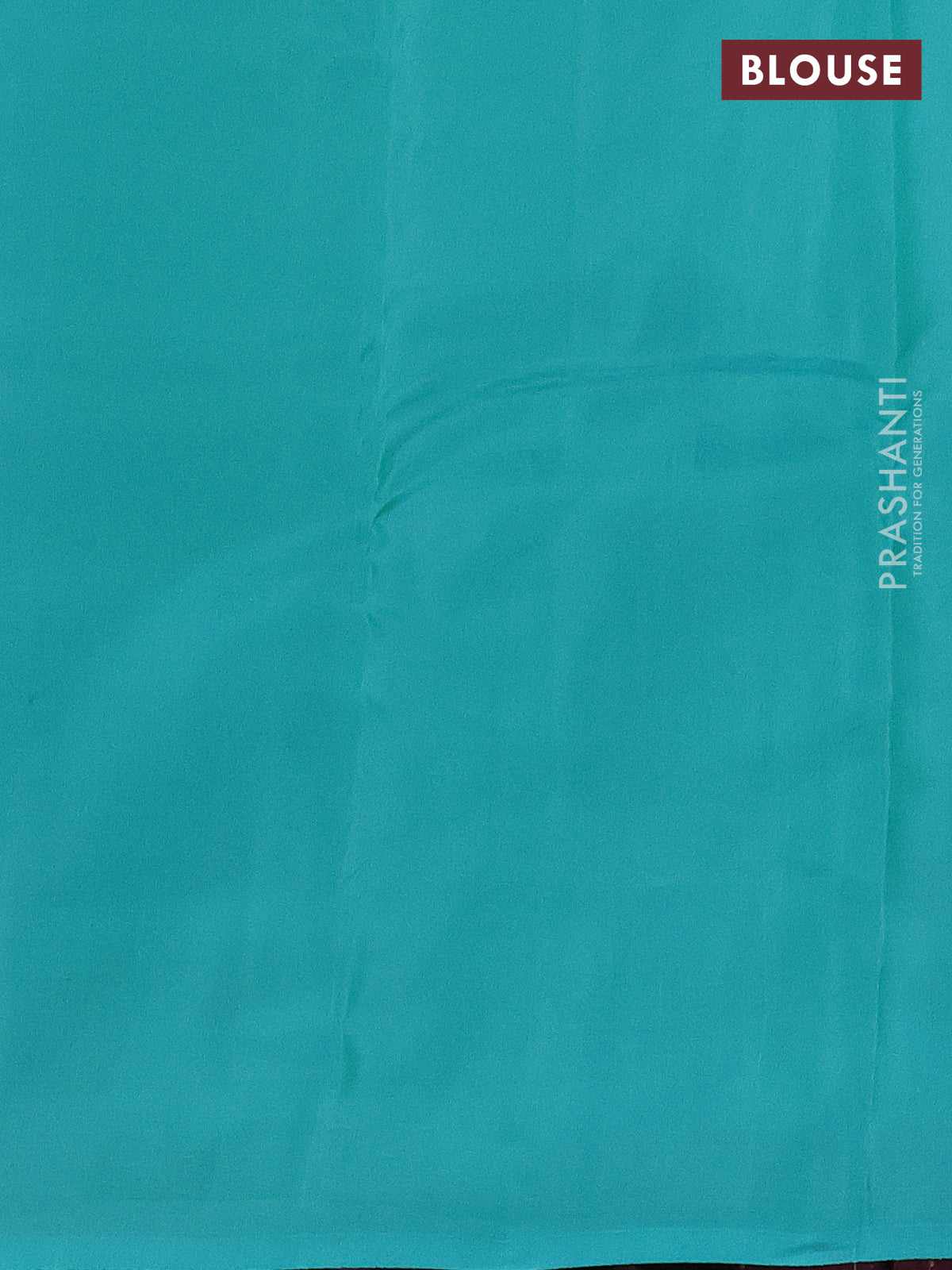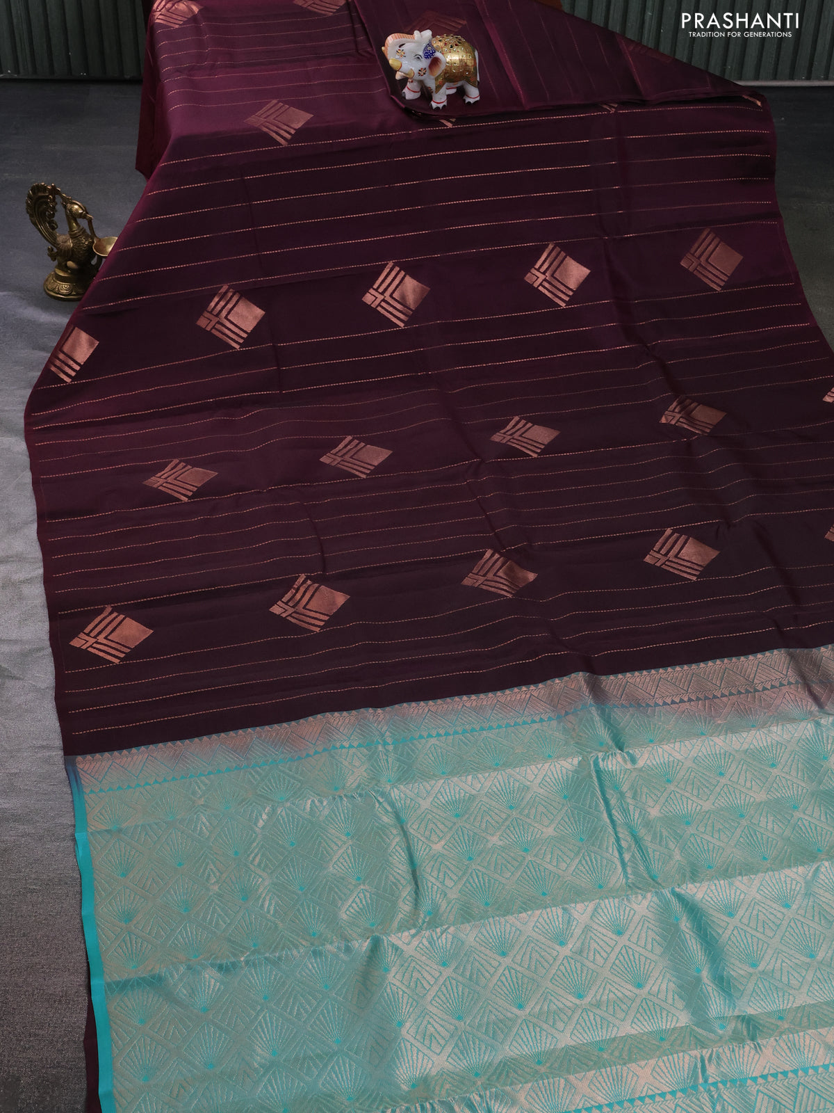 Kanchipuram silk saree wine shade and teal blue with allover copper zari weaves & buttas in borderless style
