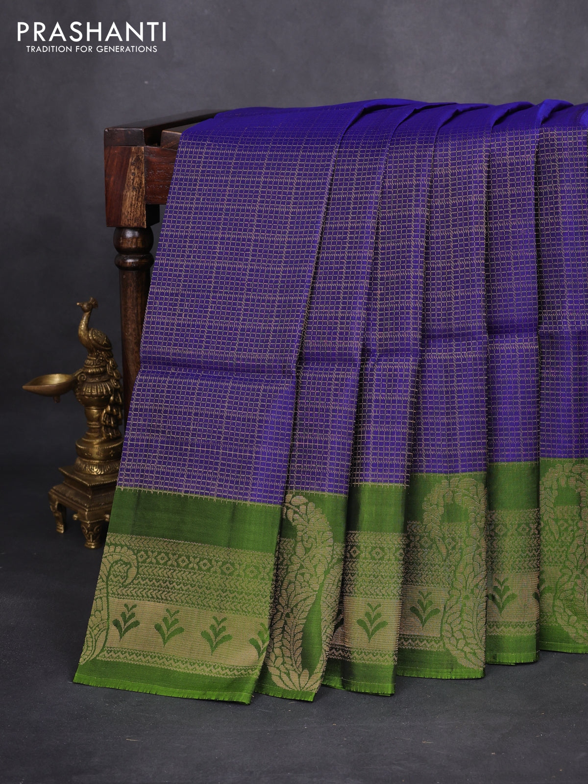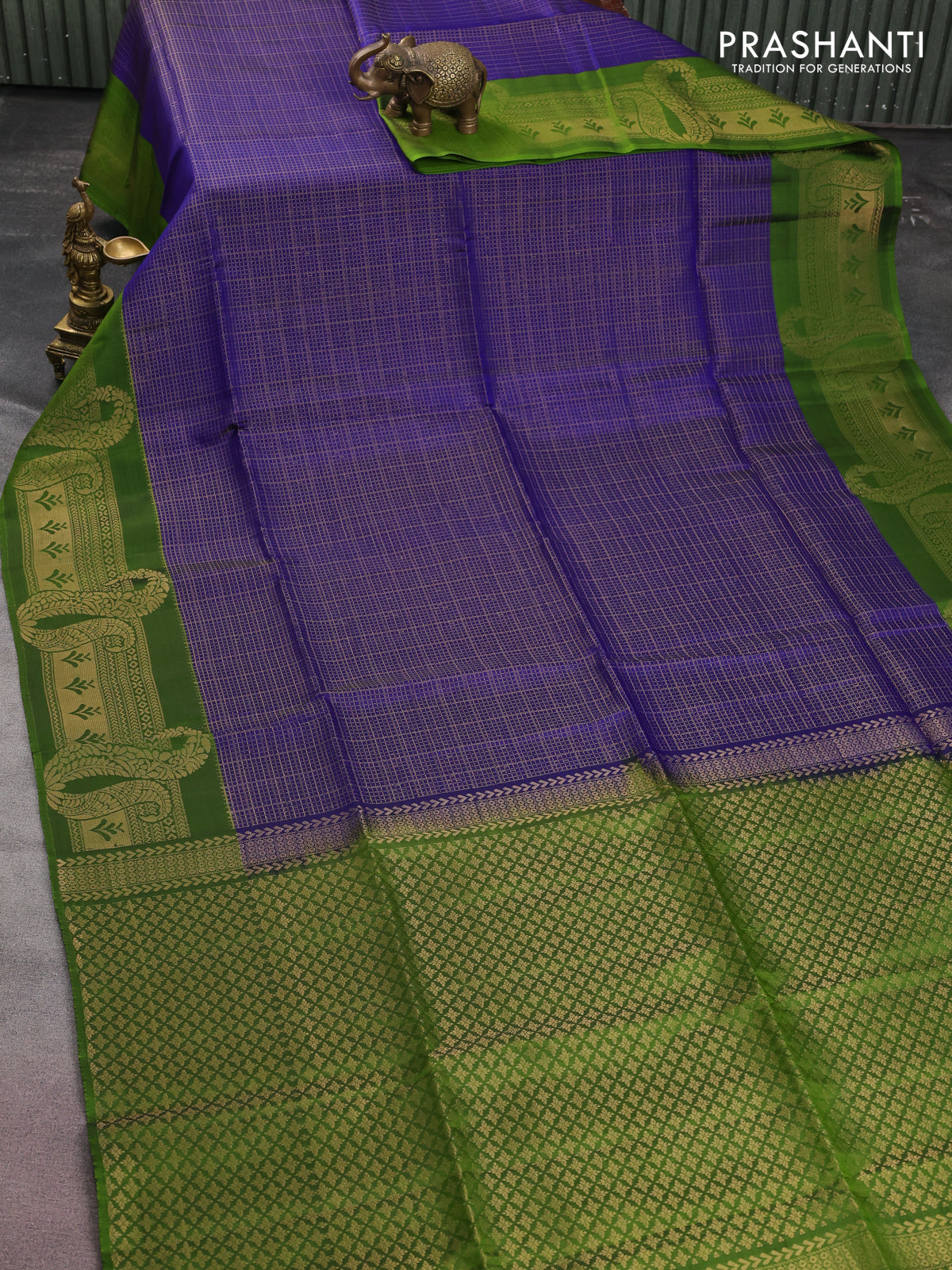 Kanchipuram soft silk saree blue and light green with allover zari woven brocdae weaves and long zari woven border