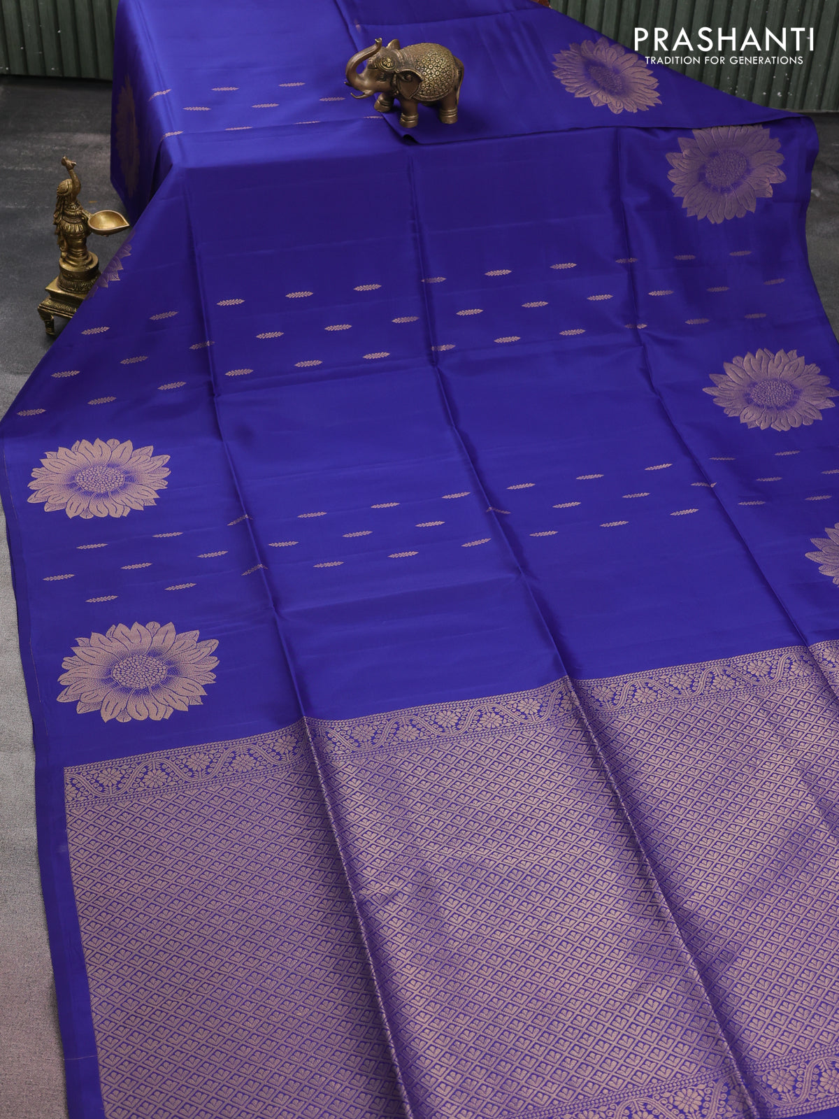Kanchipuram soft silk saree blue with allover zari woven buttas and zari woven floral butta border