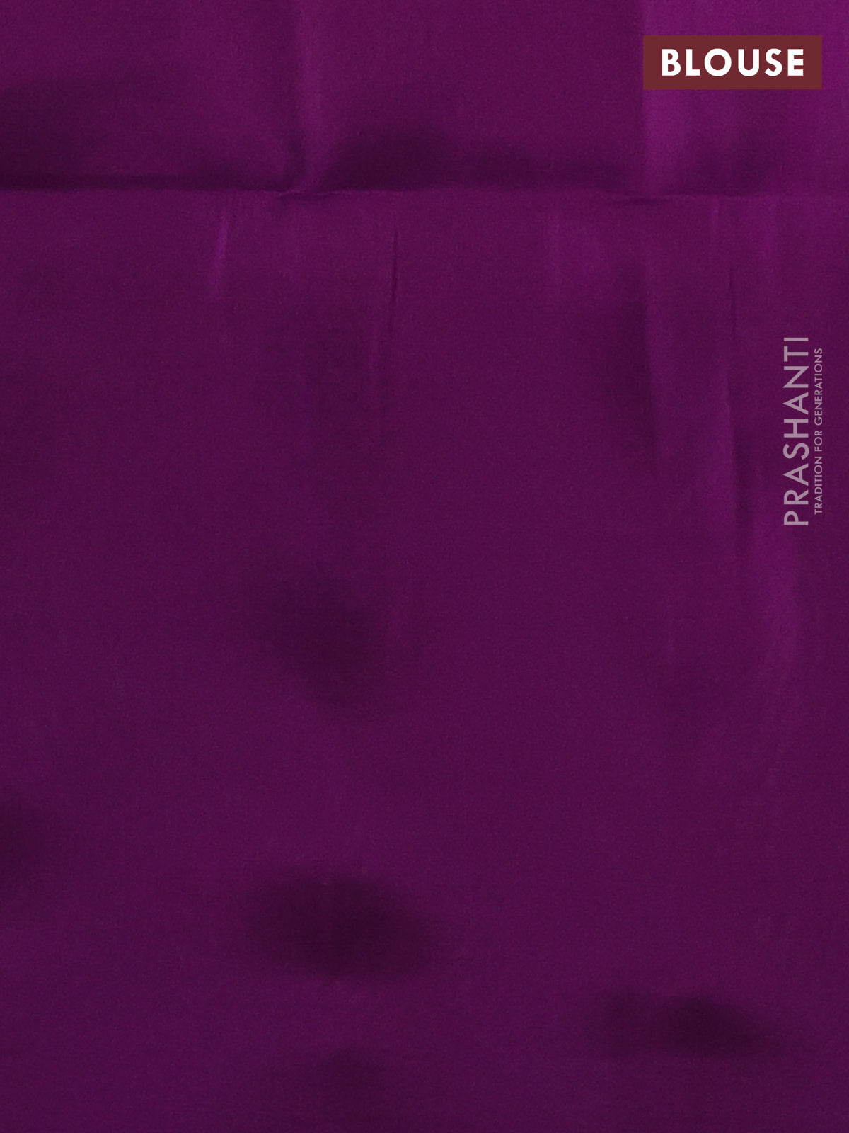 Kanchipuram soft silk saree elaichi green and purple with allover zari weaves & buttas in borderless style