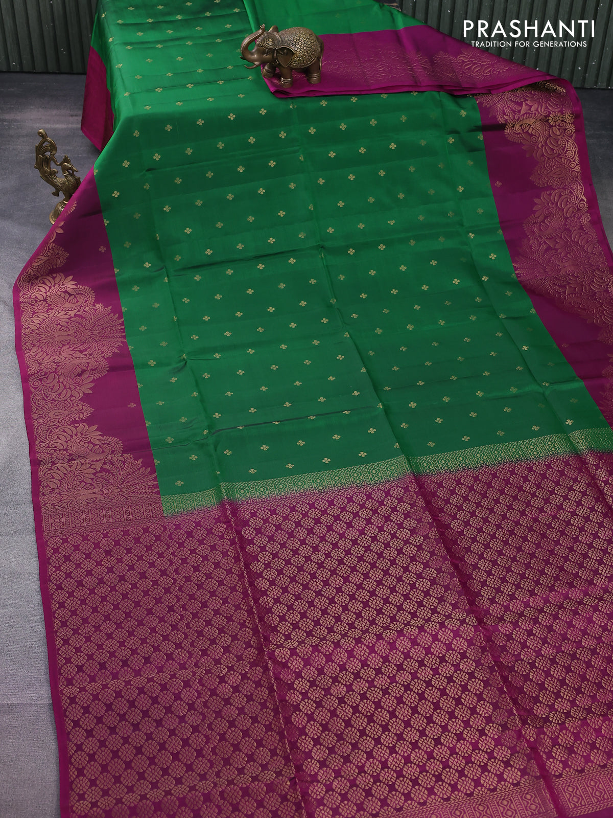 Kanchipuram soft silk saree green and magenta pink with allover zari woven buttas and rich zari woven border