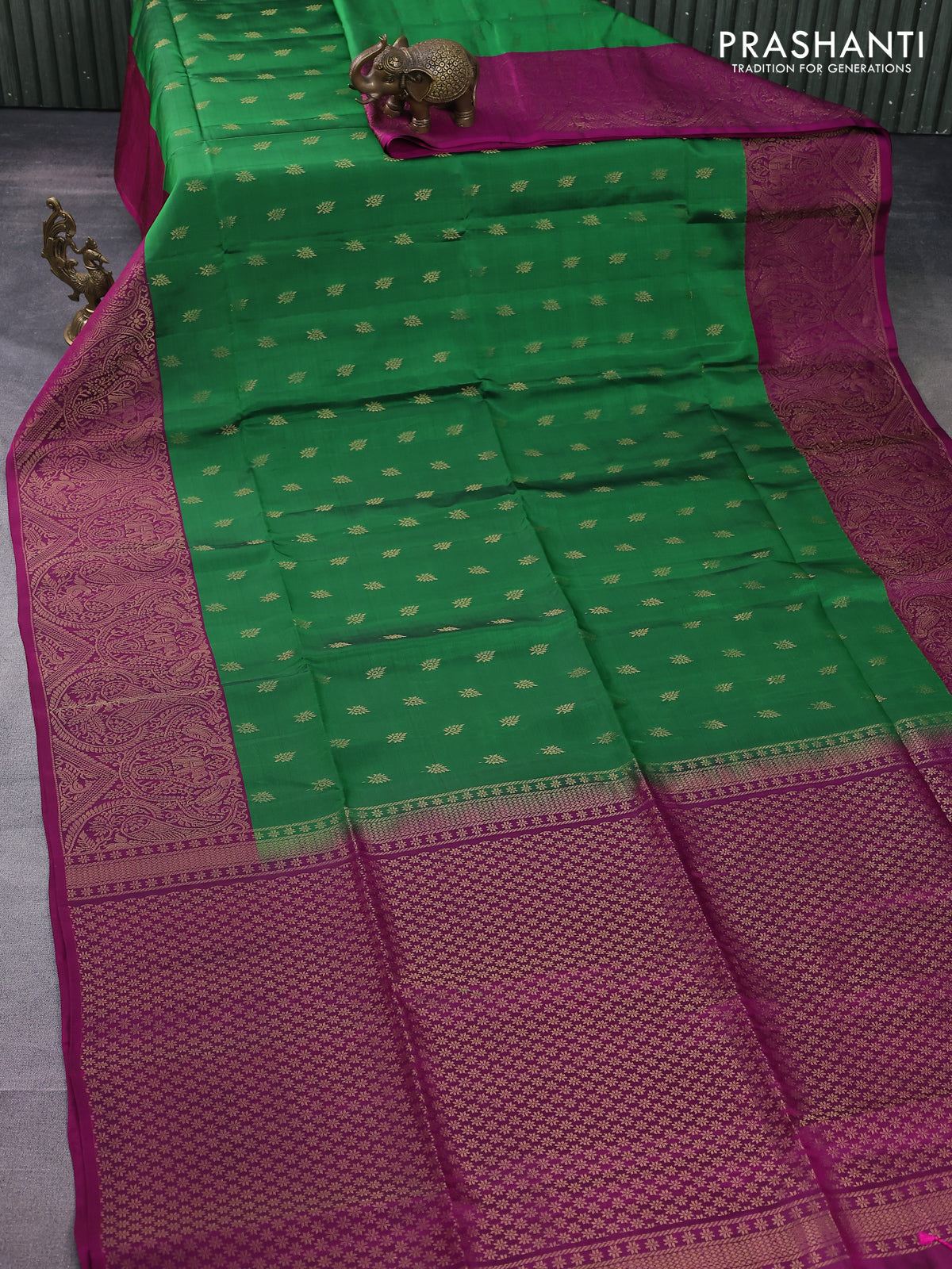 Kanchipuram soft silk saree green and purple with allover zari woven buttas and long zari woven border