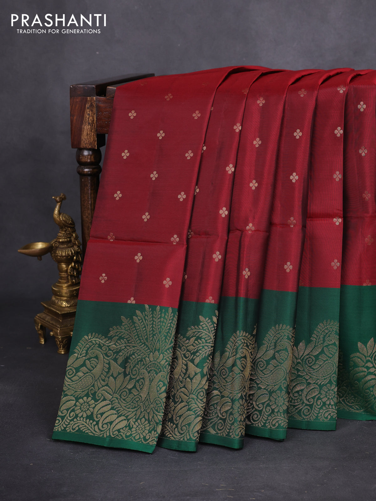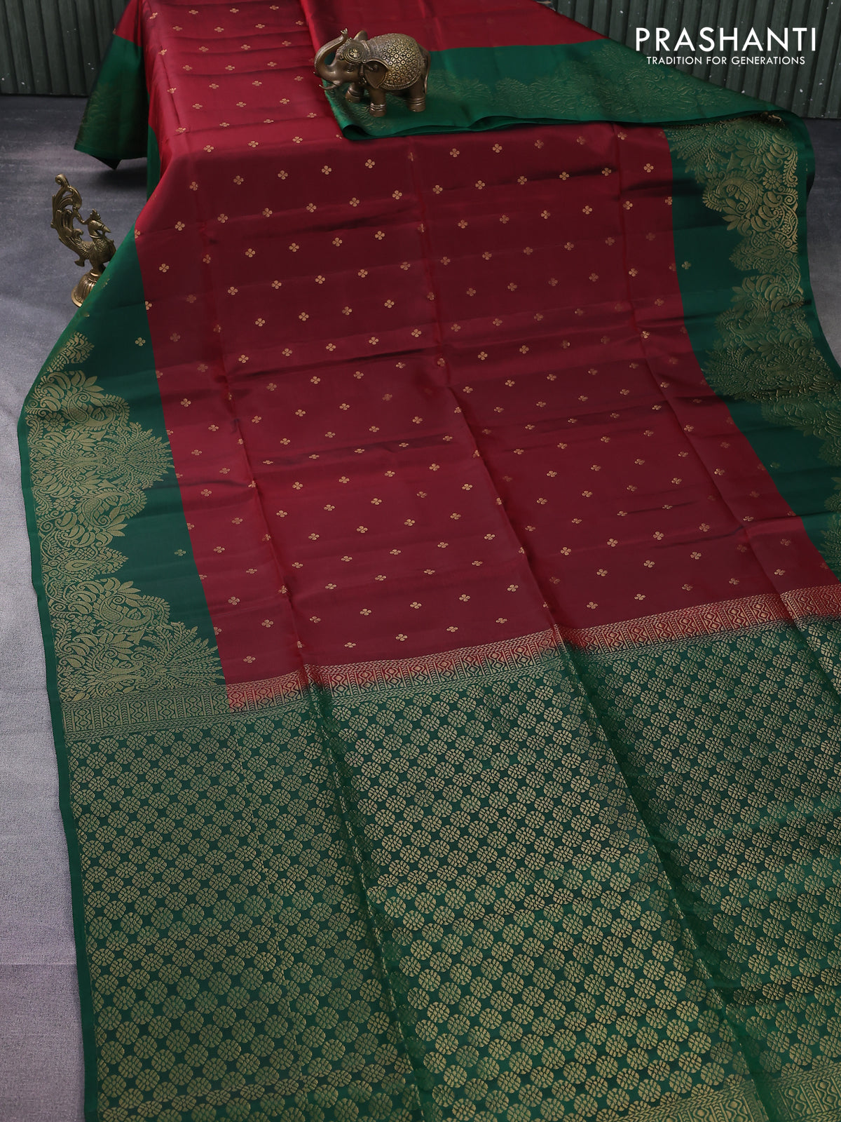 Kanchipuram soft silk saree maroon and green with allover zari woven buttas and rich zari woven border
