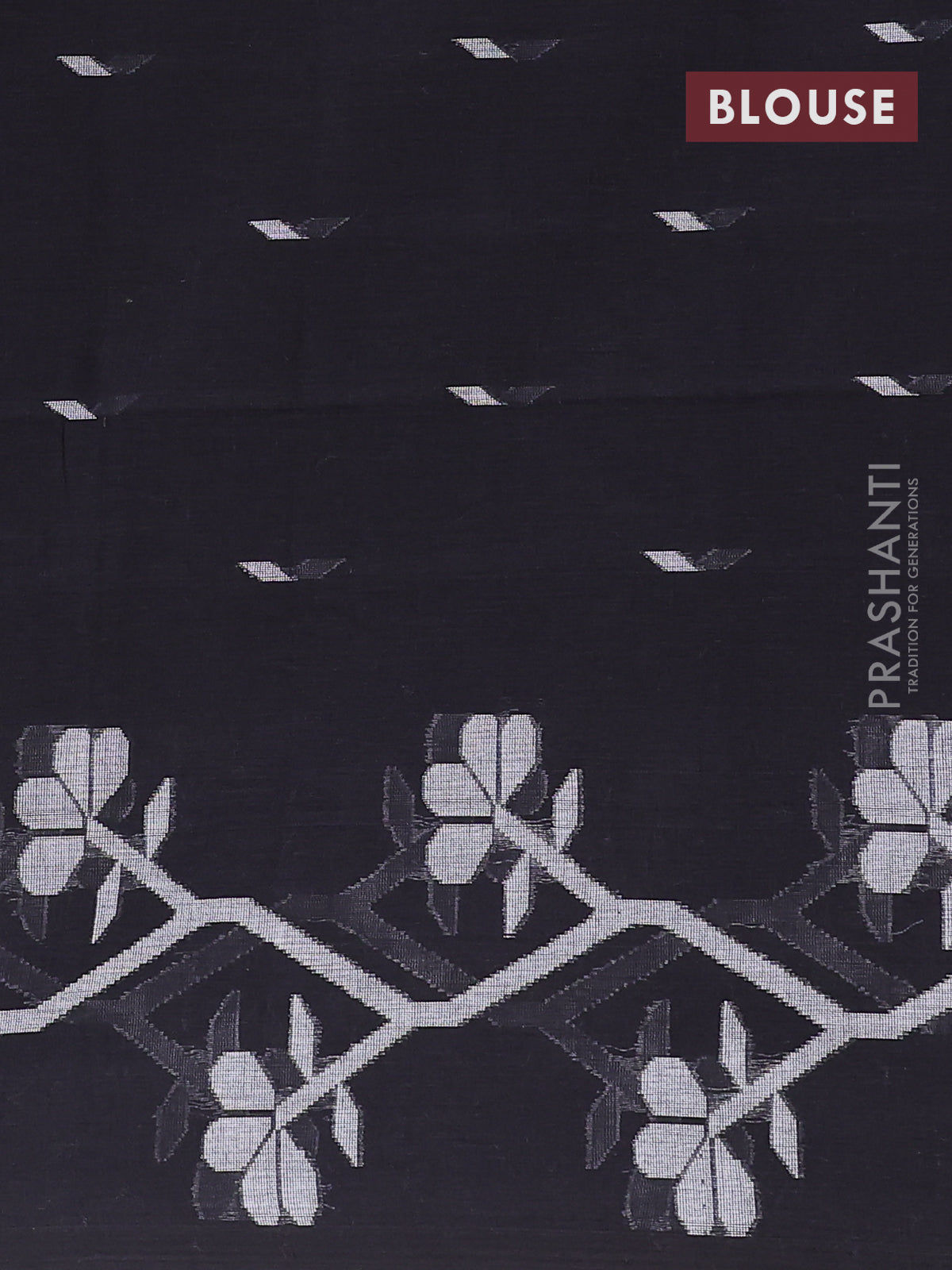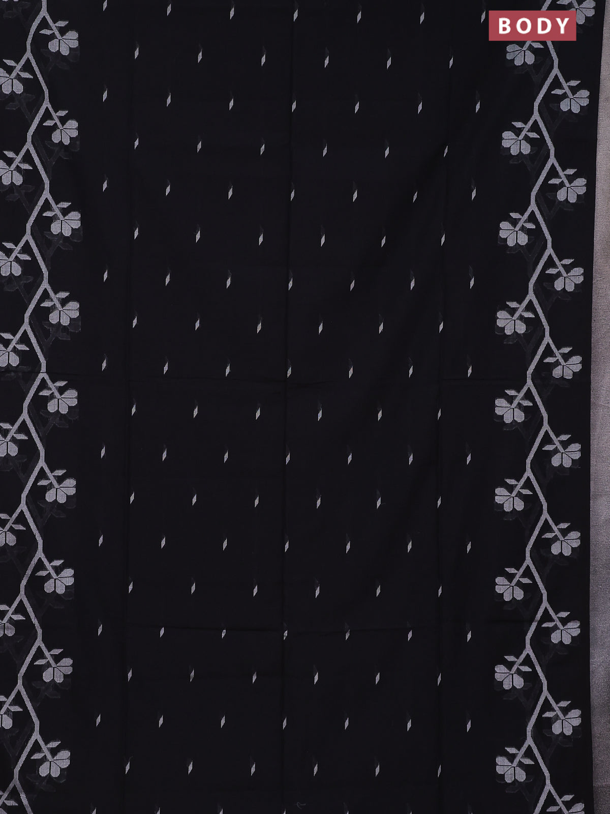 Khadi cotton saree black and grey with allover thread woven buttas and piping border