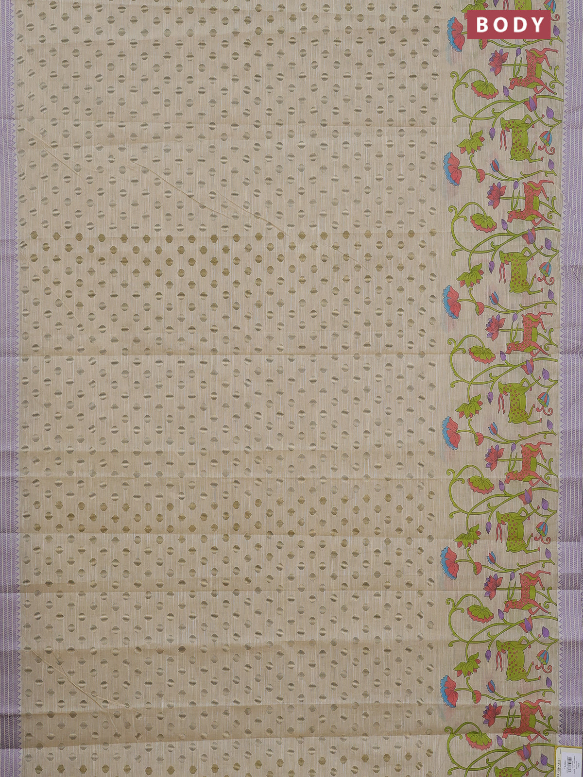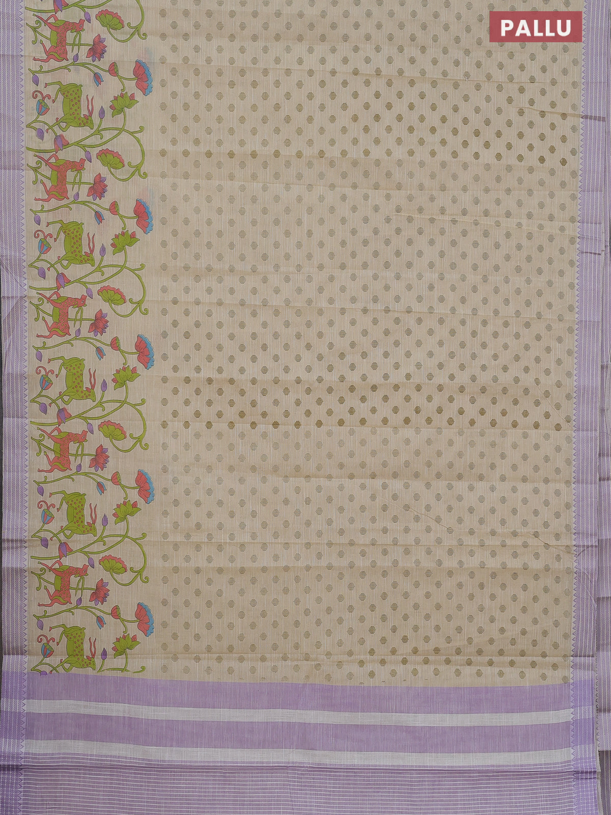 Khadi cotton saree cream and purple shade with allover floral prints and woven border
