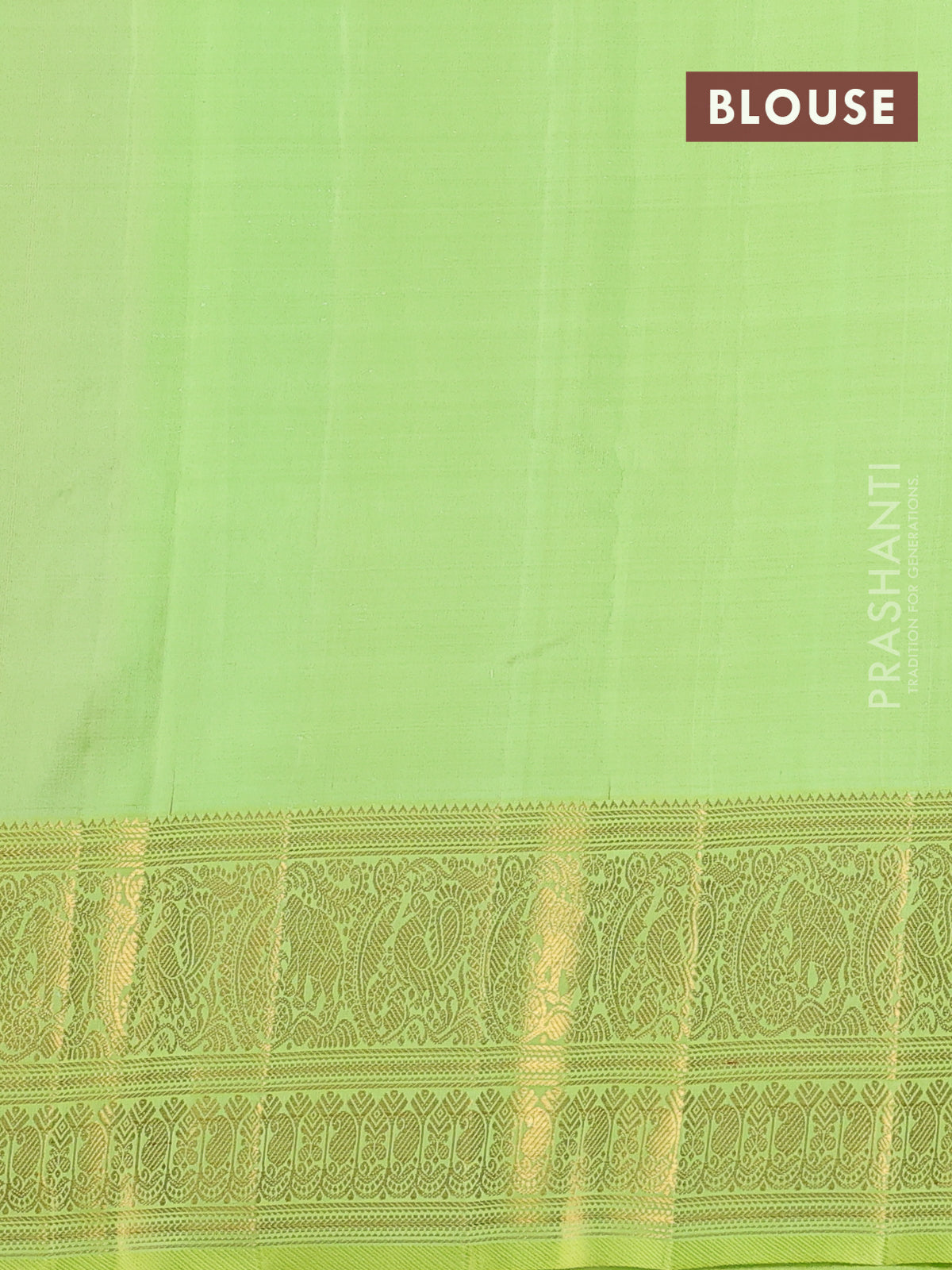 Kora kanchipuram silk saree multi colour and light green with allover silver zari stripes pattern and zari woven border