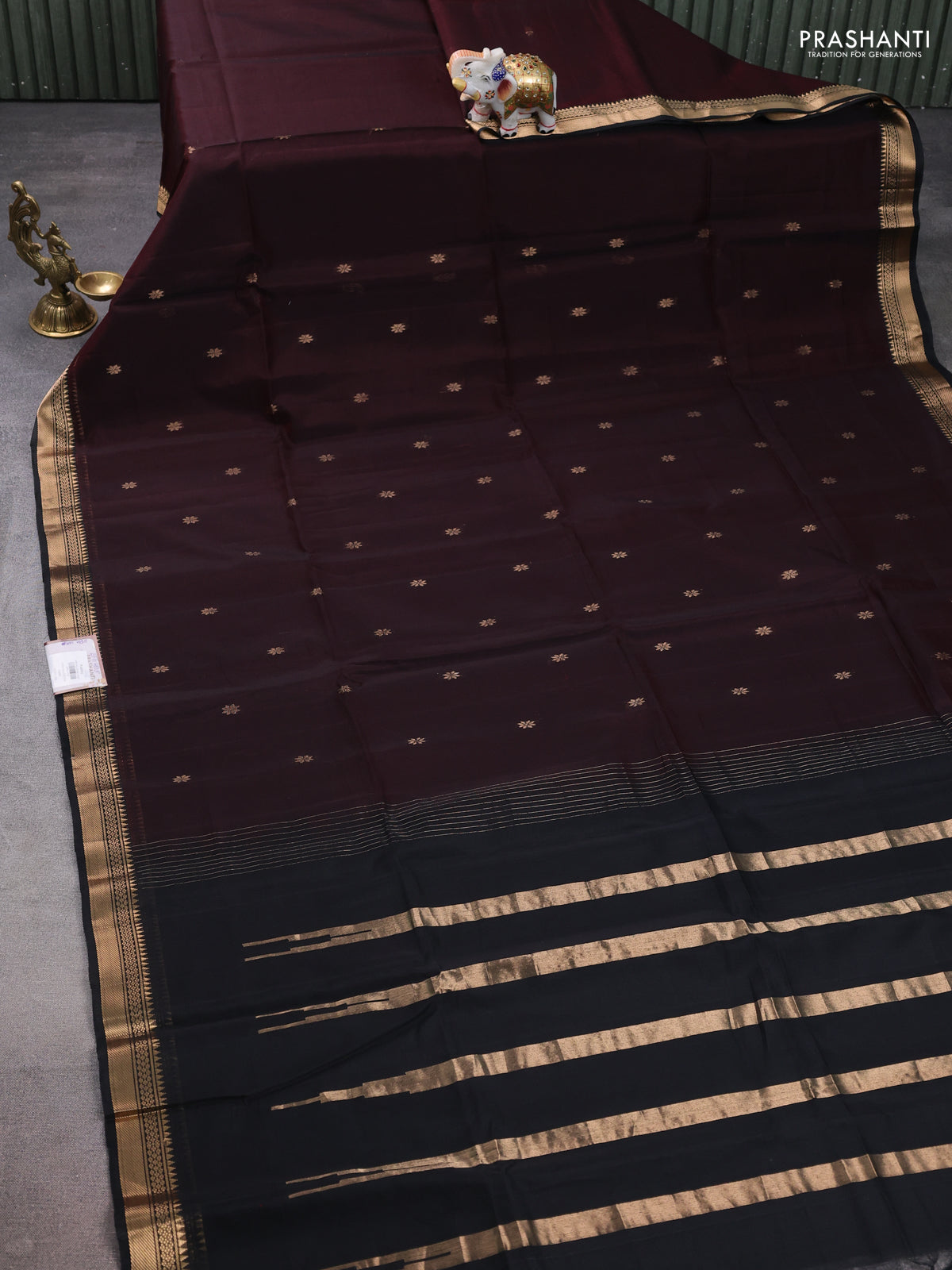 Kora silk cotton saree deep maroon and black with zari woven buttas and zari woven border