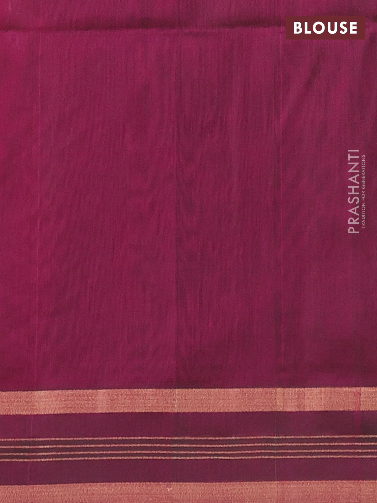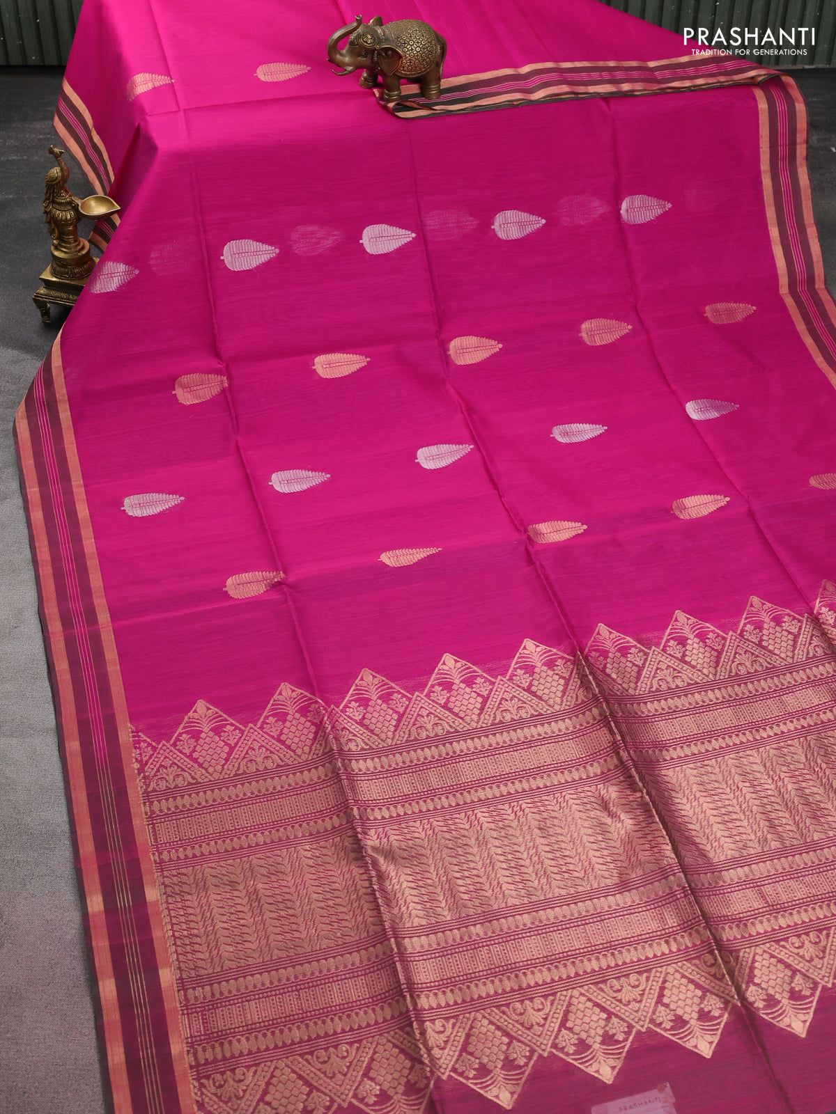 Kora silk cotton saree magenta pink with silver & gold zari woven buttas and zari woven border