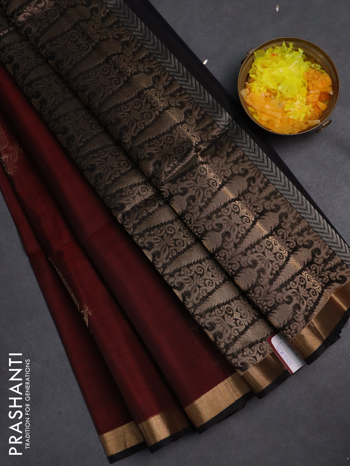Kora silk cotton saree maroon and black with zari woven buttas and zari woven buttas border