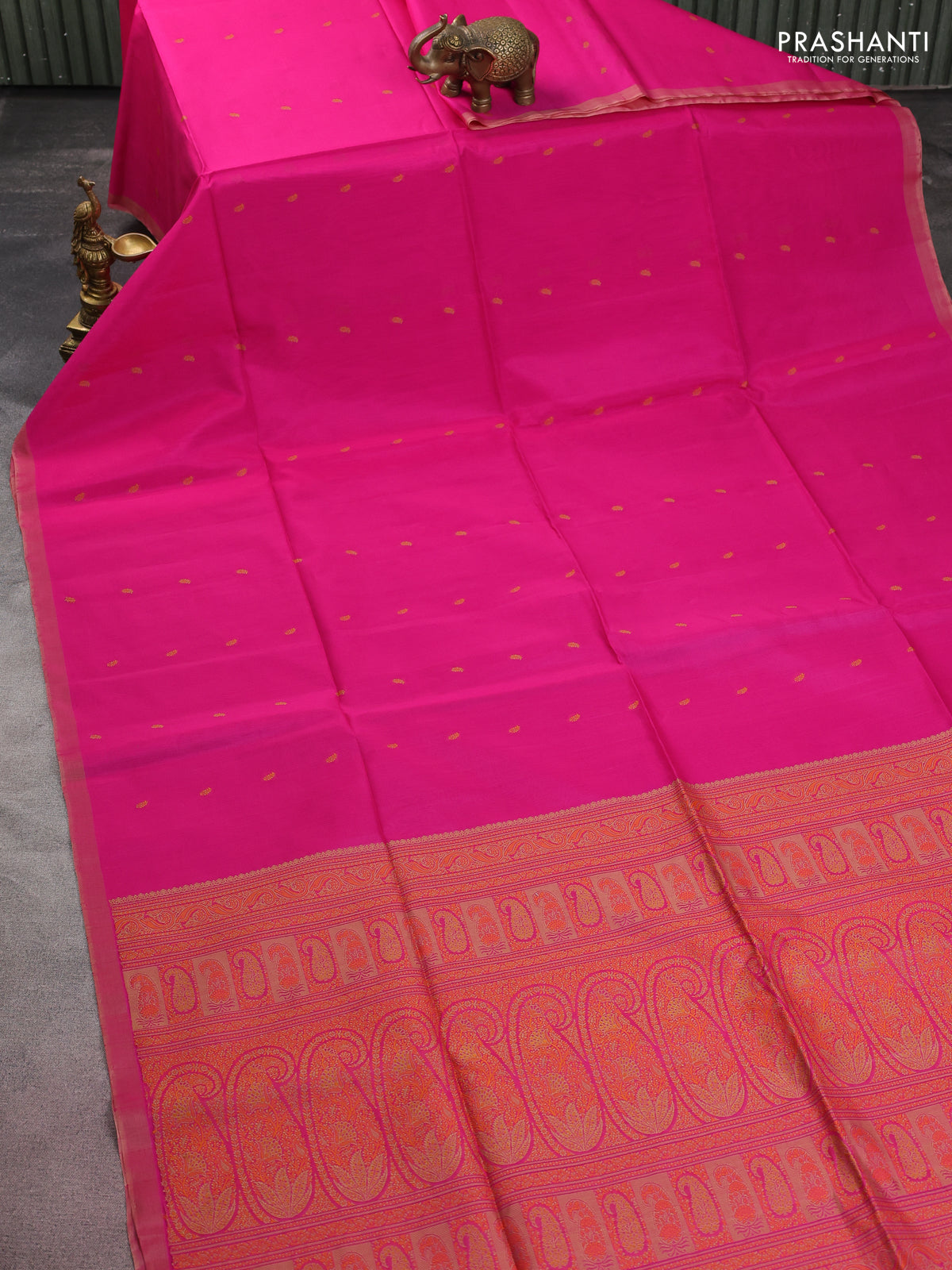Kora silk cotton saree pink with thread woven buttas and simple border