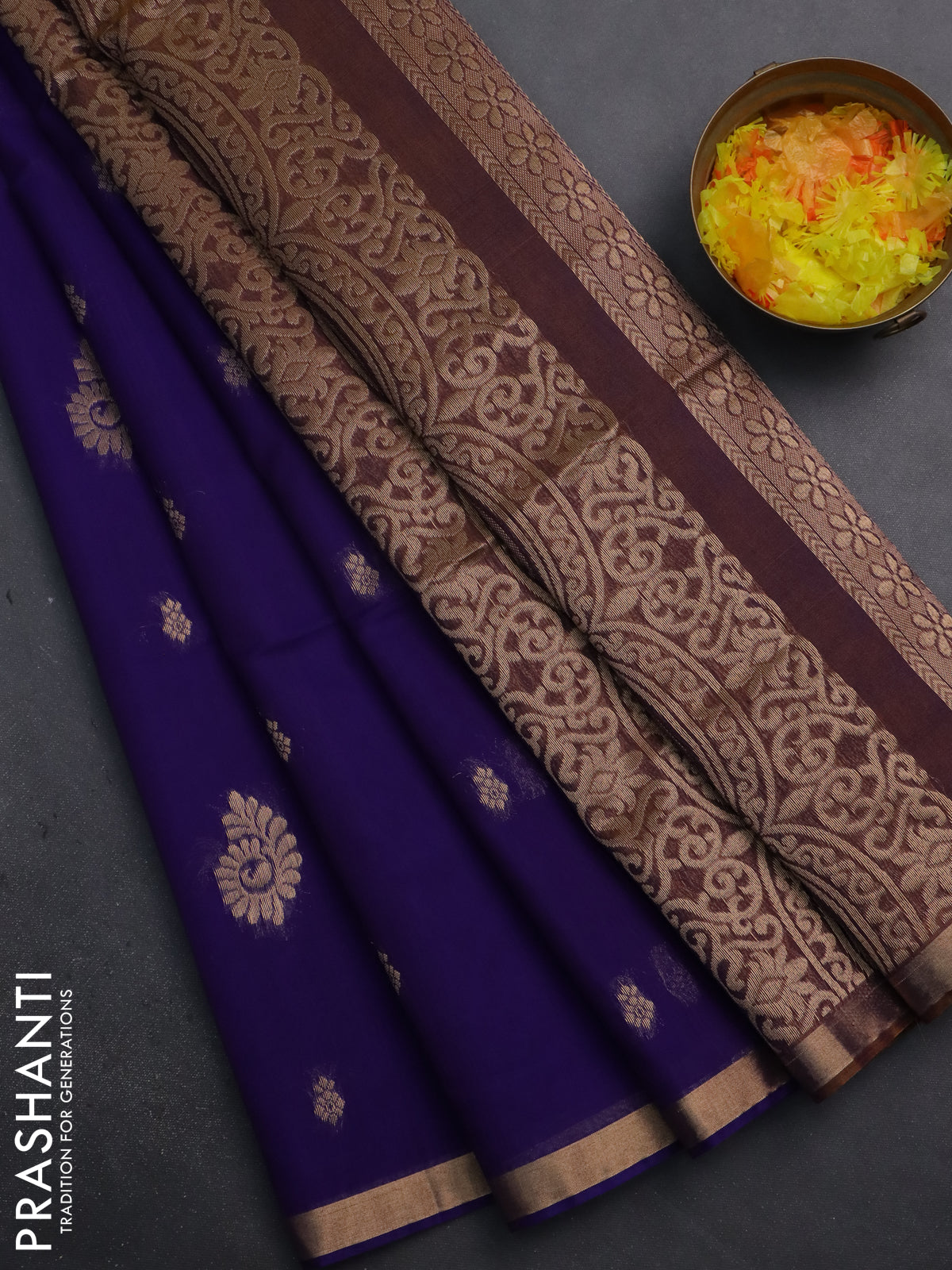 Kora silk cotton saree violet and dual shade of mustard with silver & gold zari woven buttas and zari woven border