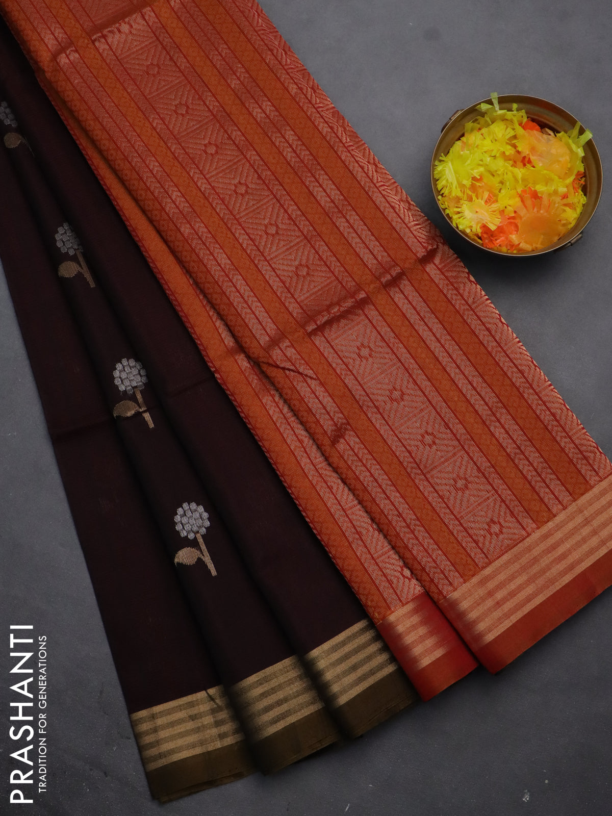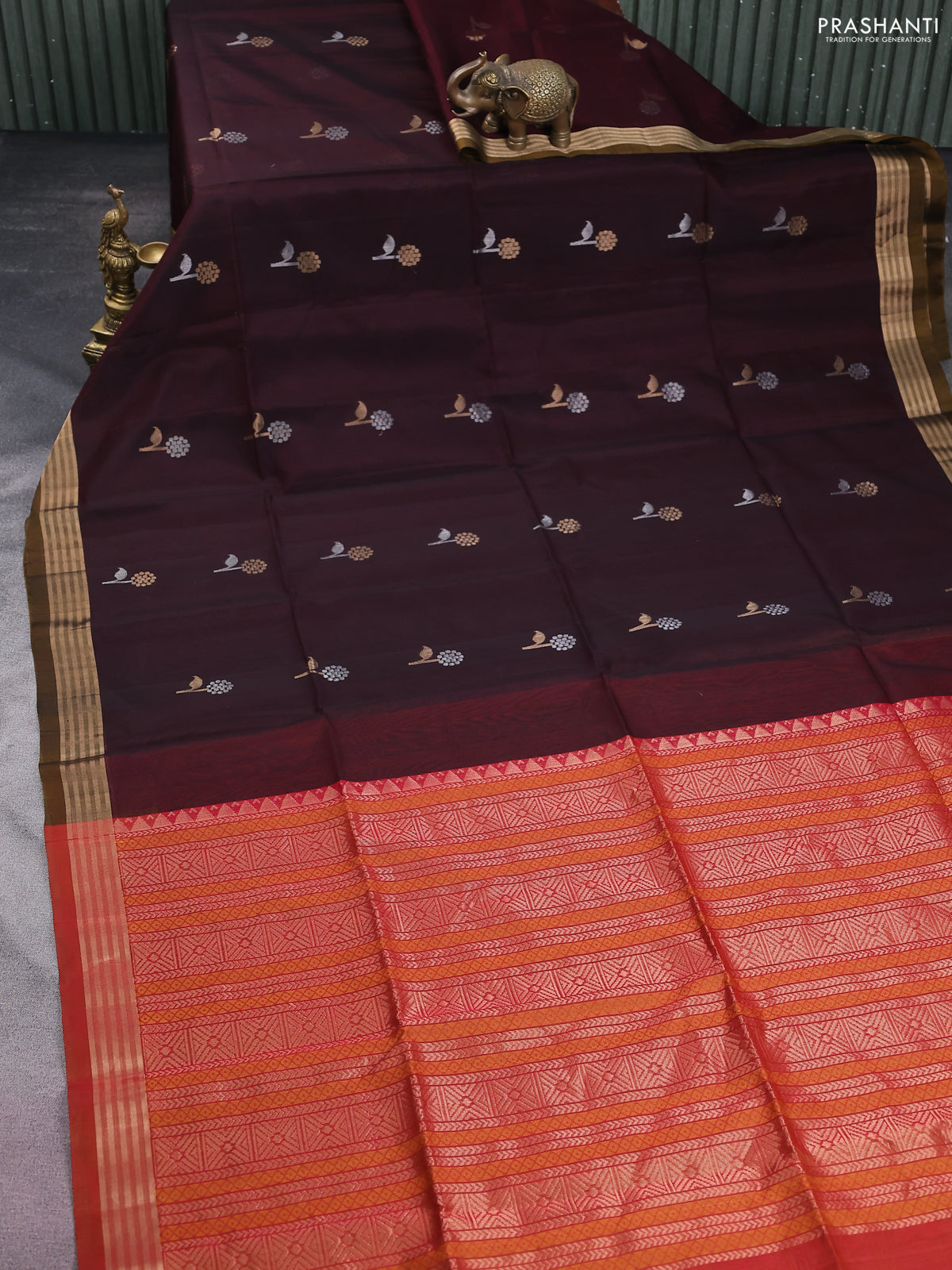 Kora silk cotton saree wine shade and dual shade of pink with silver & gold zari woven buttas and zari woven border