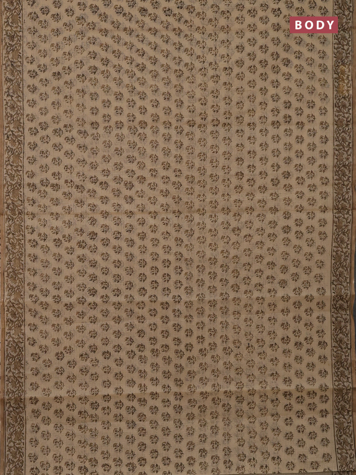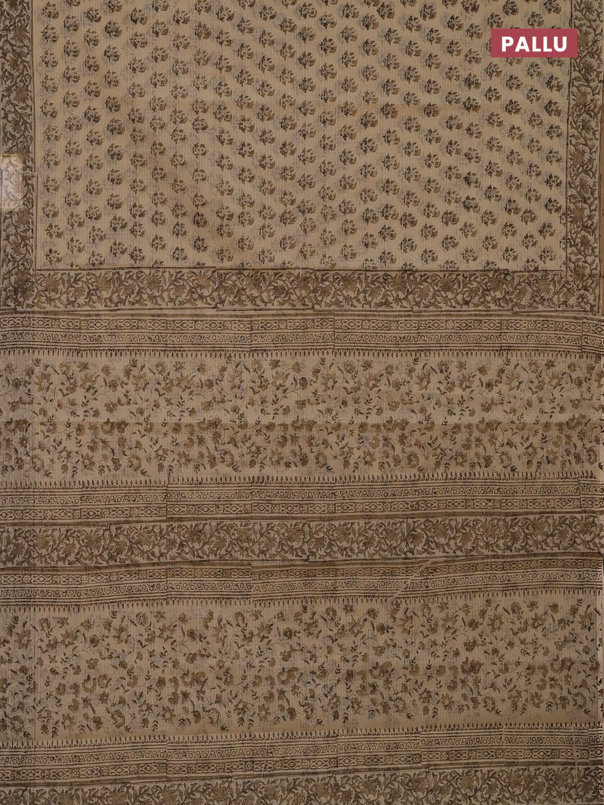 Kota doria saree beige and dark sandal with allover block prints and printed border