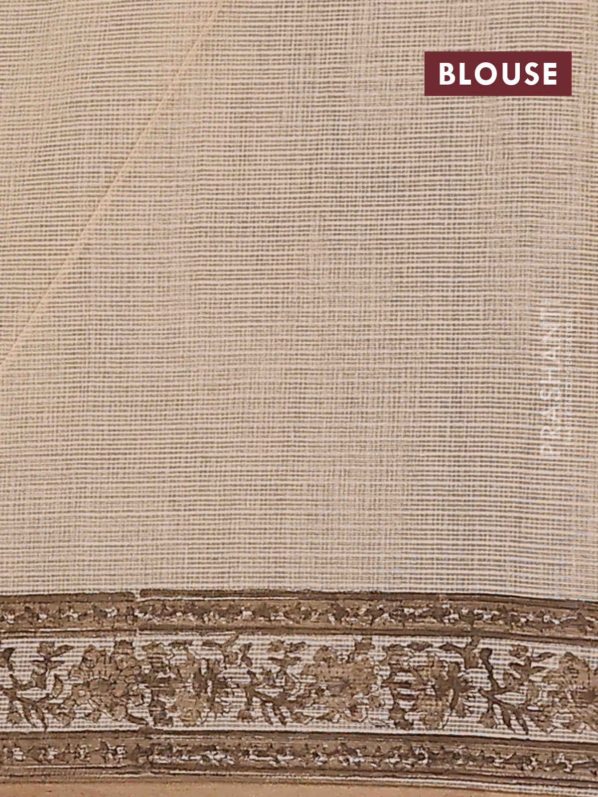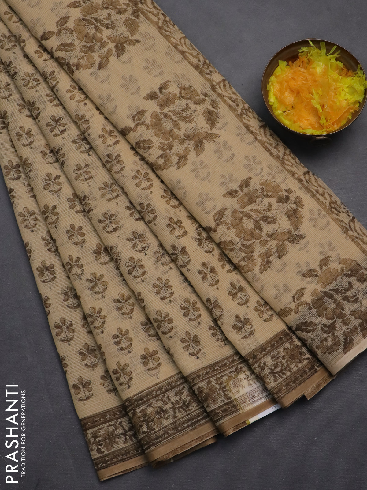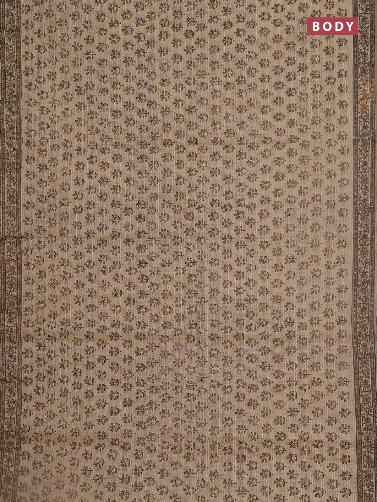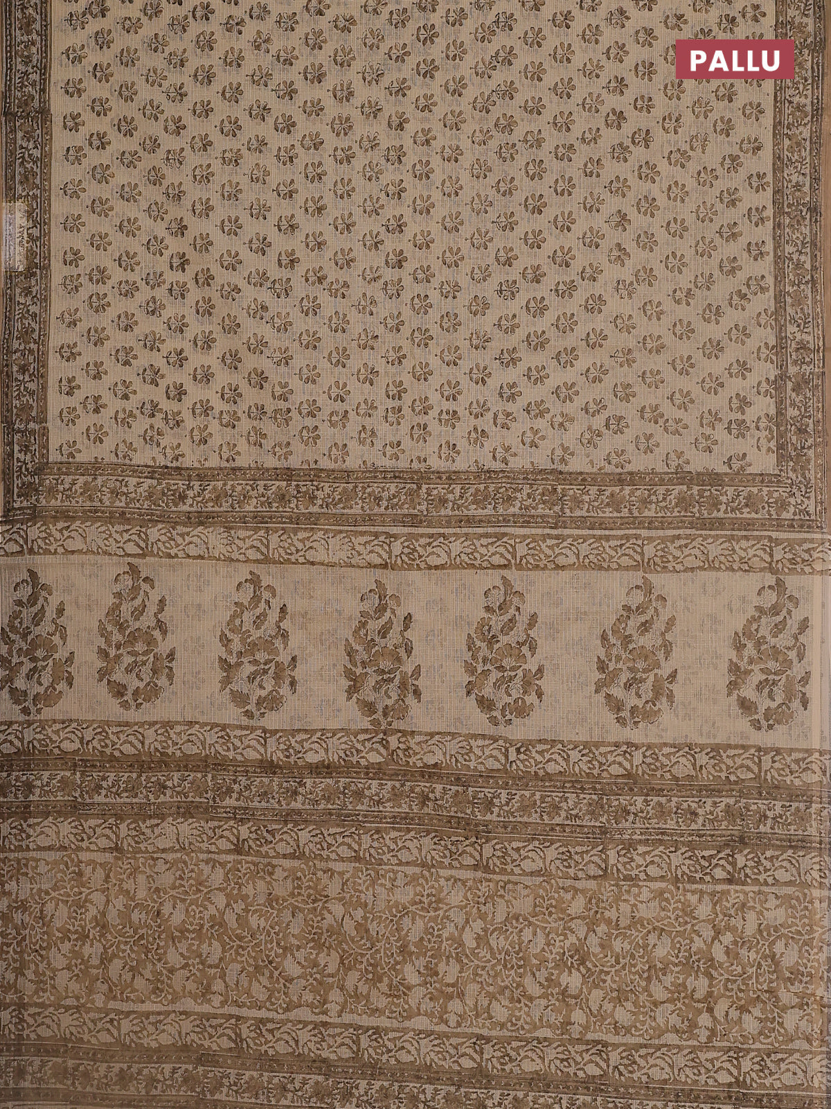 Kota doria saree beige and dark sandal with allover block prints and printed border