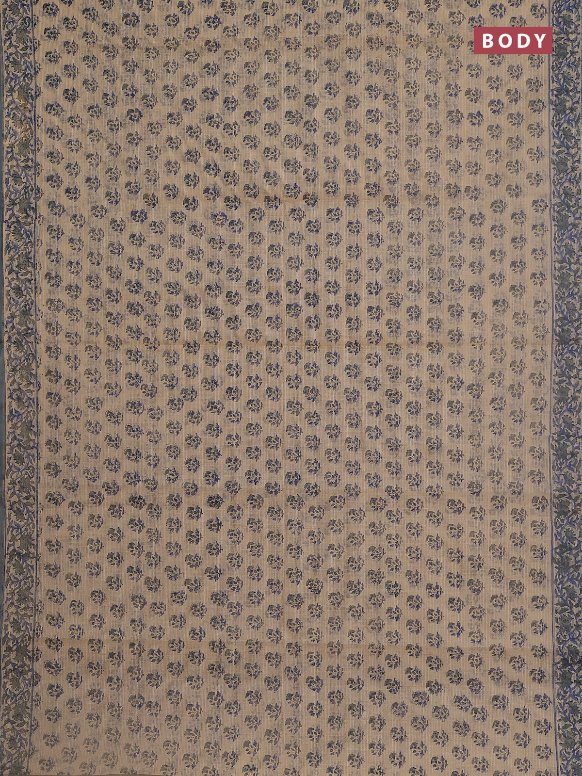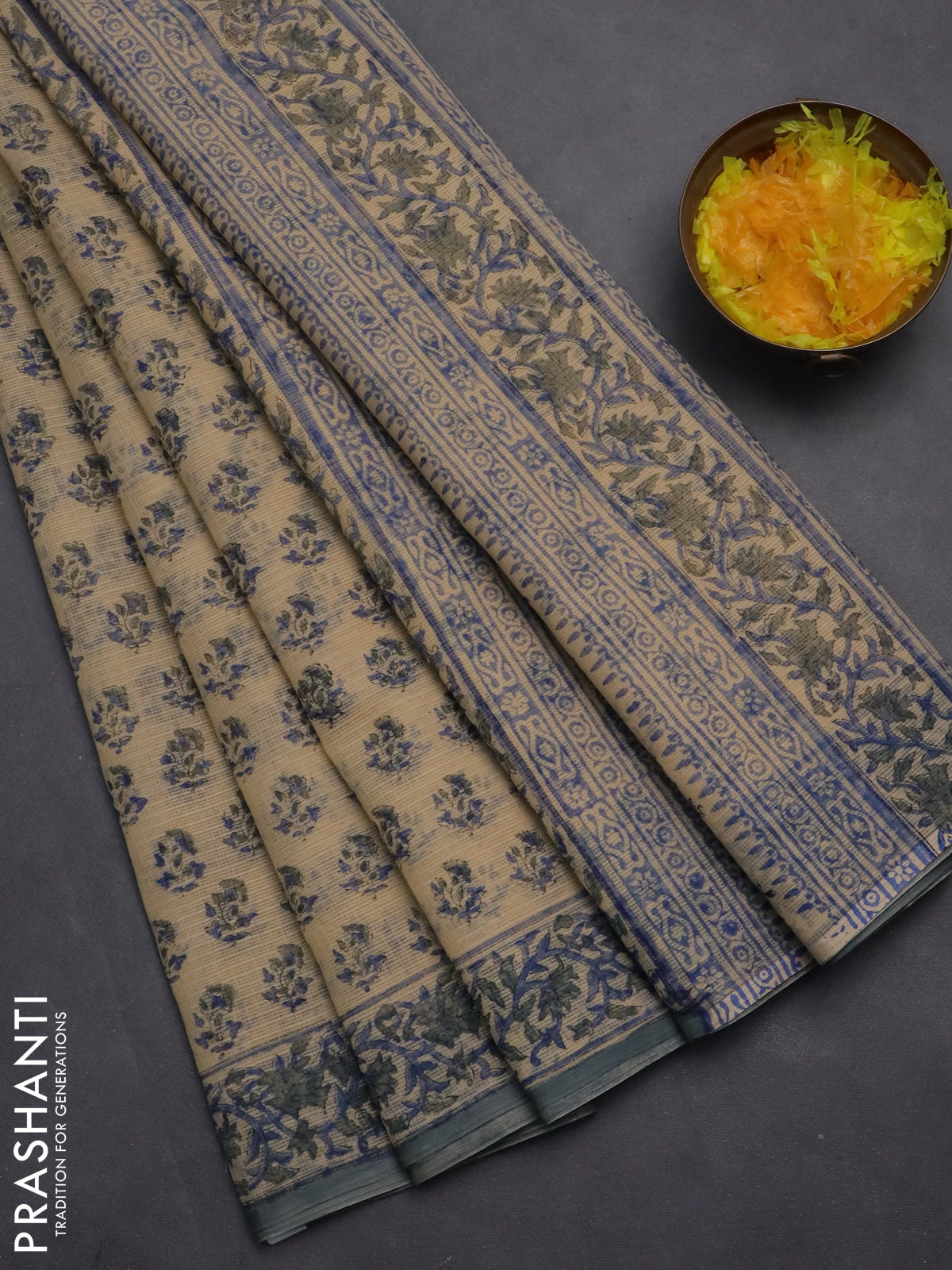Kota doria saree beige and grey with allover block prints and printed border