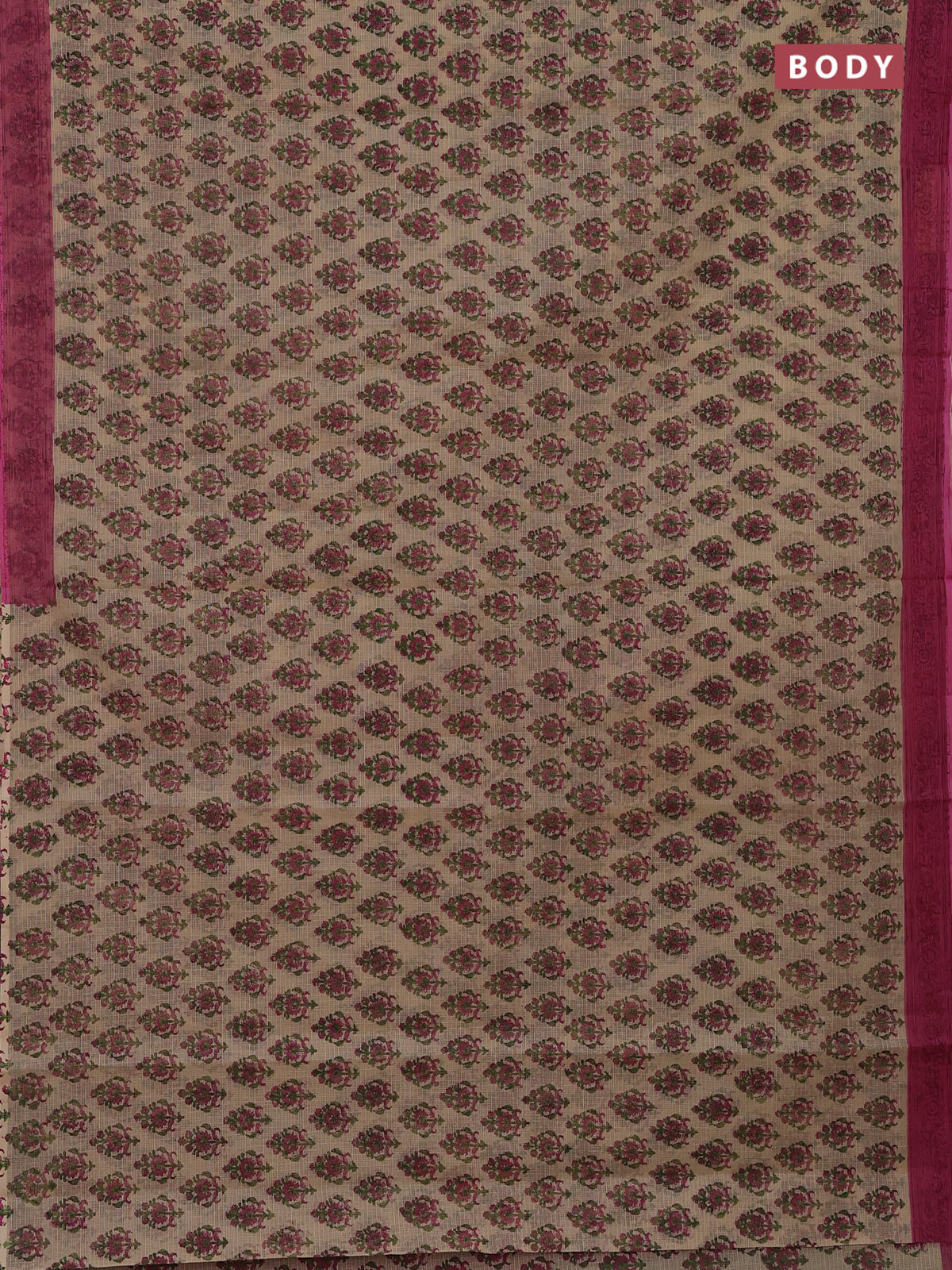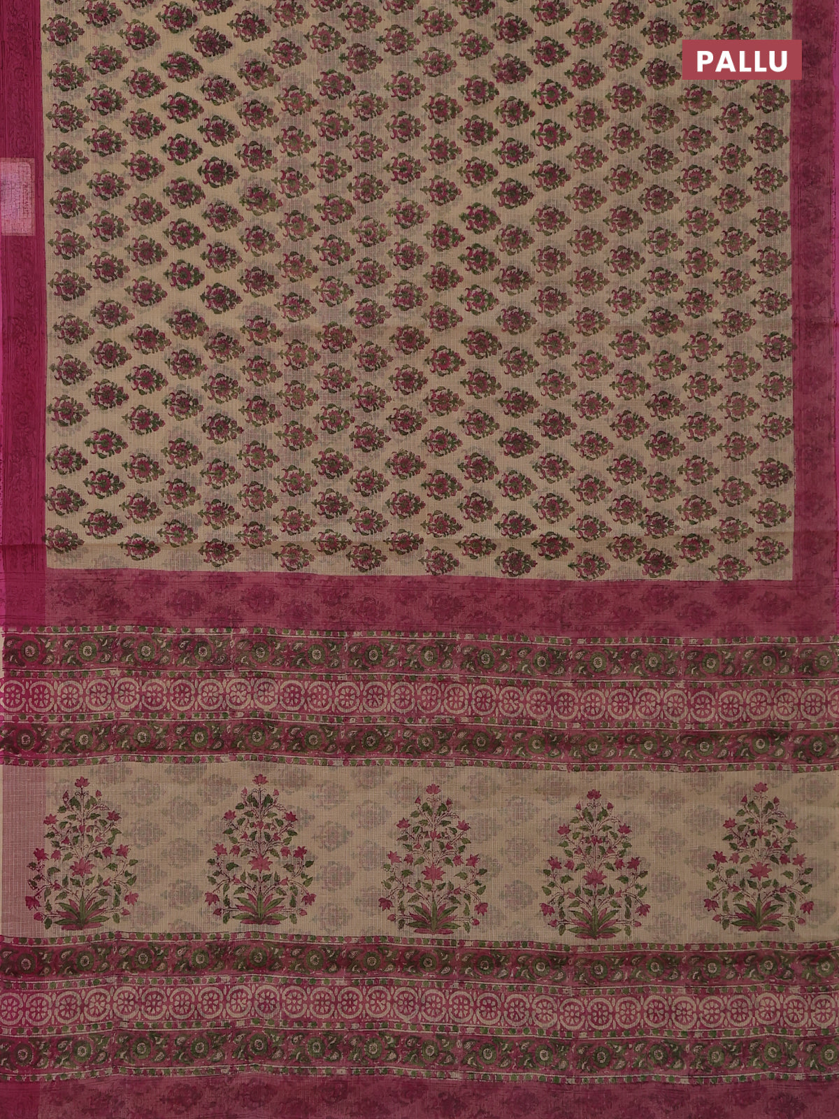 Kota doria saree beige and pink with allover block prints and printed border