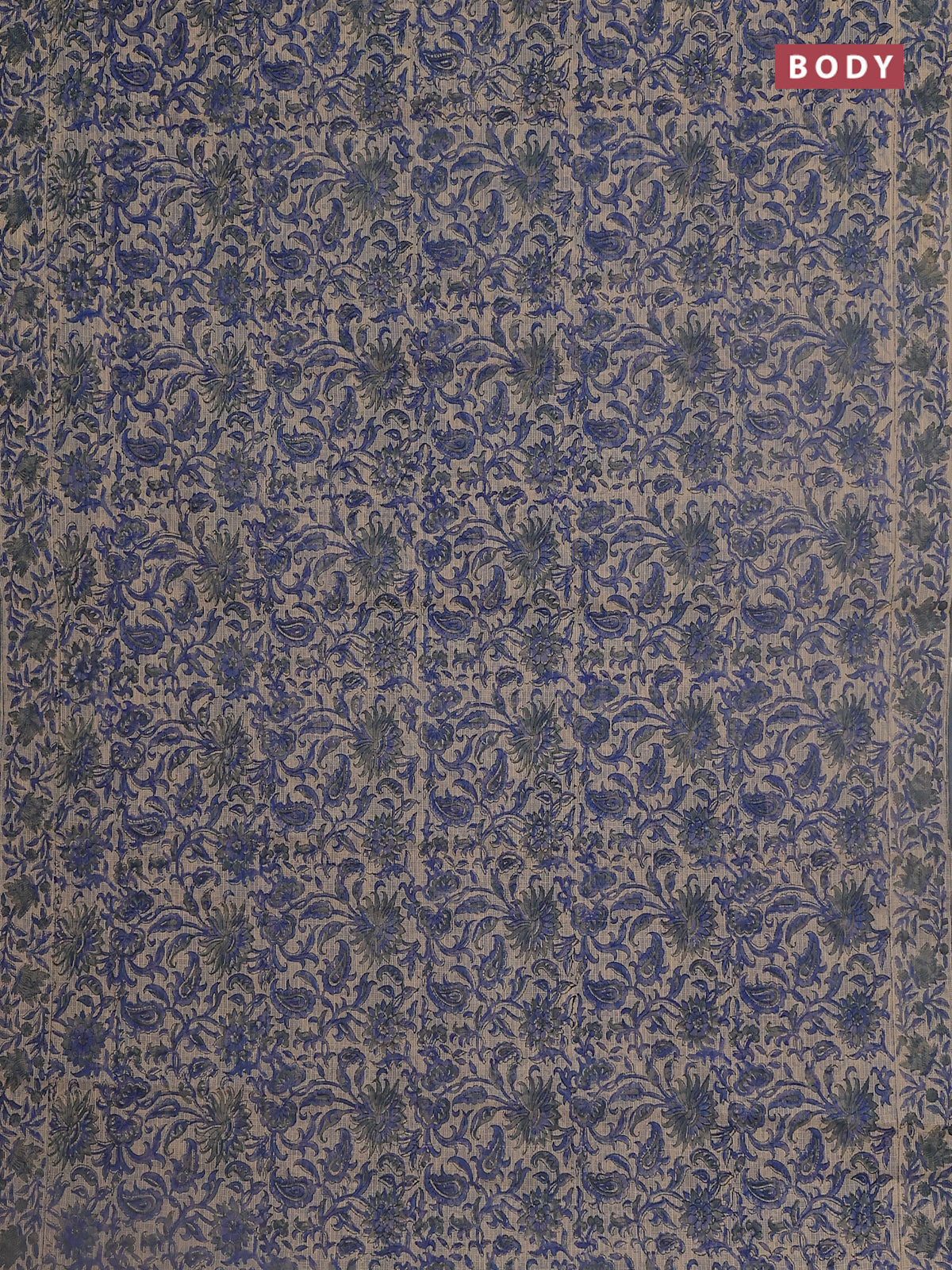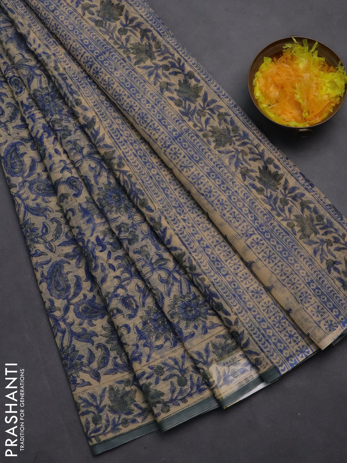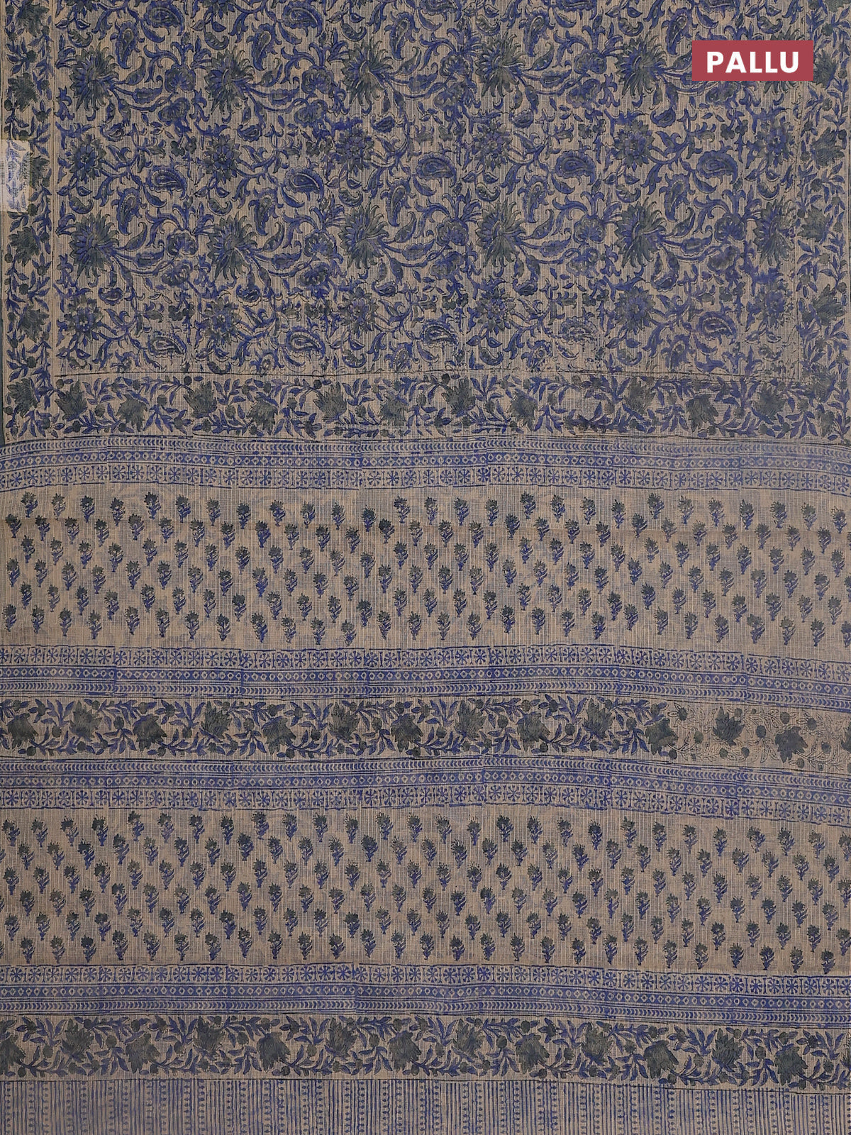Kota doria saree beige blue and grey with allover block prints and printed border
