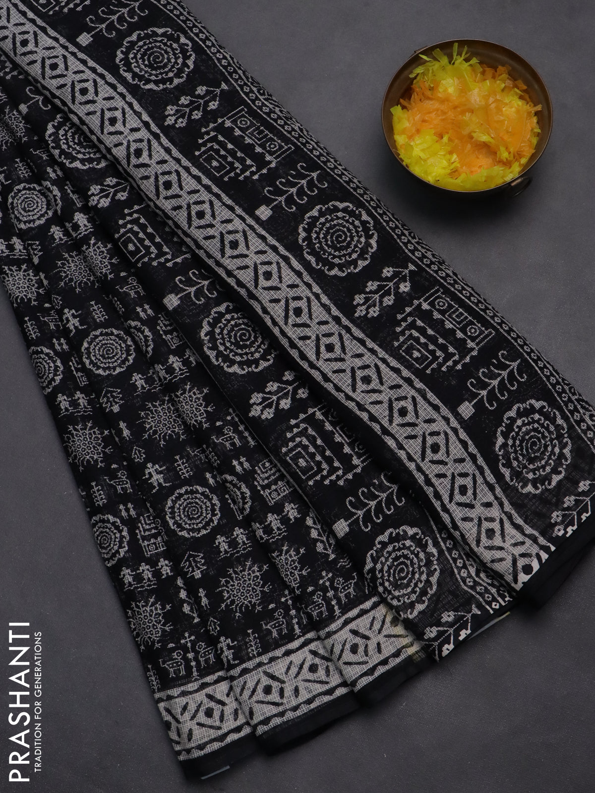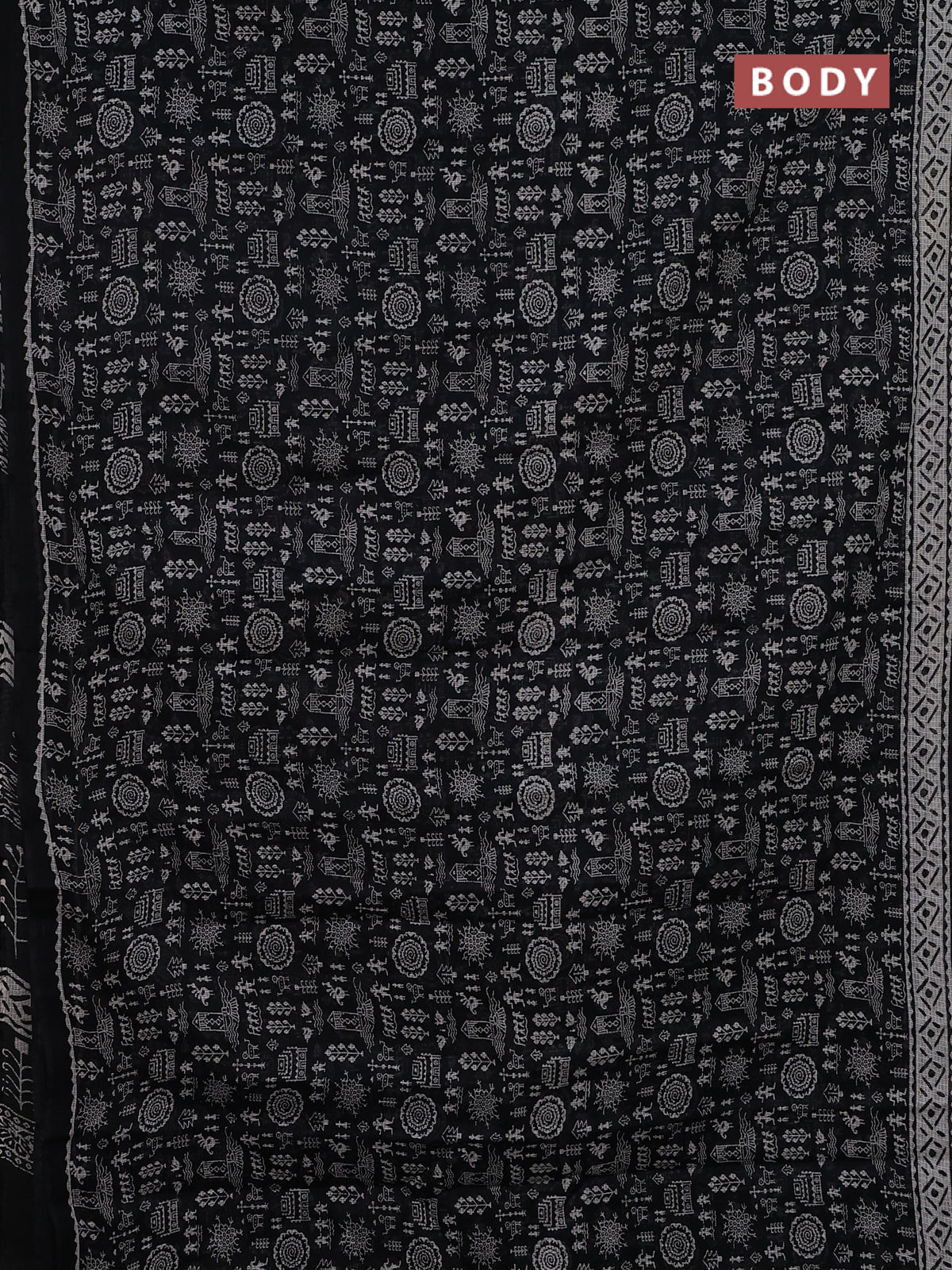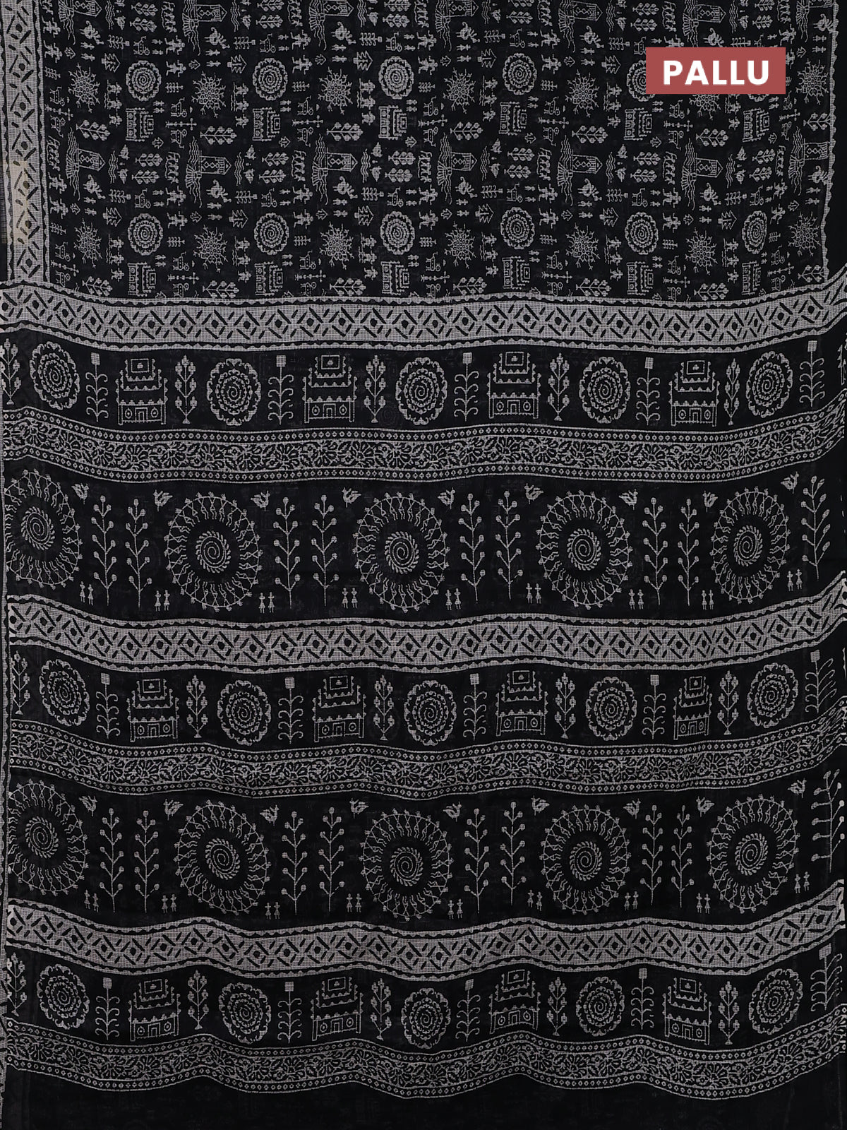 Kota doria saree black and off white with allover warli prints and printed border