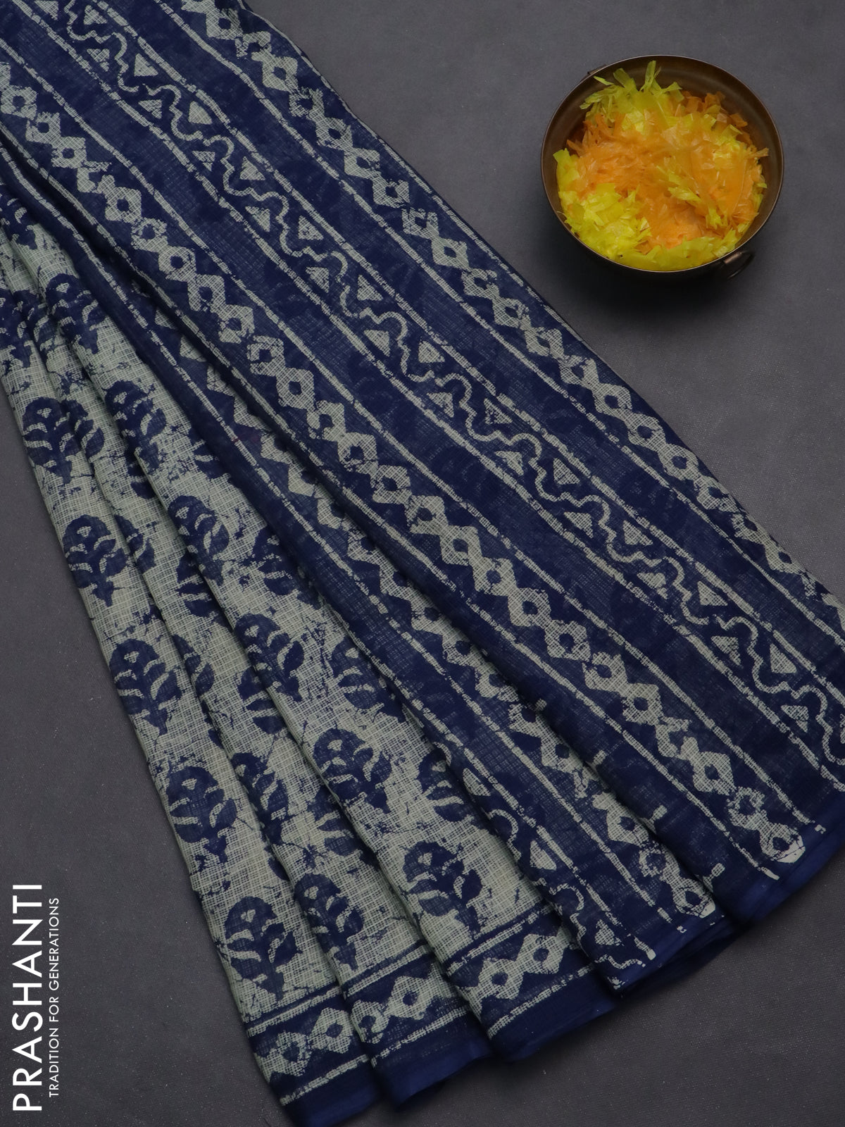 Kota doria saree off white and blue with allover butta prints and printed border