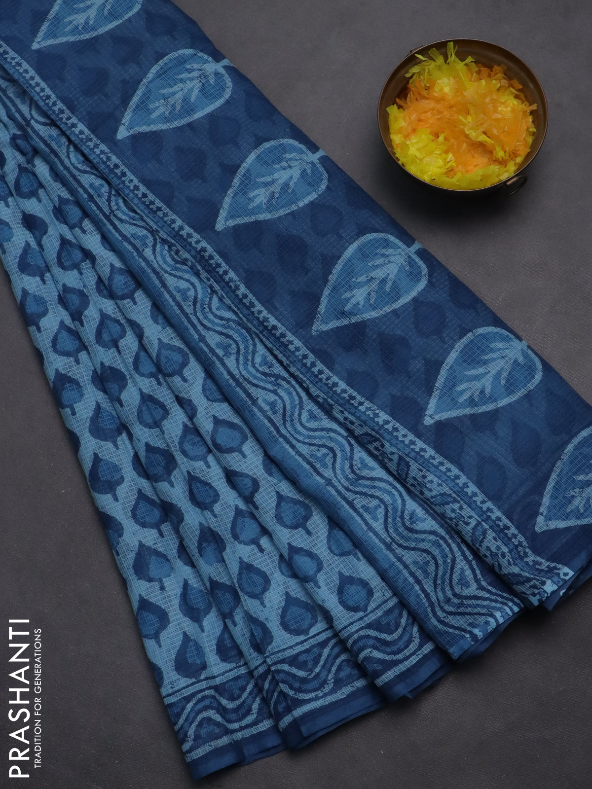 Kota doria saree pastel blue and blue with allover butta prints and printed border