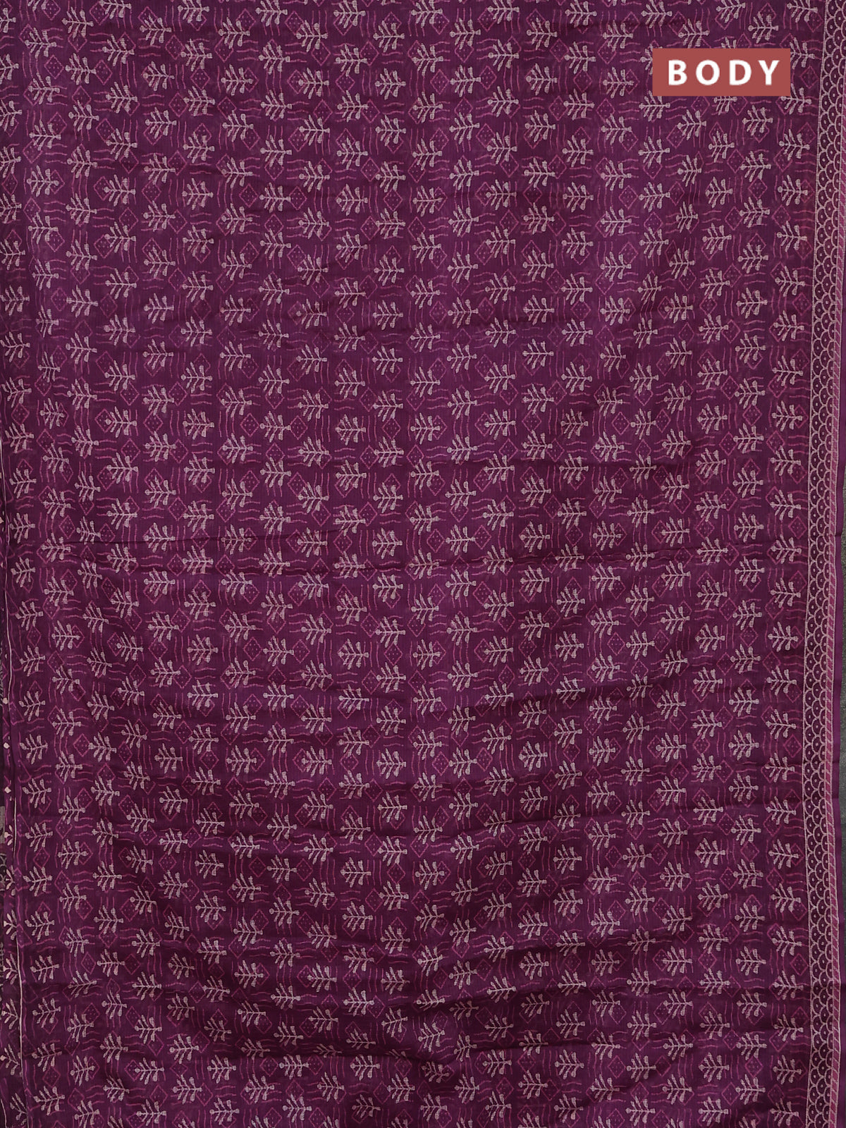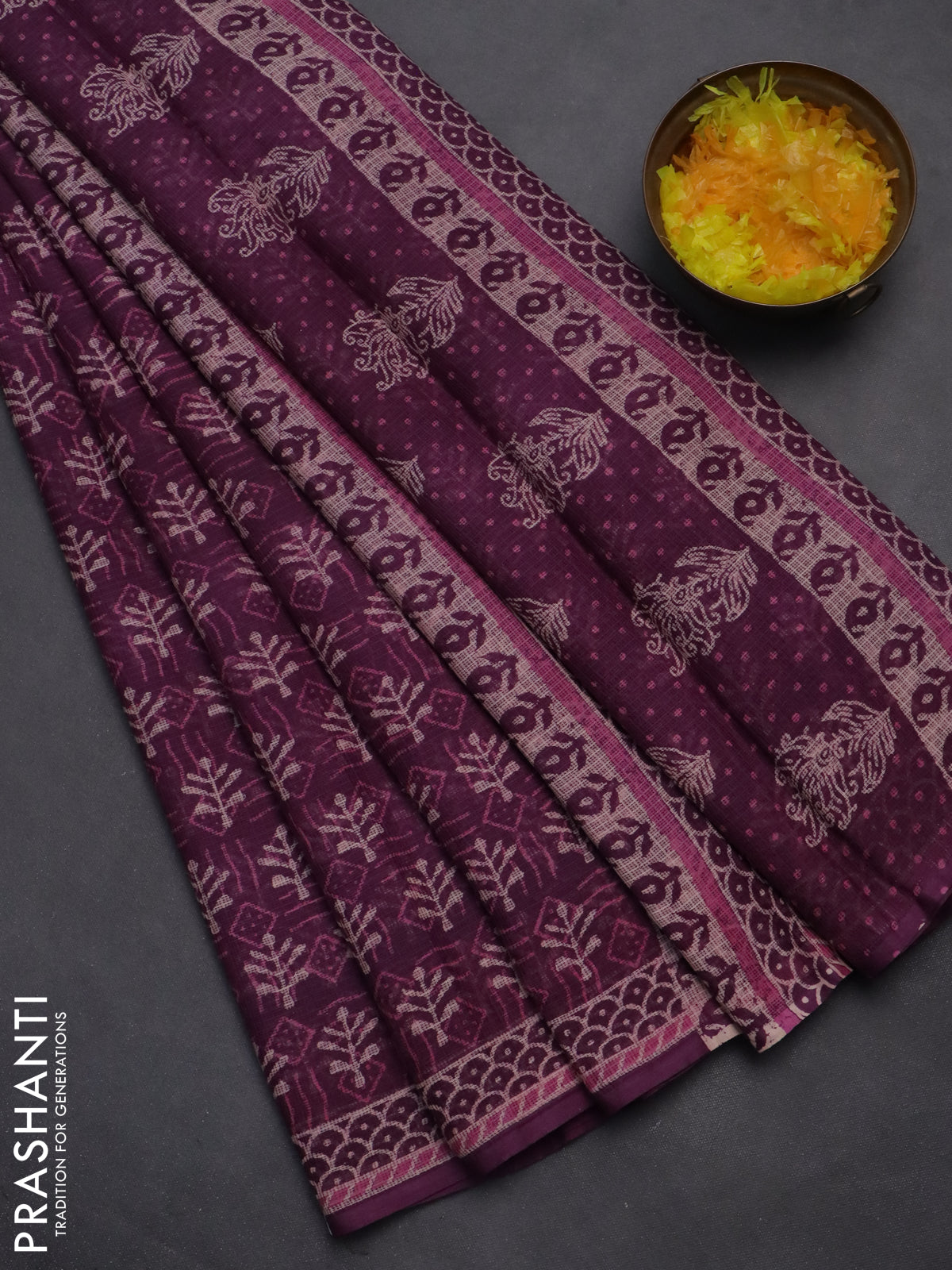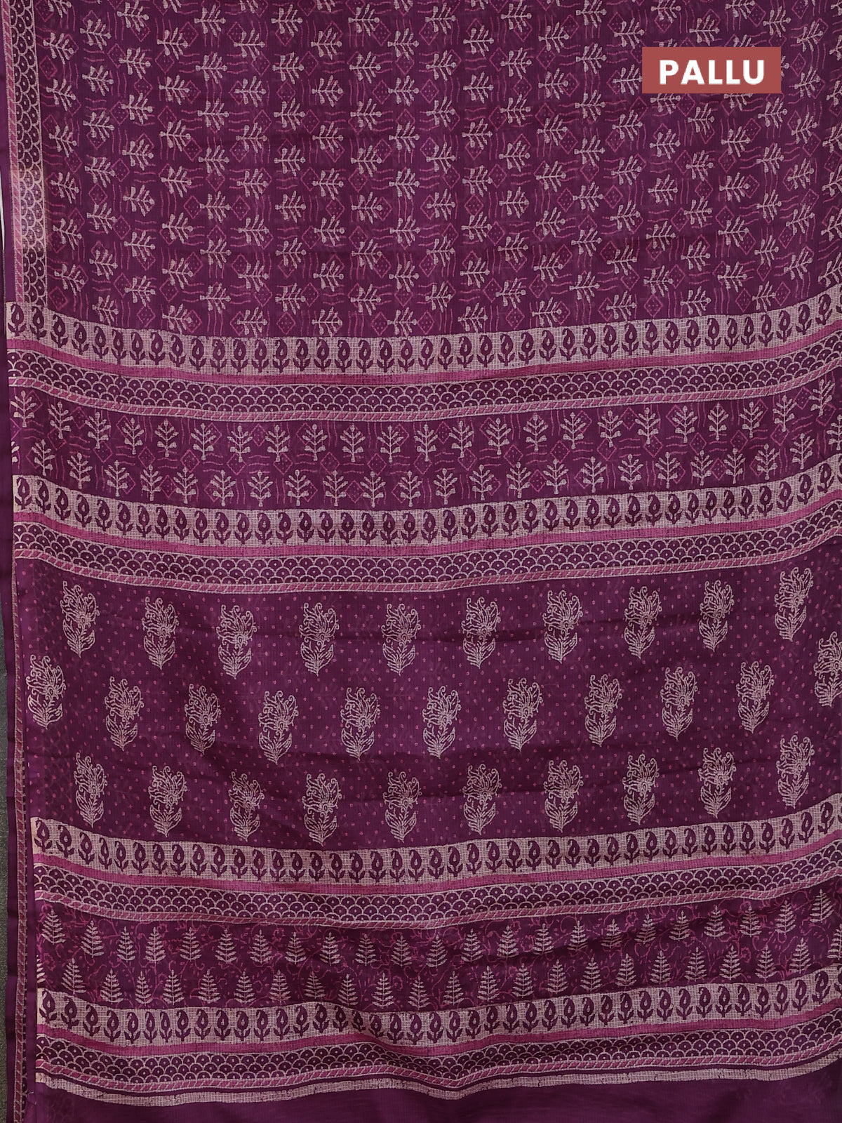Kota doria saree purple and cream with allover dabu prints and printed border
