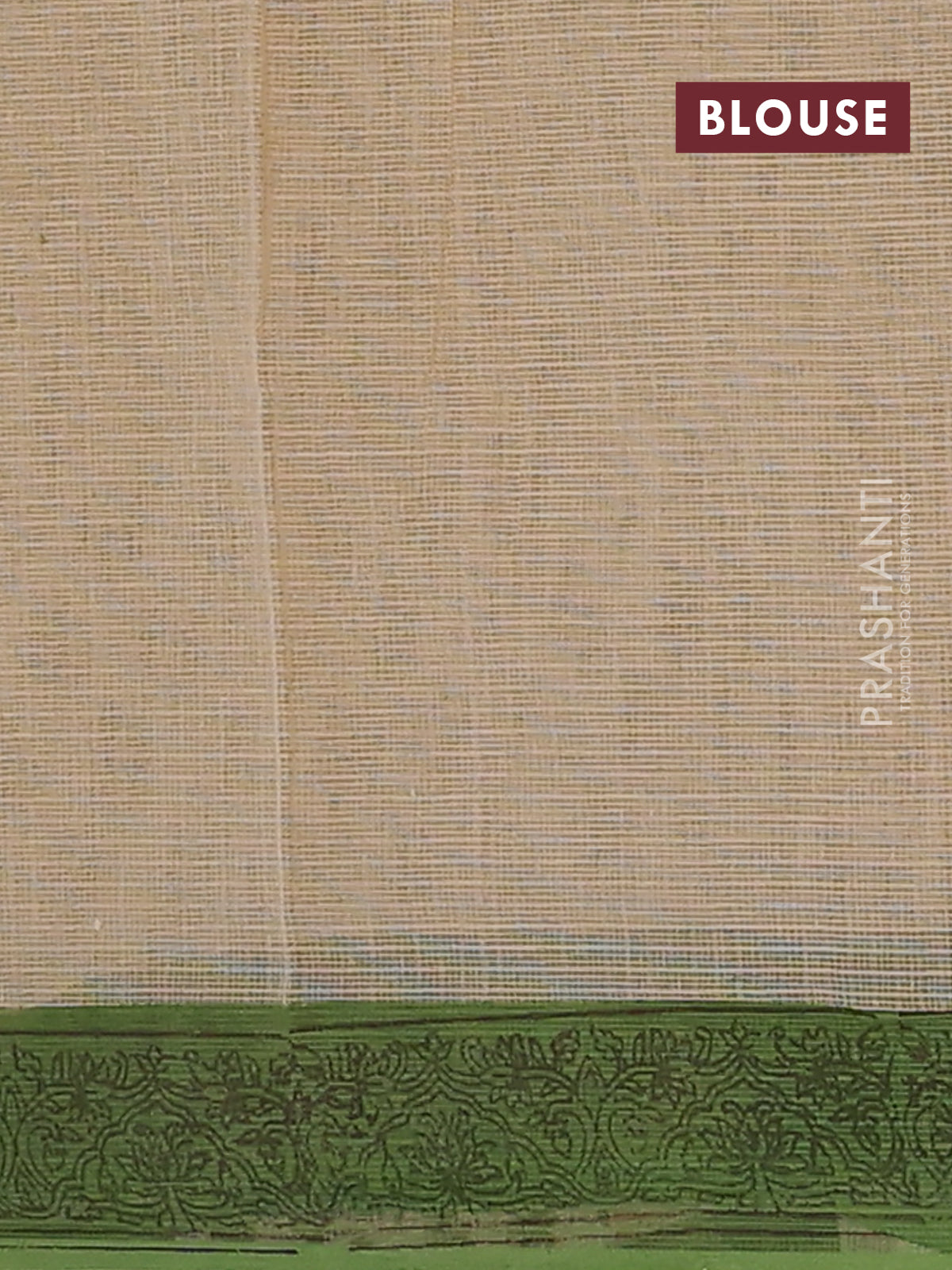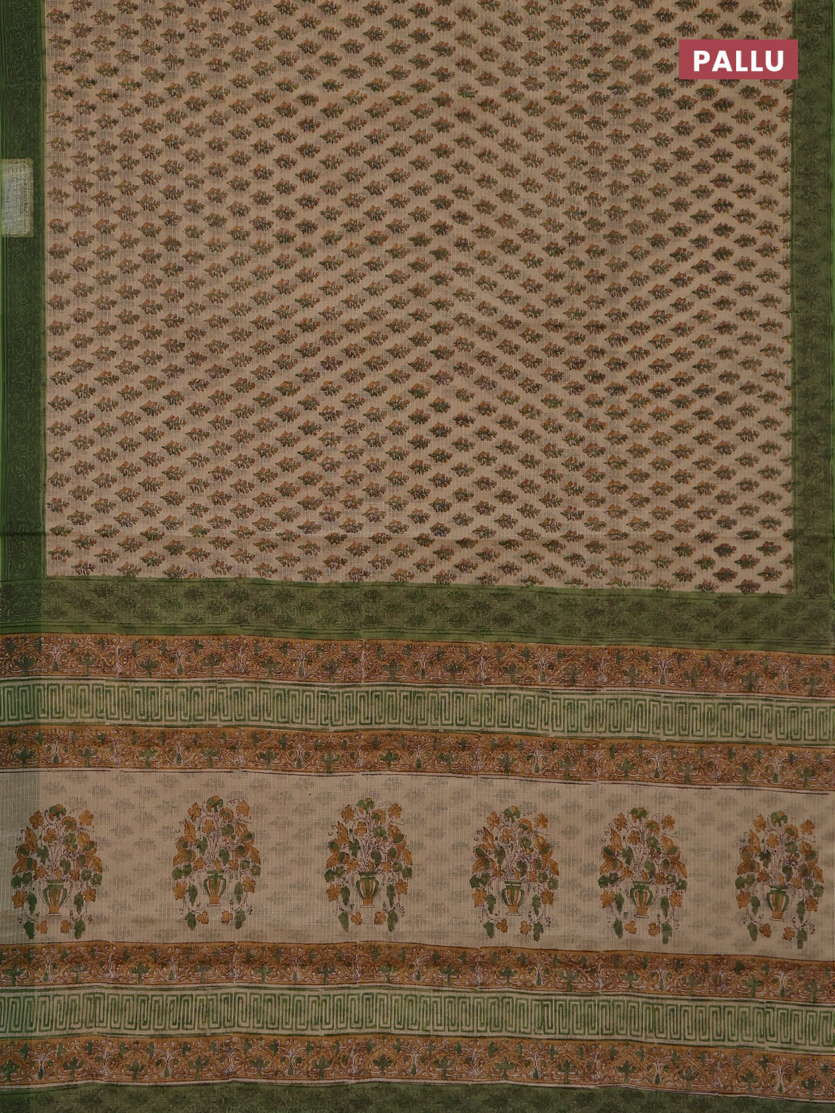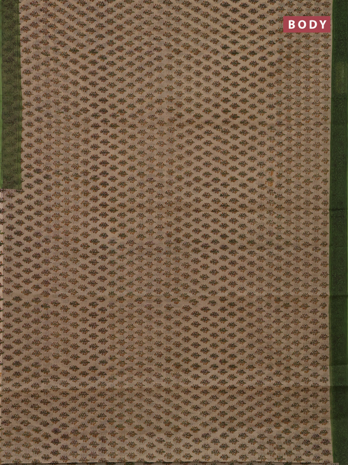 Kota doria saree sandal and green with allover block prints and printed border