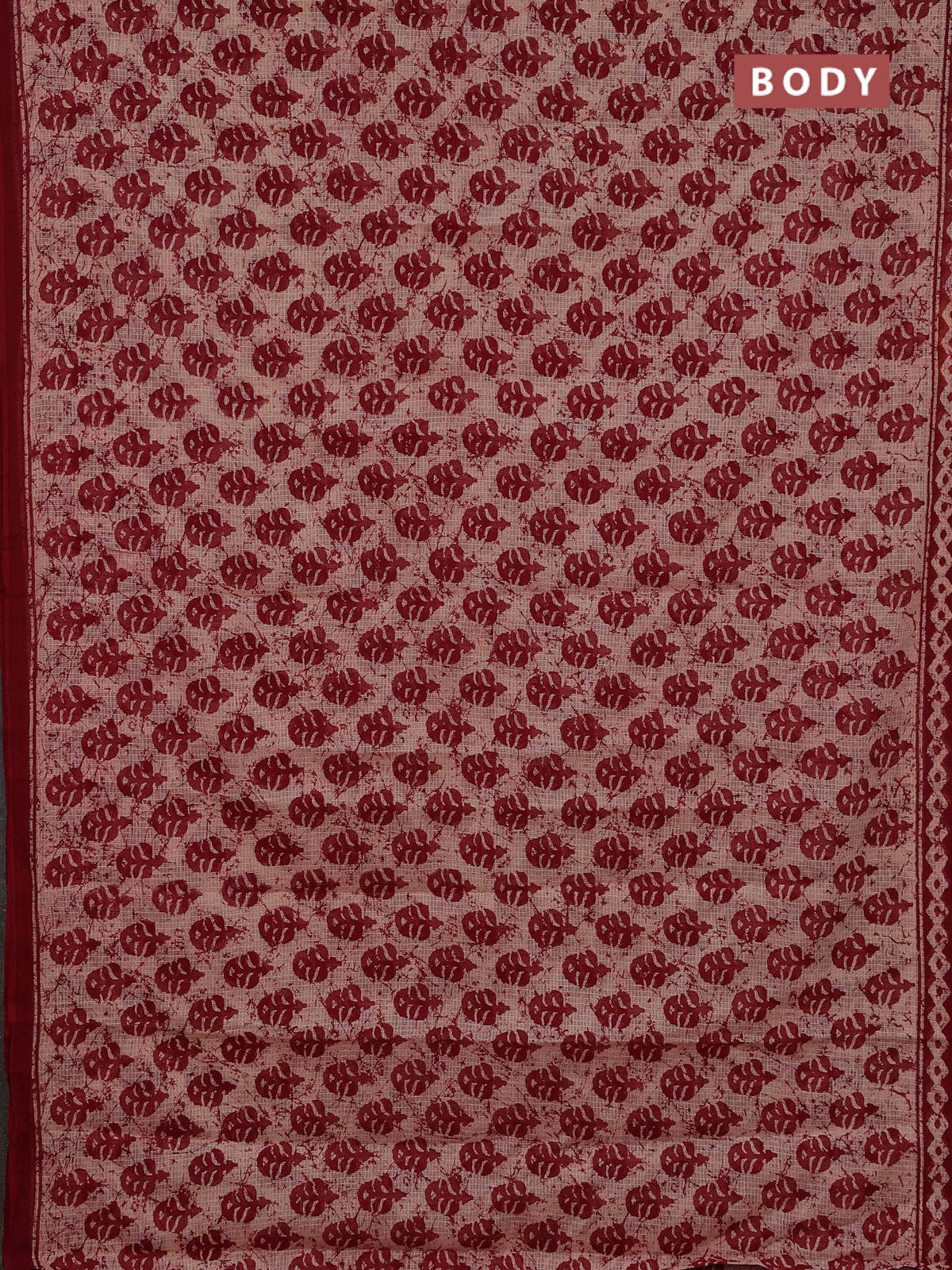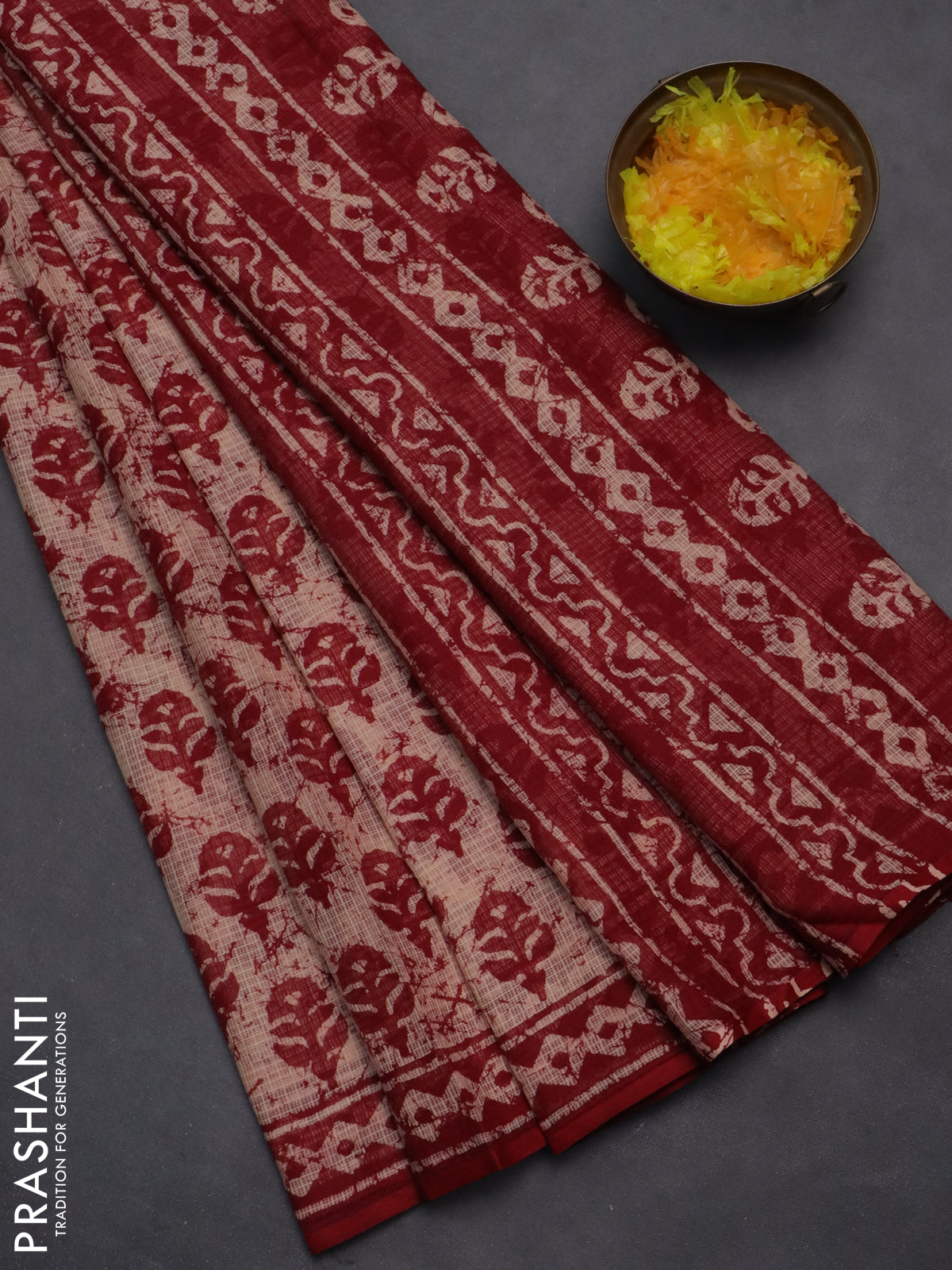 Kota doria saree sandal and maroon with allover butta prints and printed border