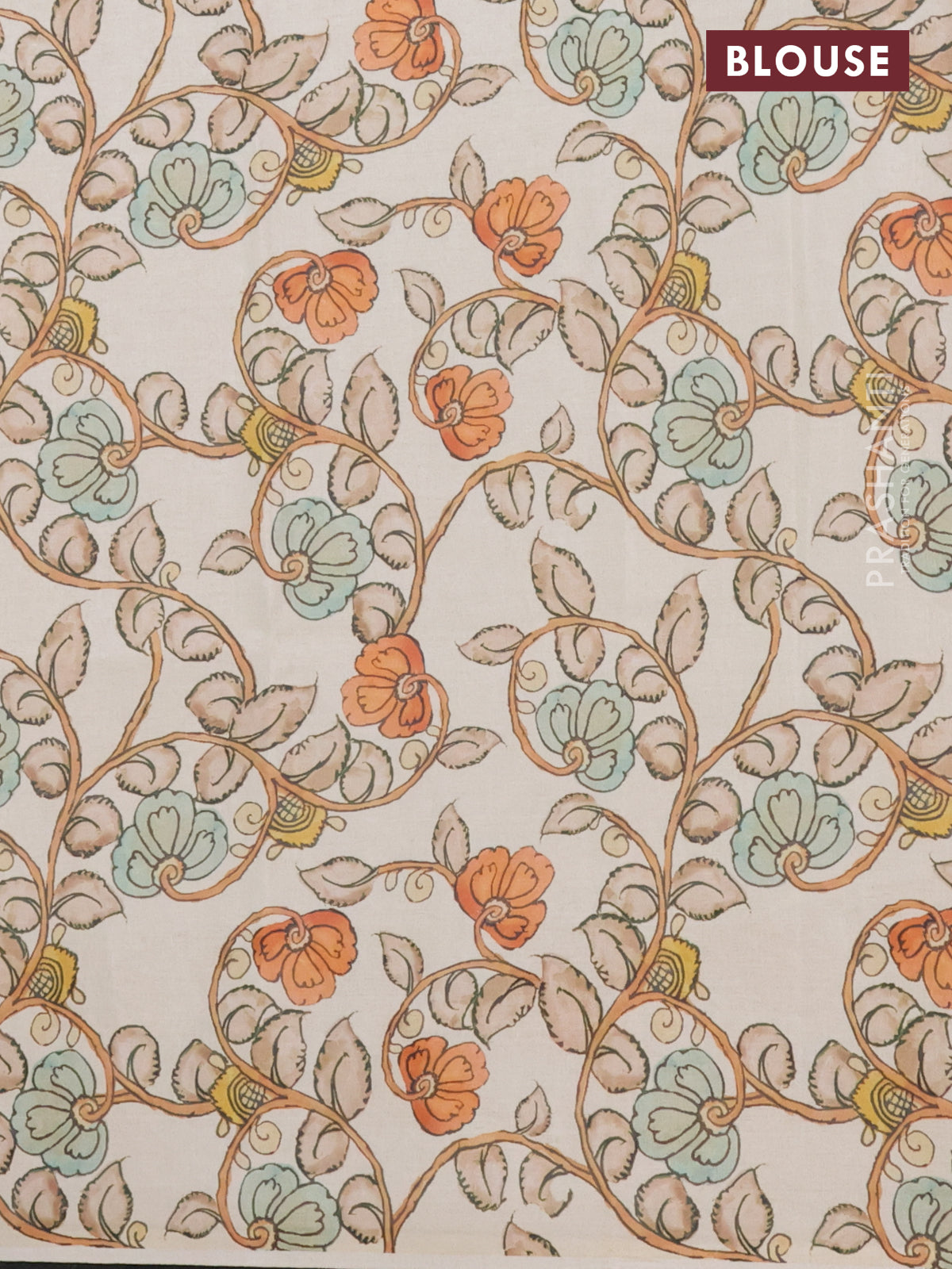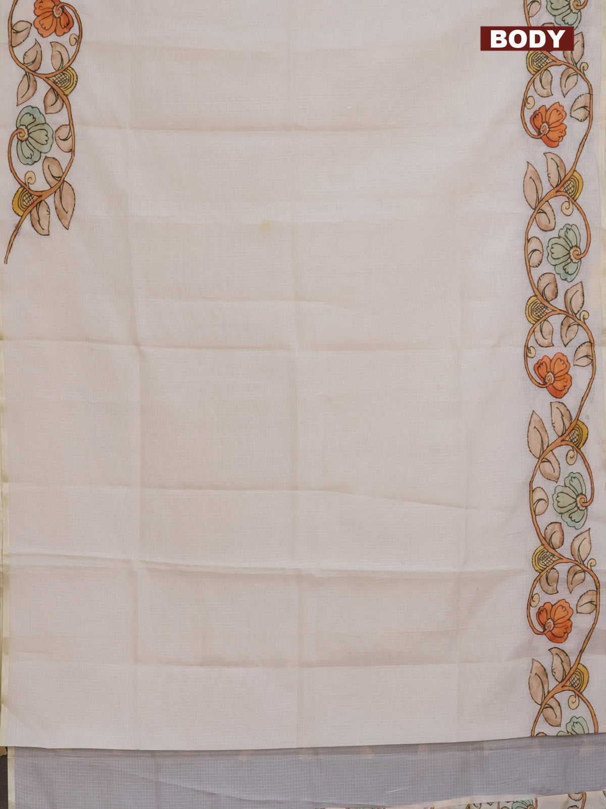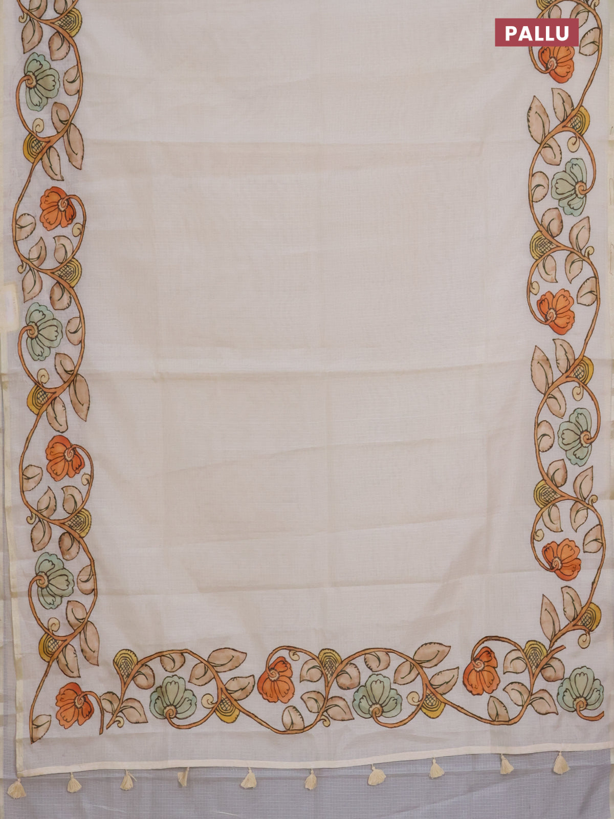 Kota saree cream with kalamkari applique work and zari woven piping border