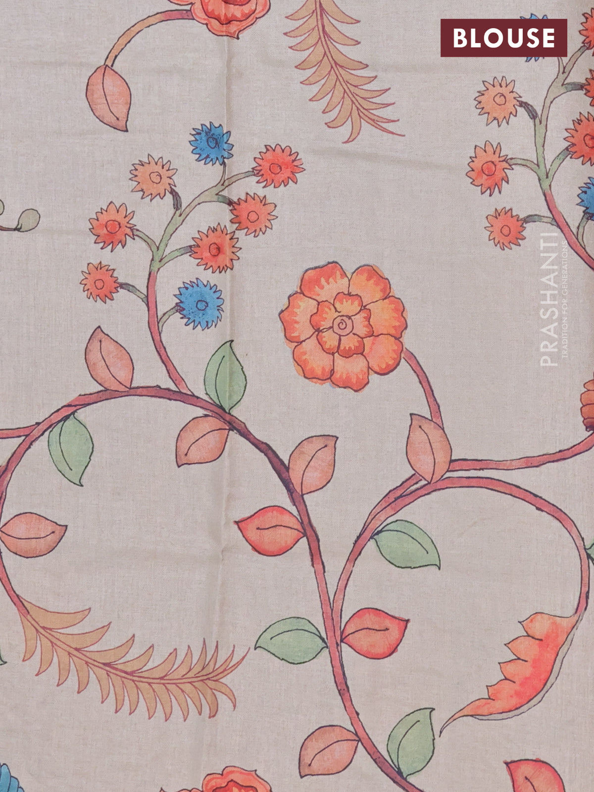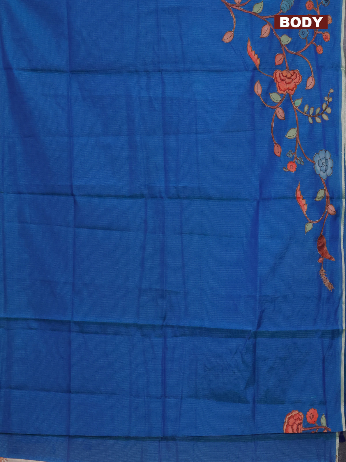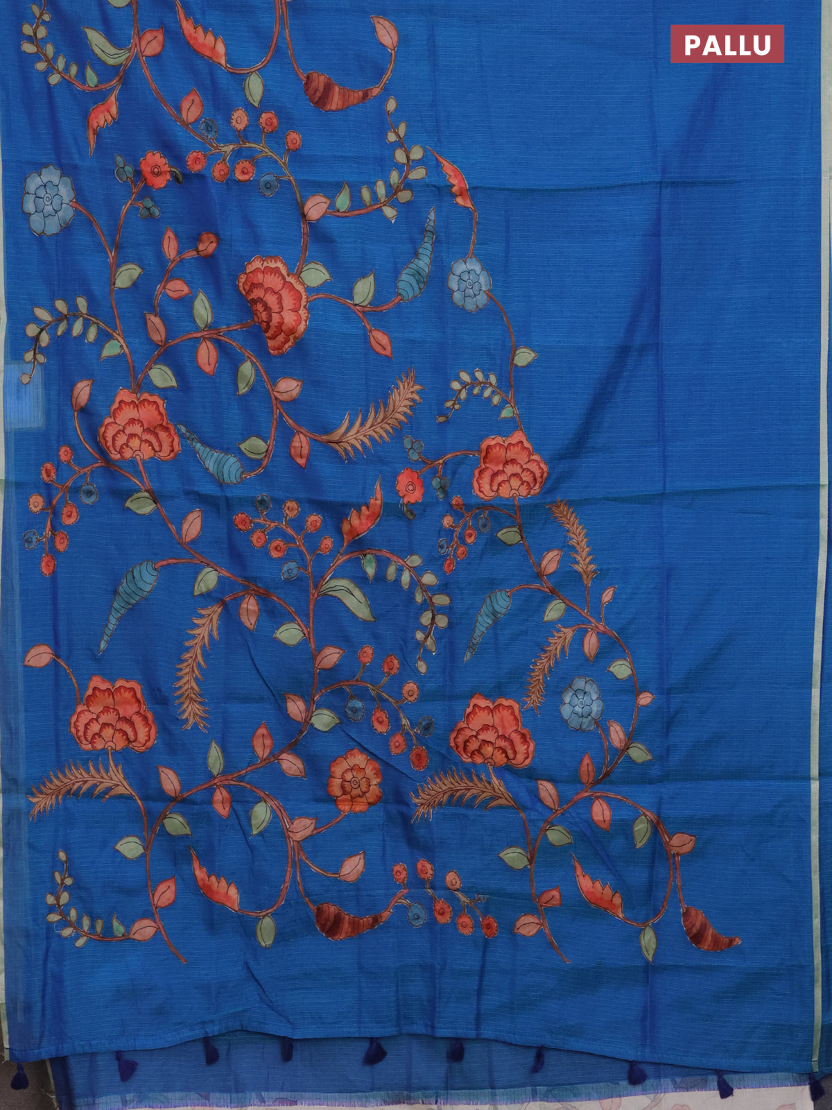 Kota saree dual shade of blue with kalamkari applique work and zari woven piping border
