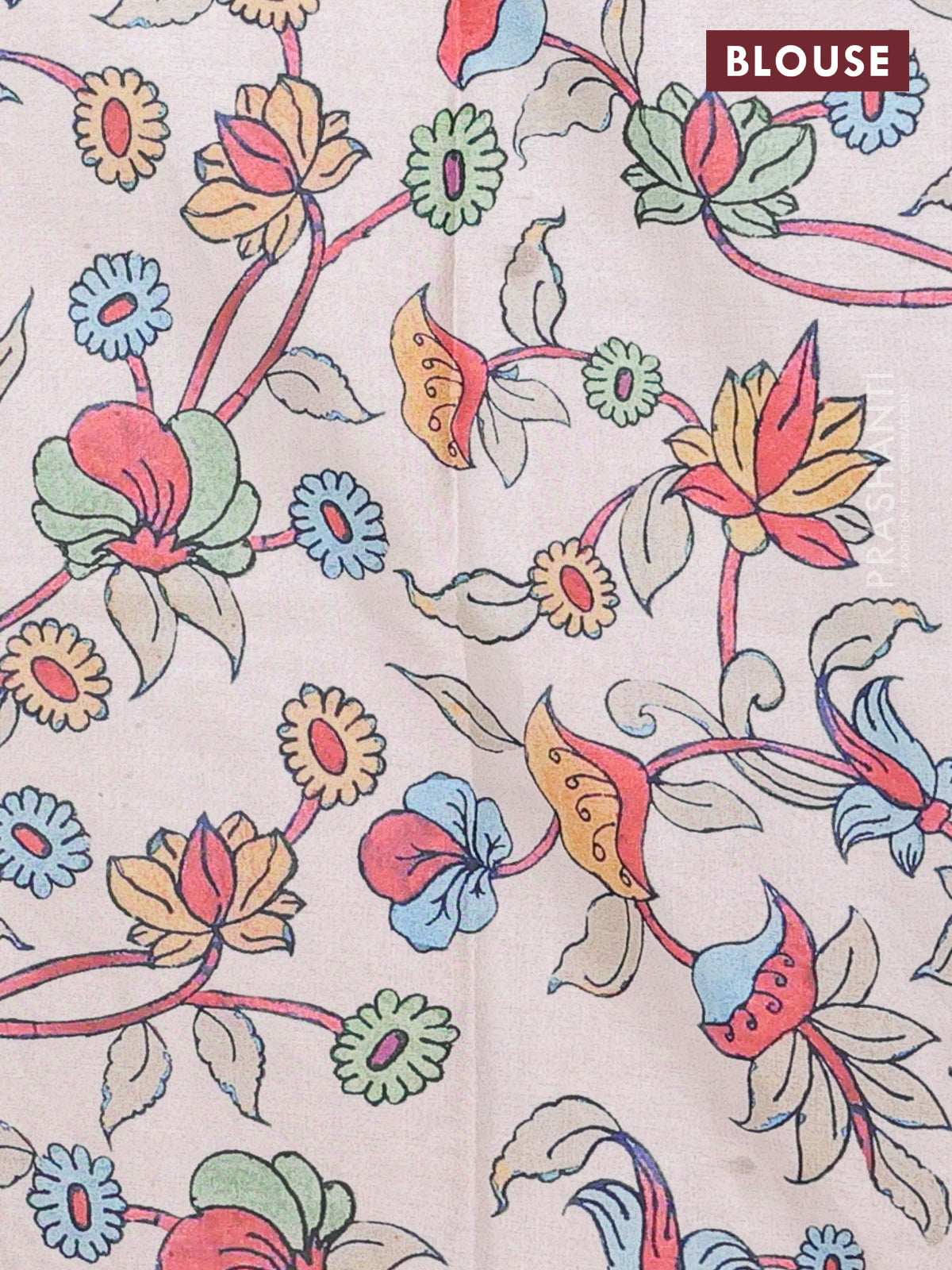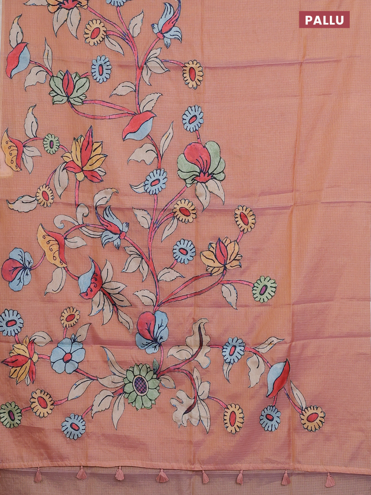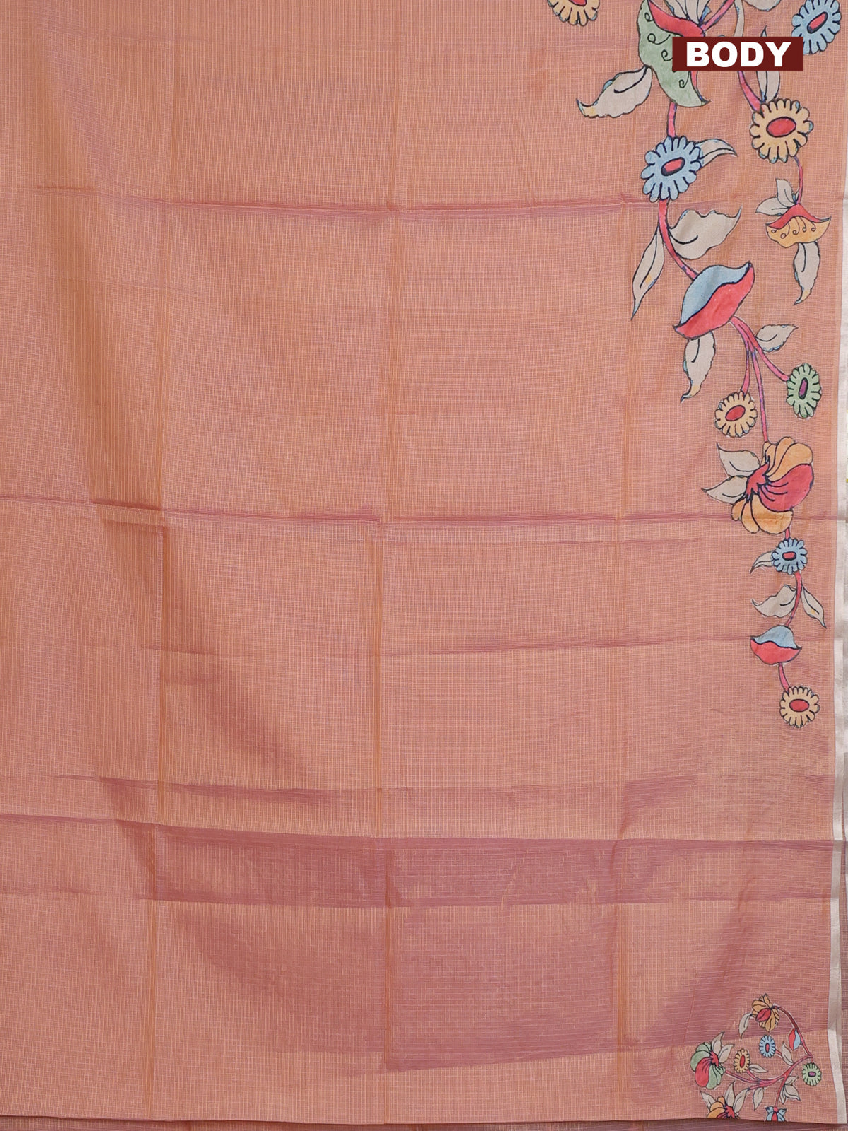Kota saree dual shade of pale orange with kalamkari applique work and zari woven piping border
