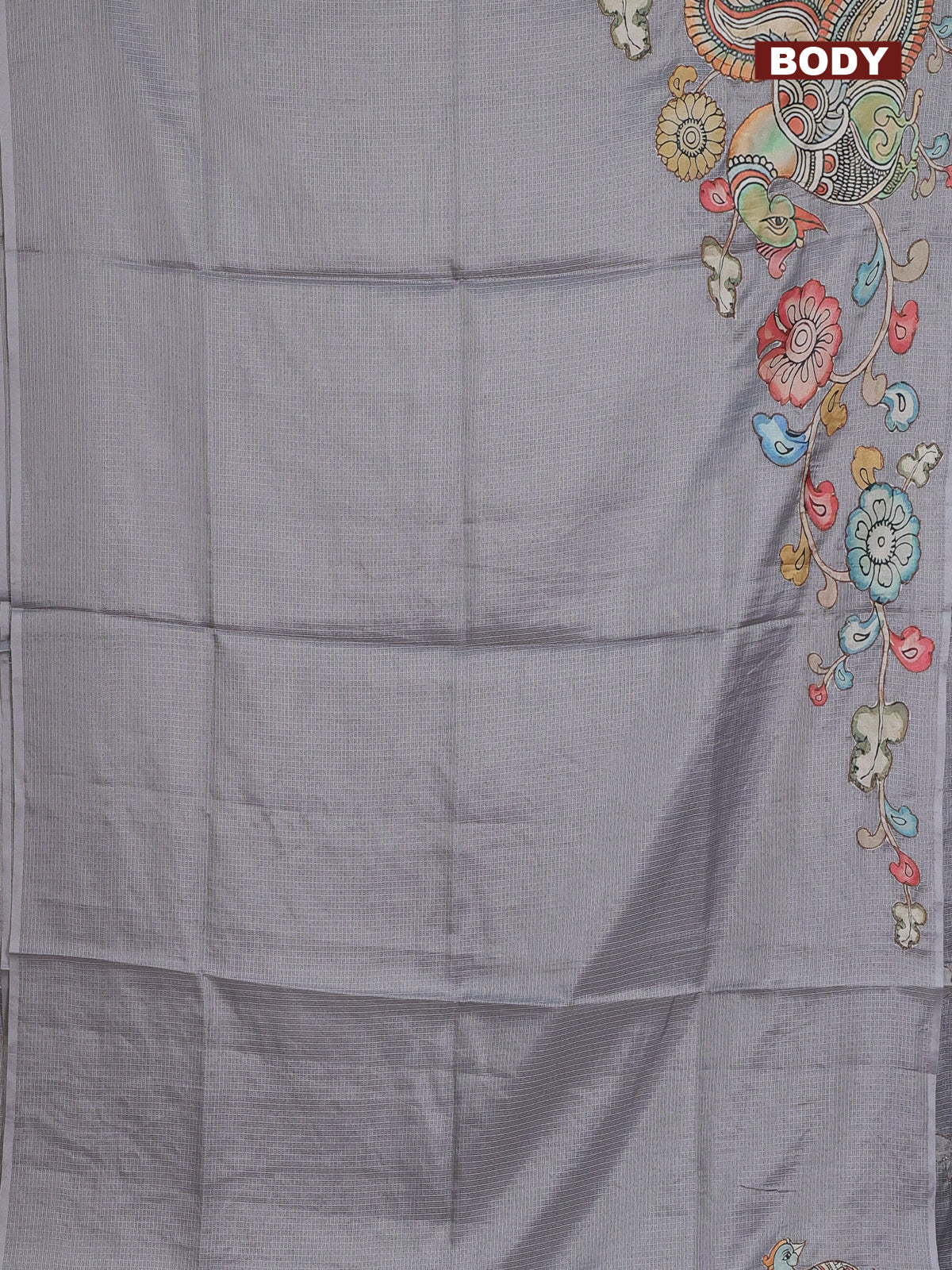 Kota saree grey with kalamkari applique work and zari woven piping border