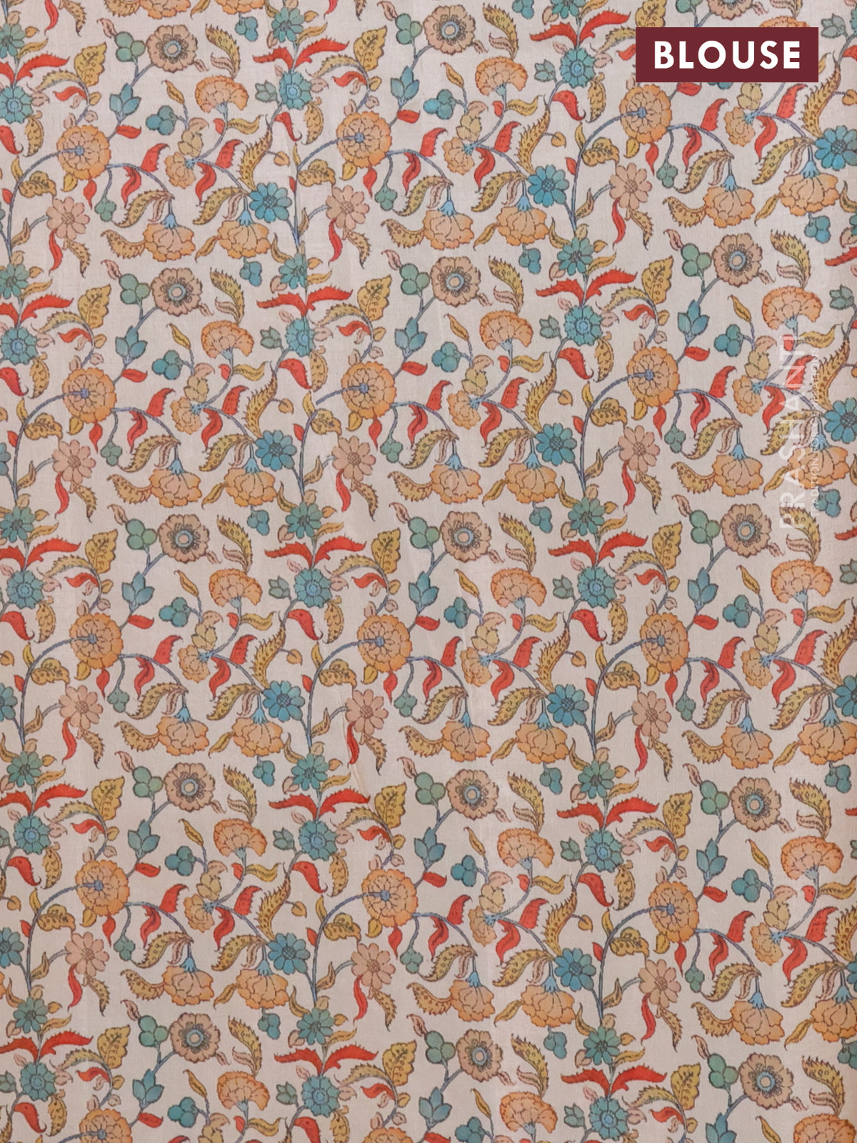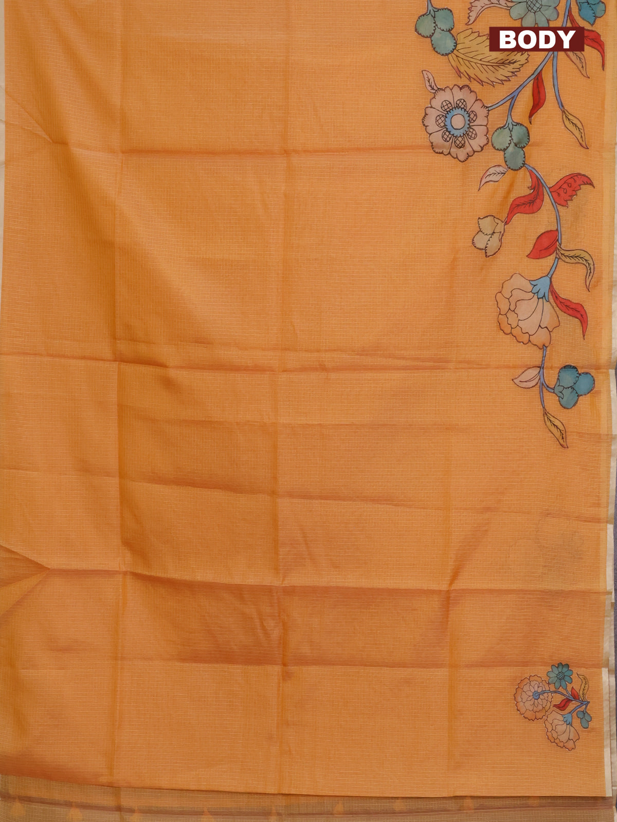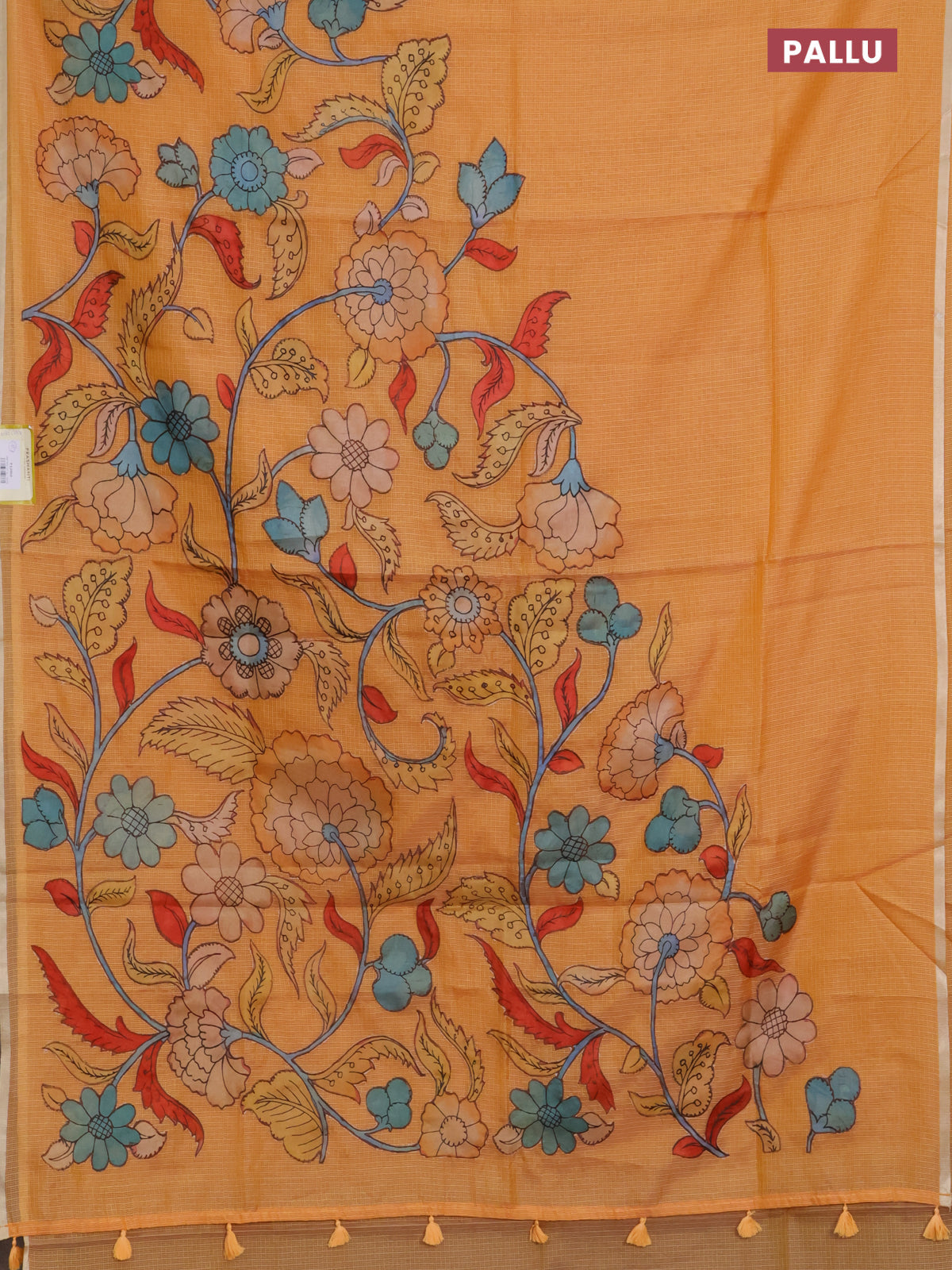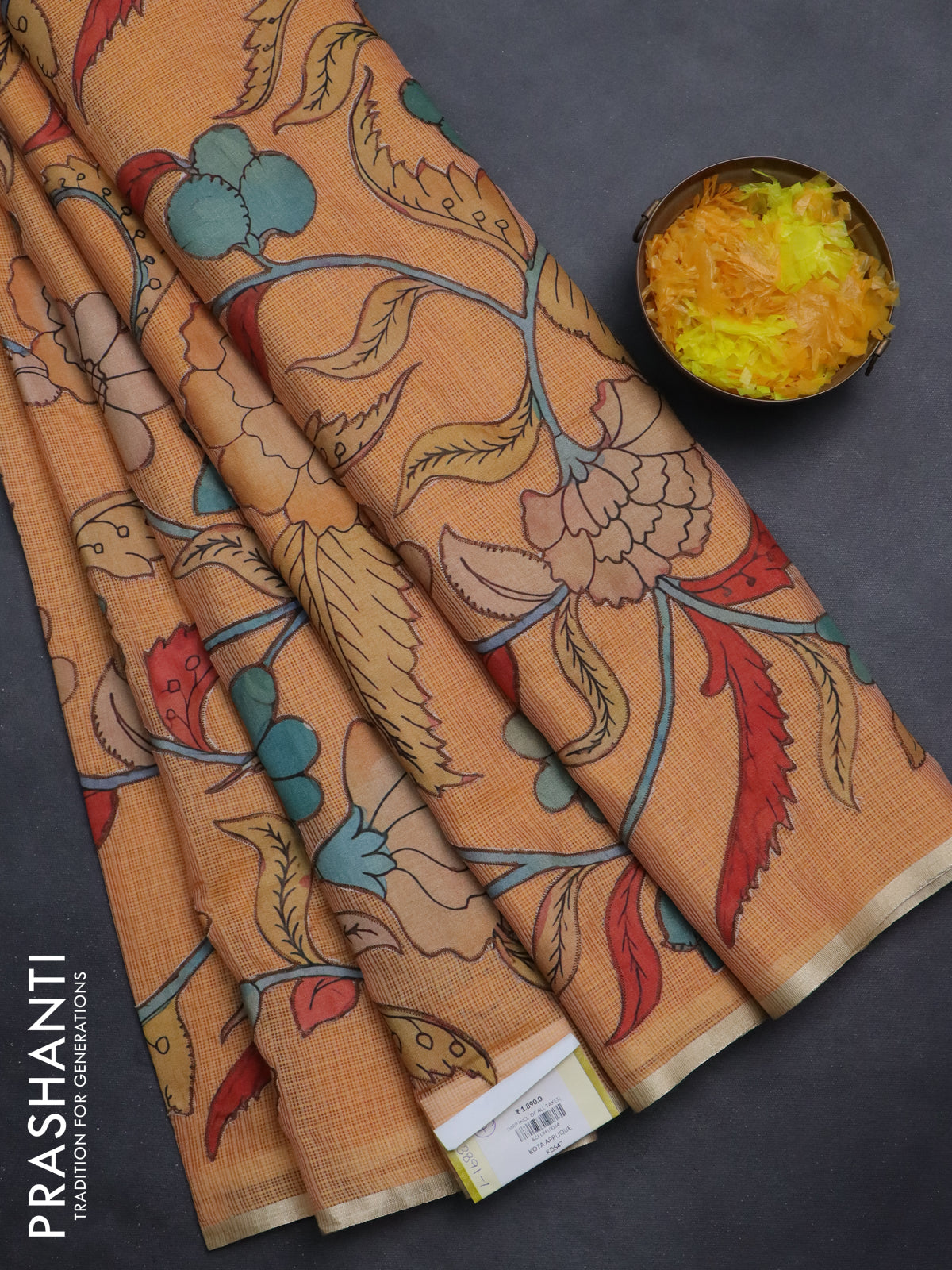 Kota saree orange with kalamkari applique work and zari woven piping border