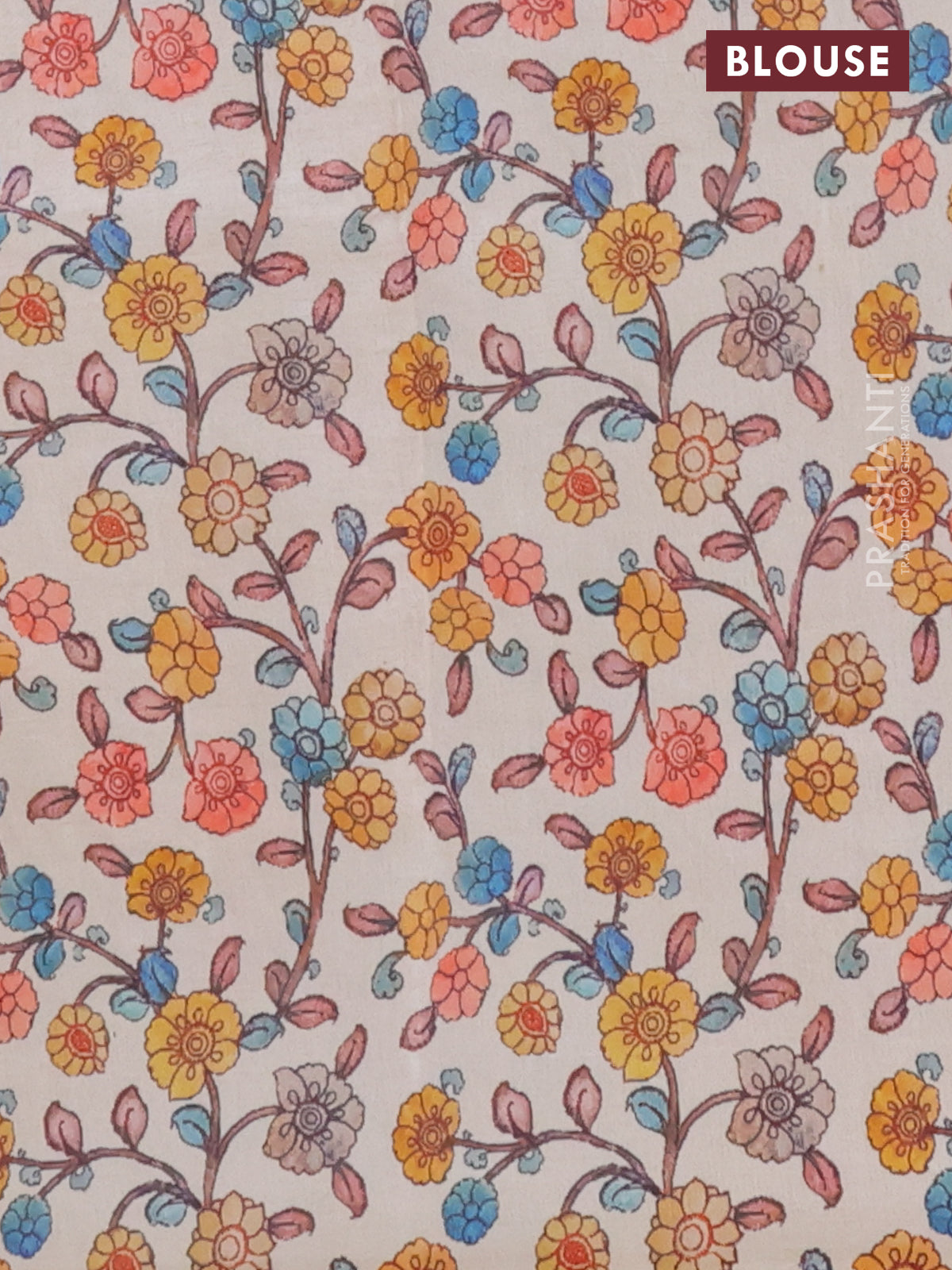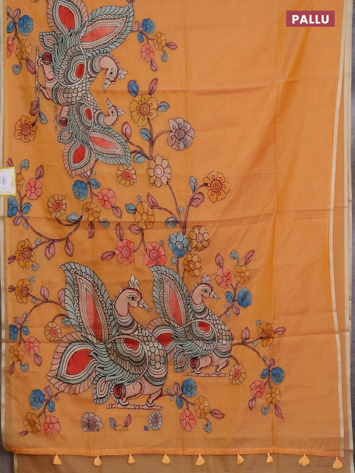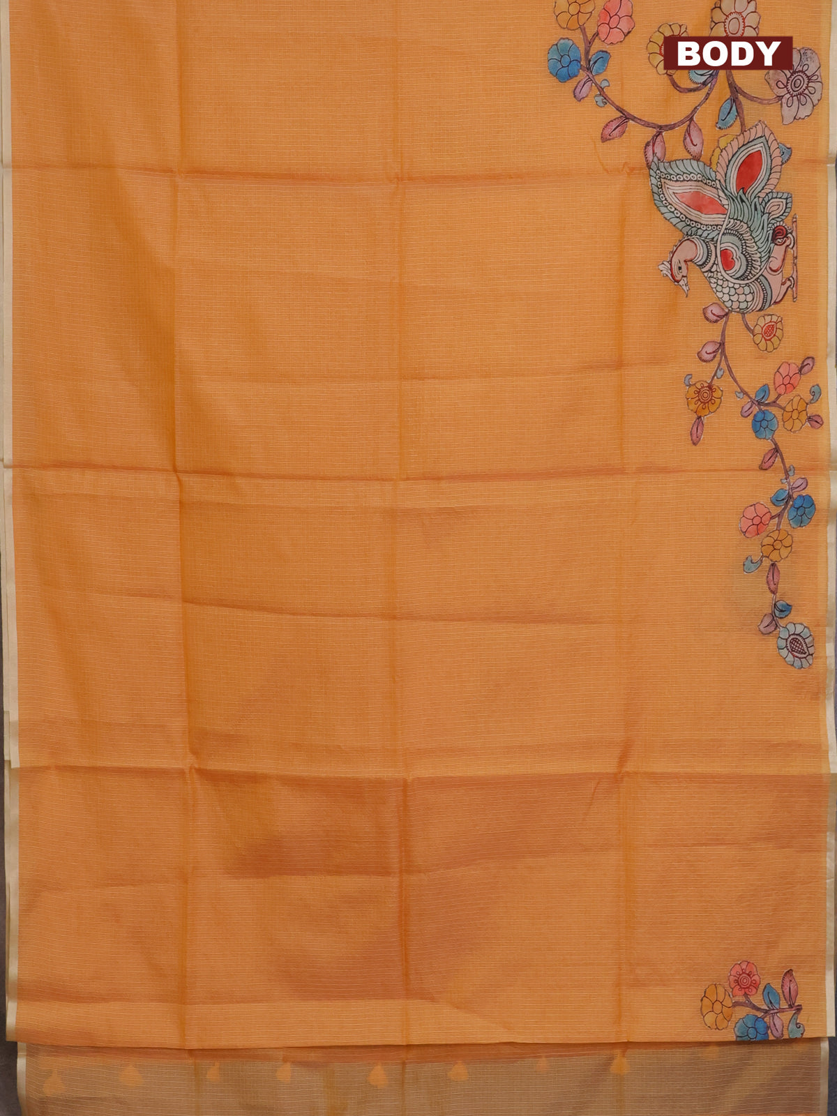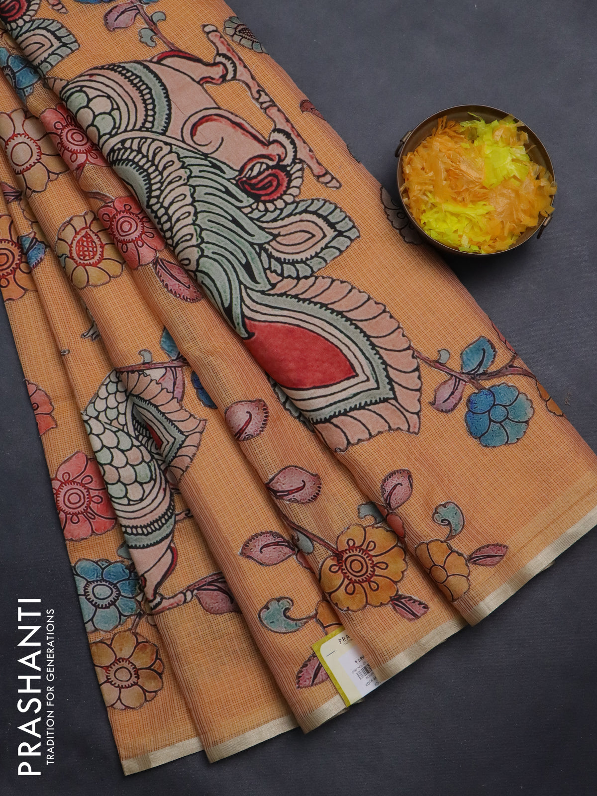 Kota saree orange with kalamkari applique work and zari woven piping border
