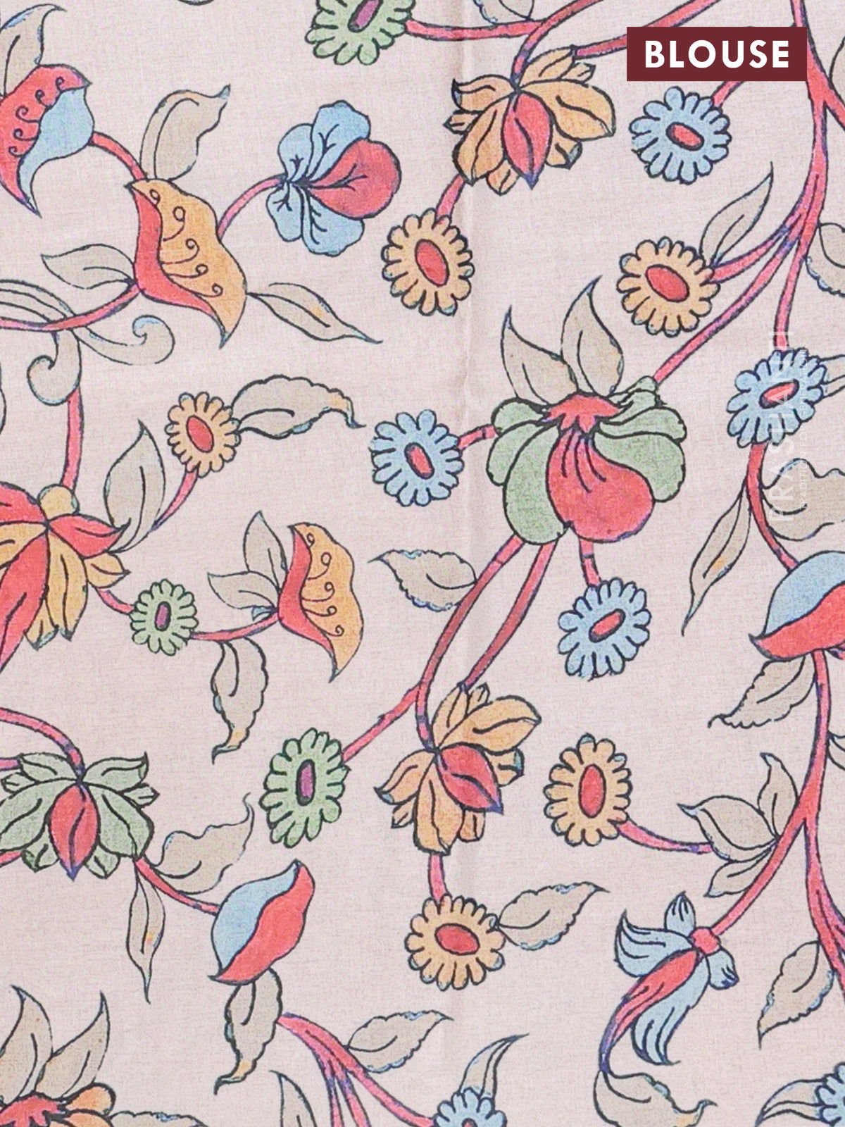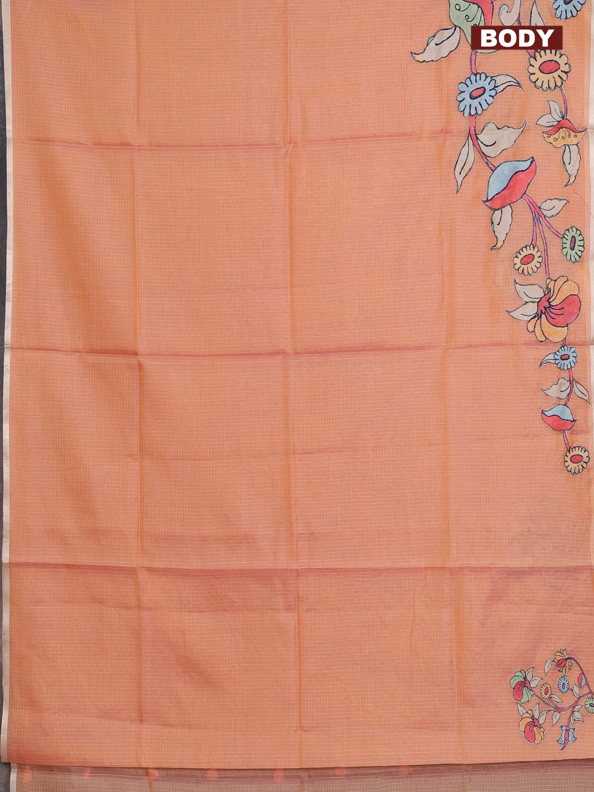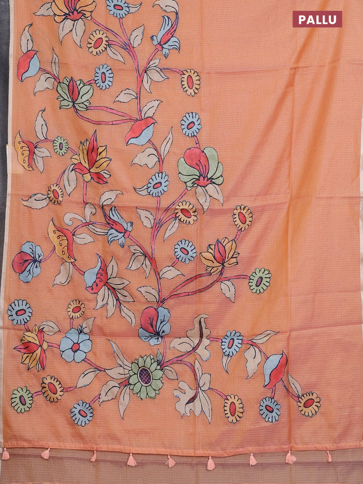 Kota saree pale orange with kalamkari applique work and zari woven piping border