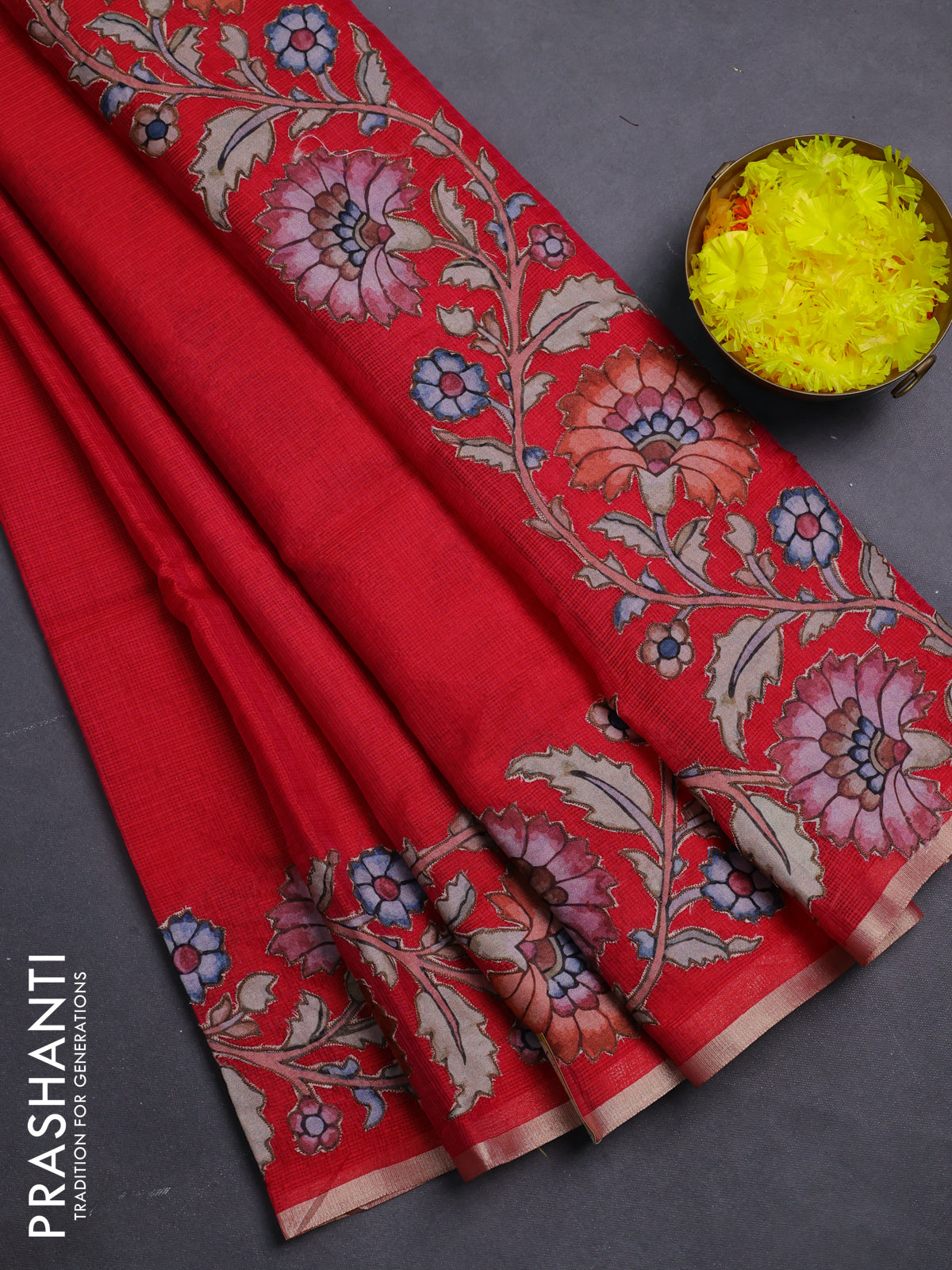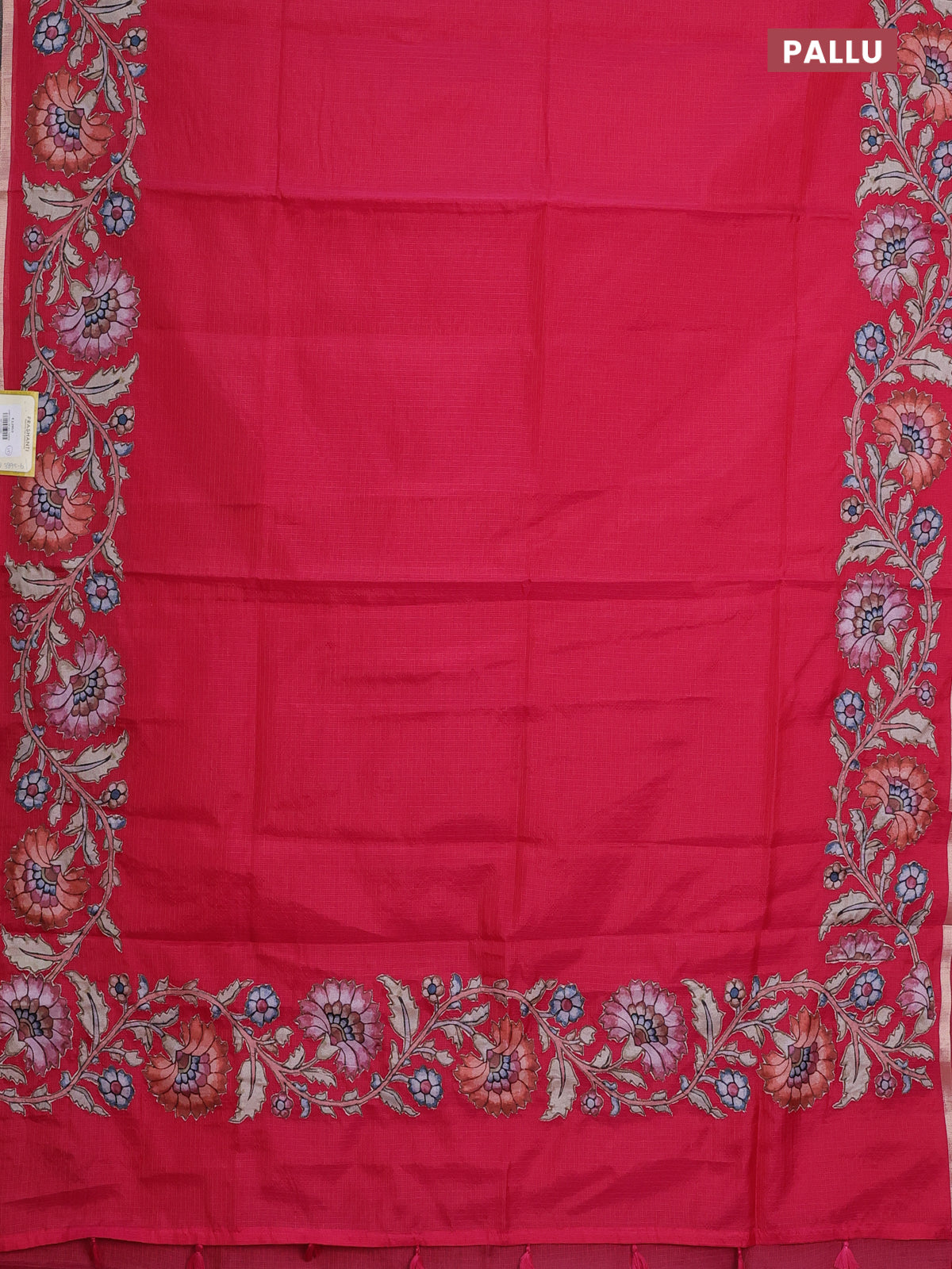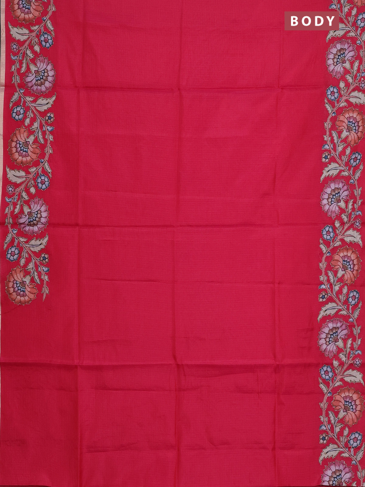Kota saree reddish pink with plain body and kalamkari applique work border
