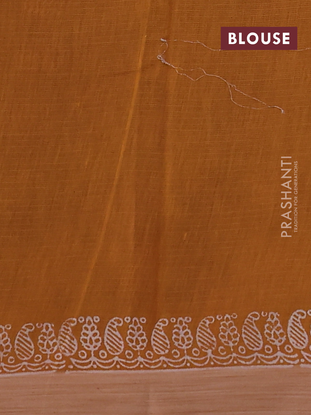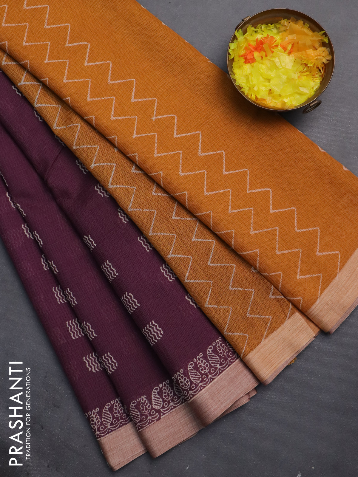Kota silk cotton saree wine shade and mustard yellow with butta block prints and printed border