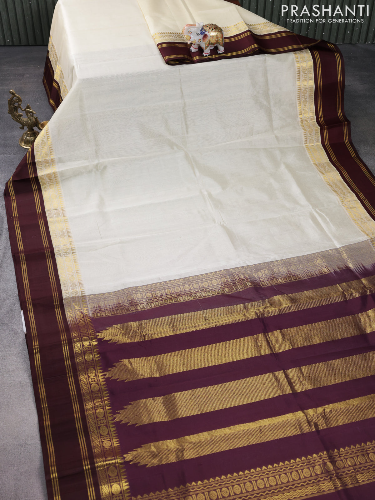 Kuppadam silk cotton saree cream and brown with plain body and rettapet zari woven border