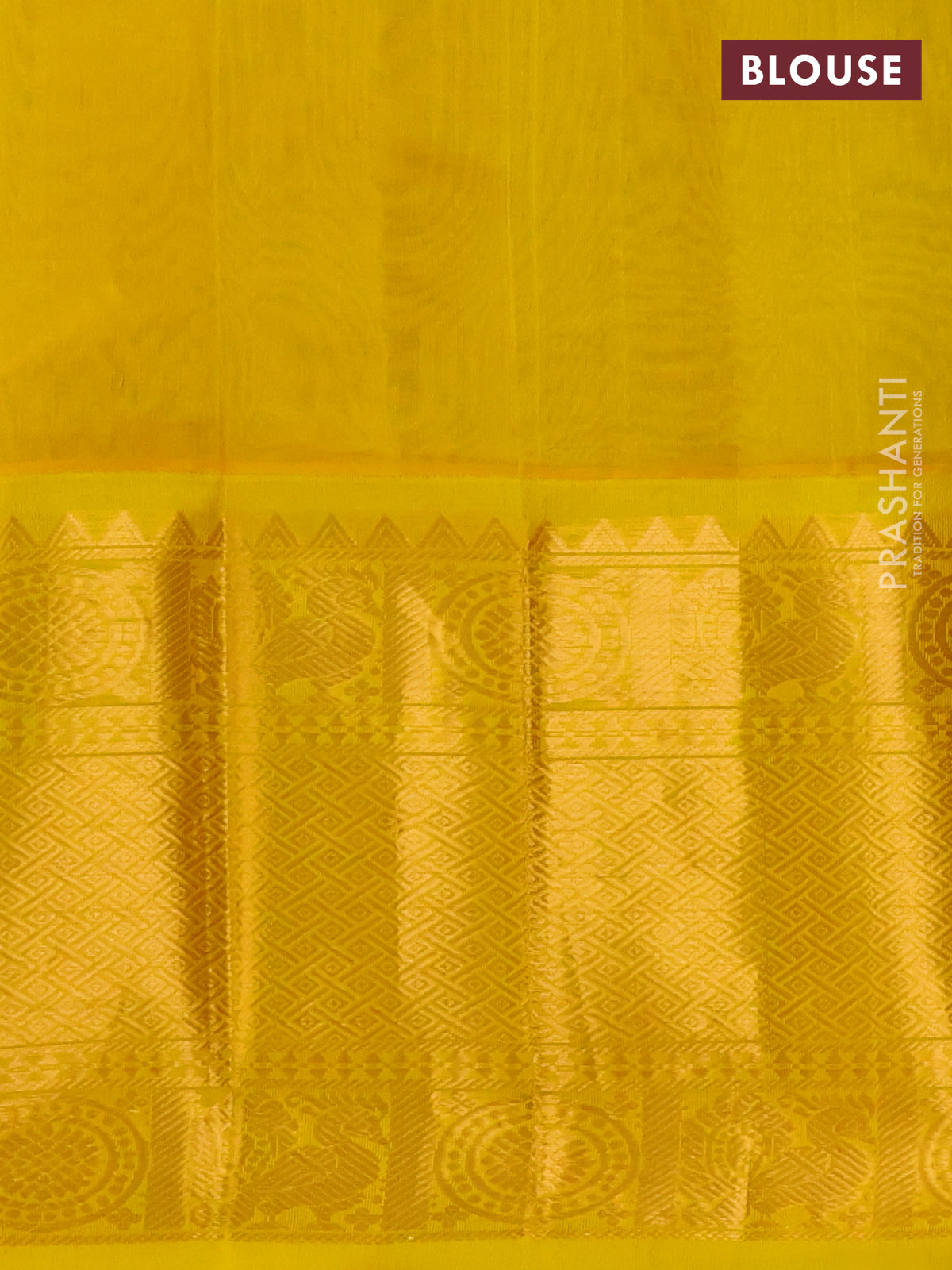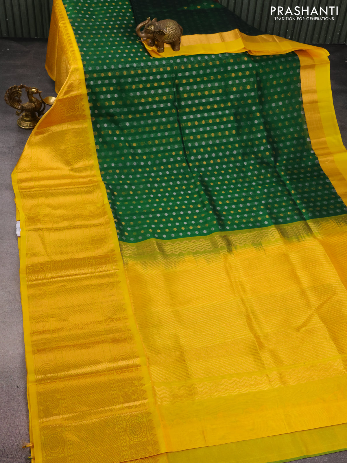 Kuppadam silk cotton saree green and yellow with silver & gold zari woven buttas and long annam zari woven border