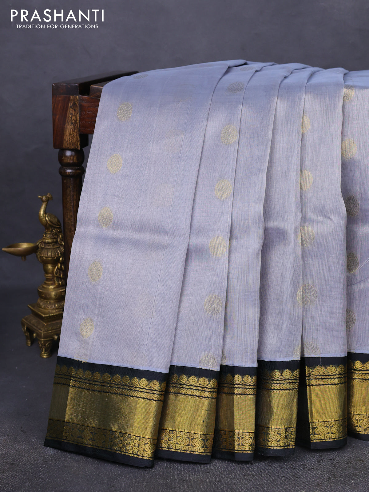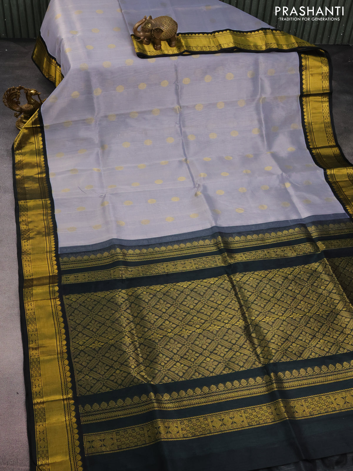 Kuppadam silk cotton saree grey and dark bottle green with zari woven rudhraksha buttas and zari woven border
