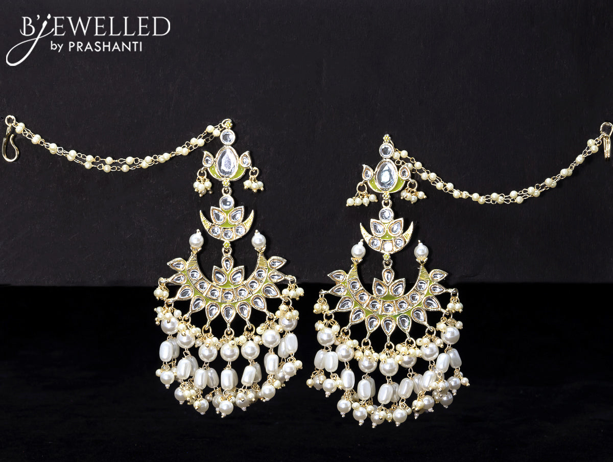 Light weight chandbali olive green minakari earrings with pearl maatal