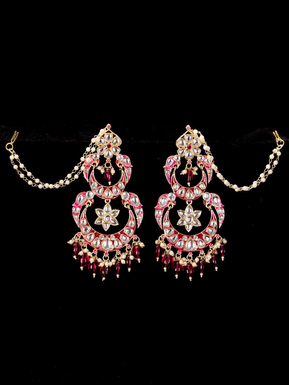 Light weight chandbali pink minakari earrings with pearl maatal