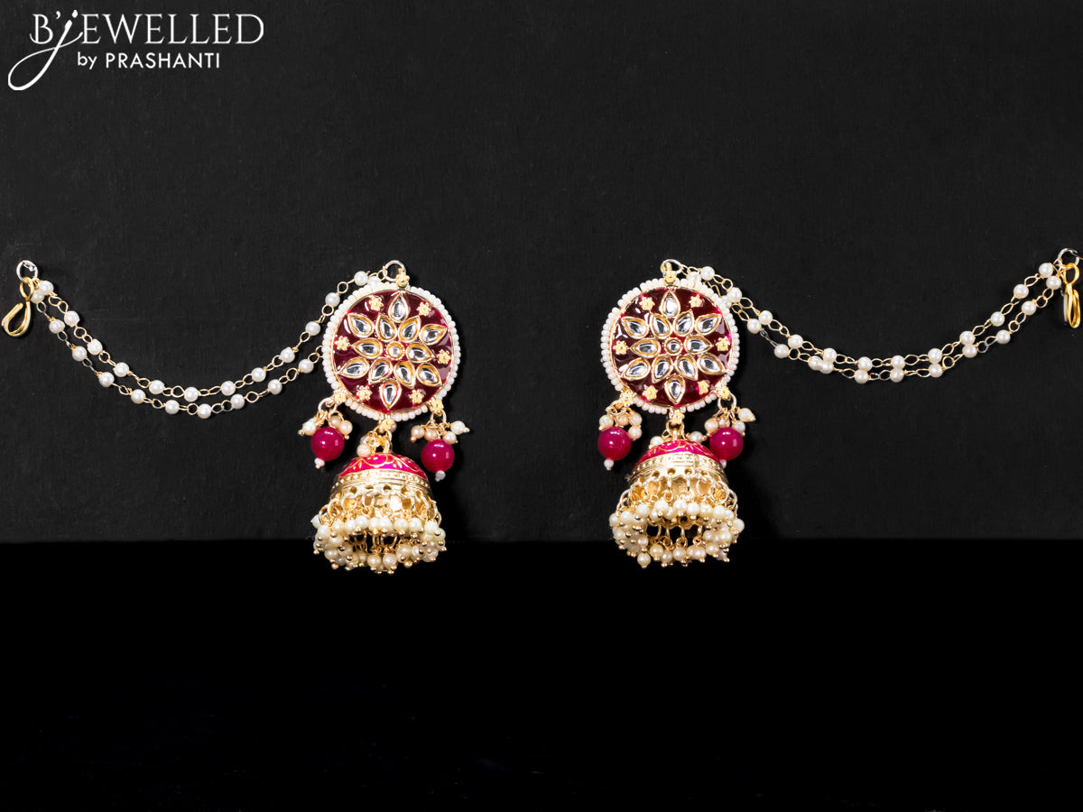 Light weight jhumkas with dark pink minakari and pearl maatal