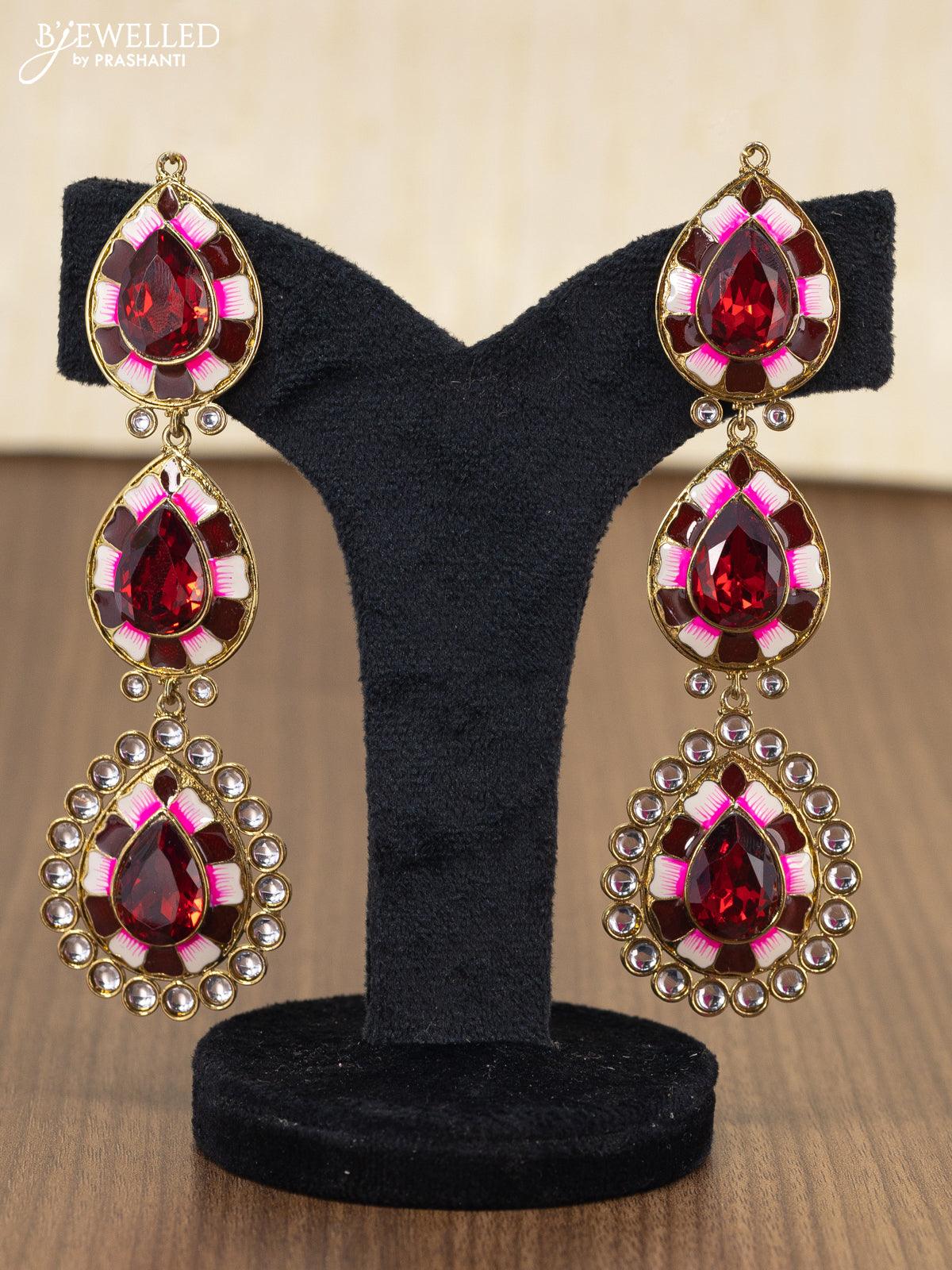 Light weight minakari earring maroon with pearl maatal
