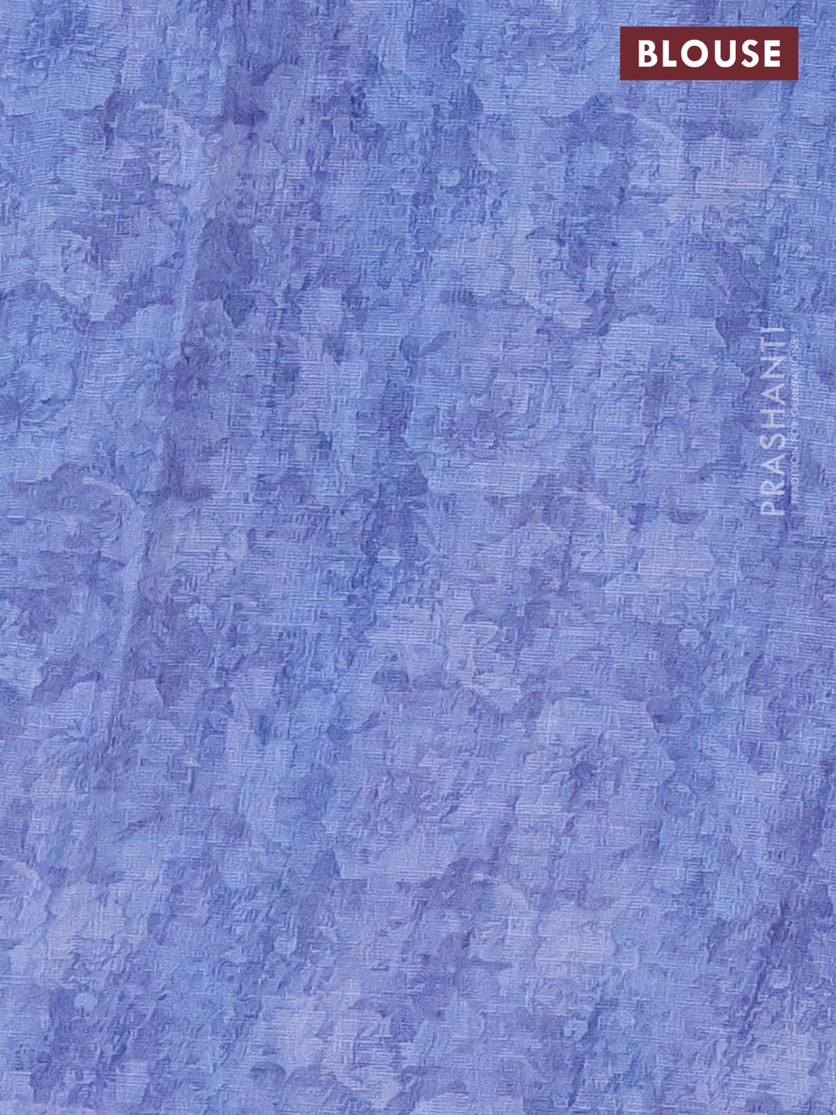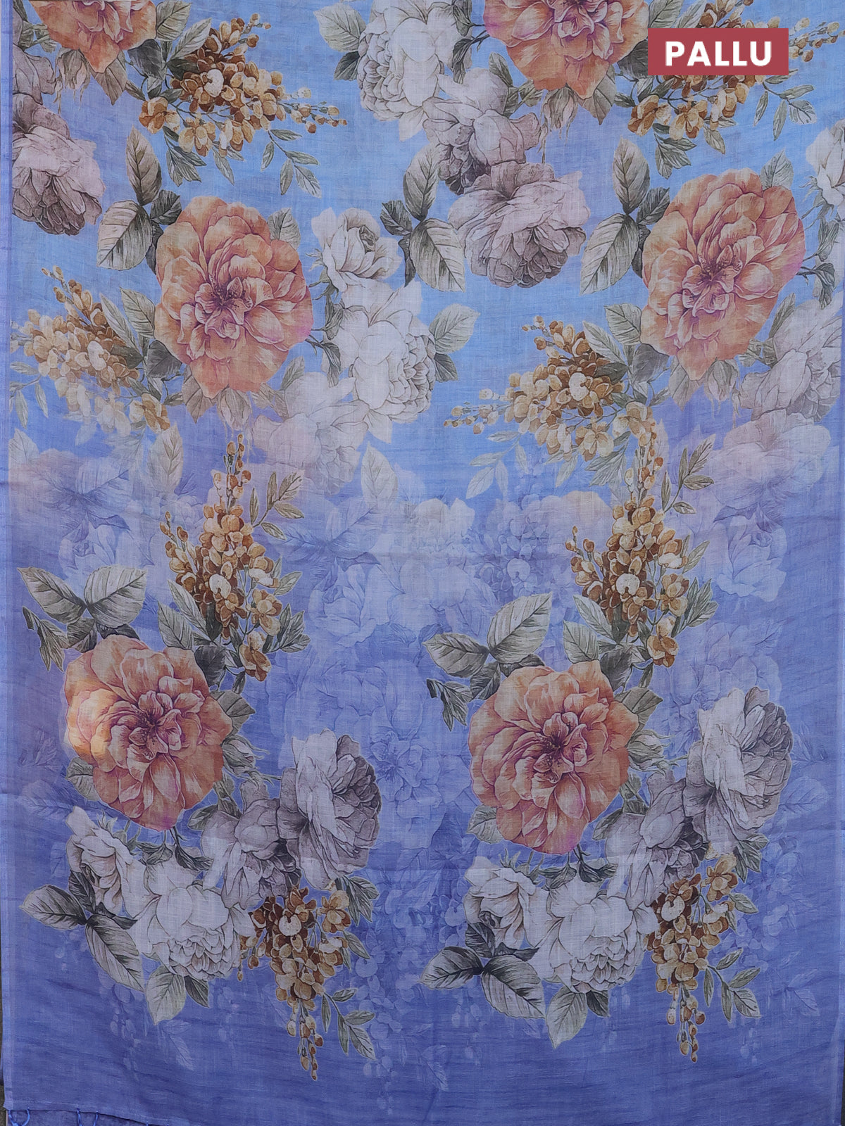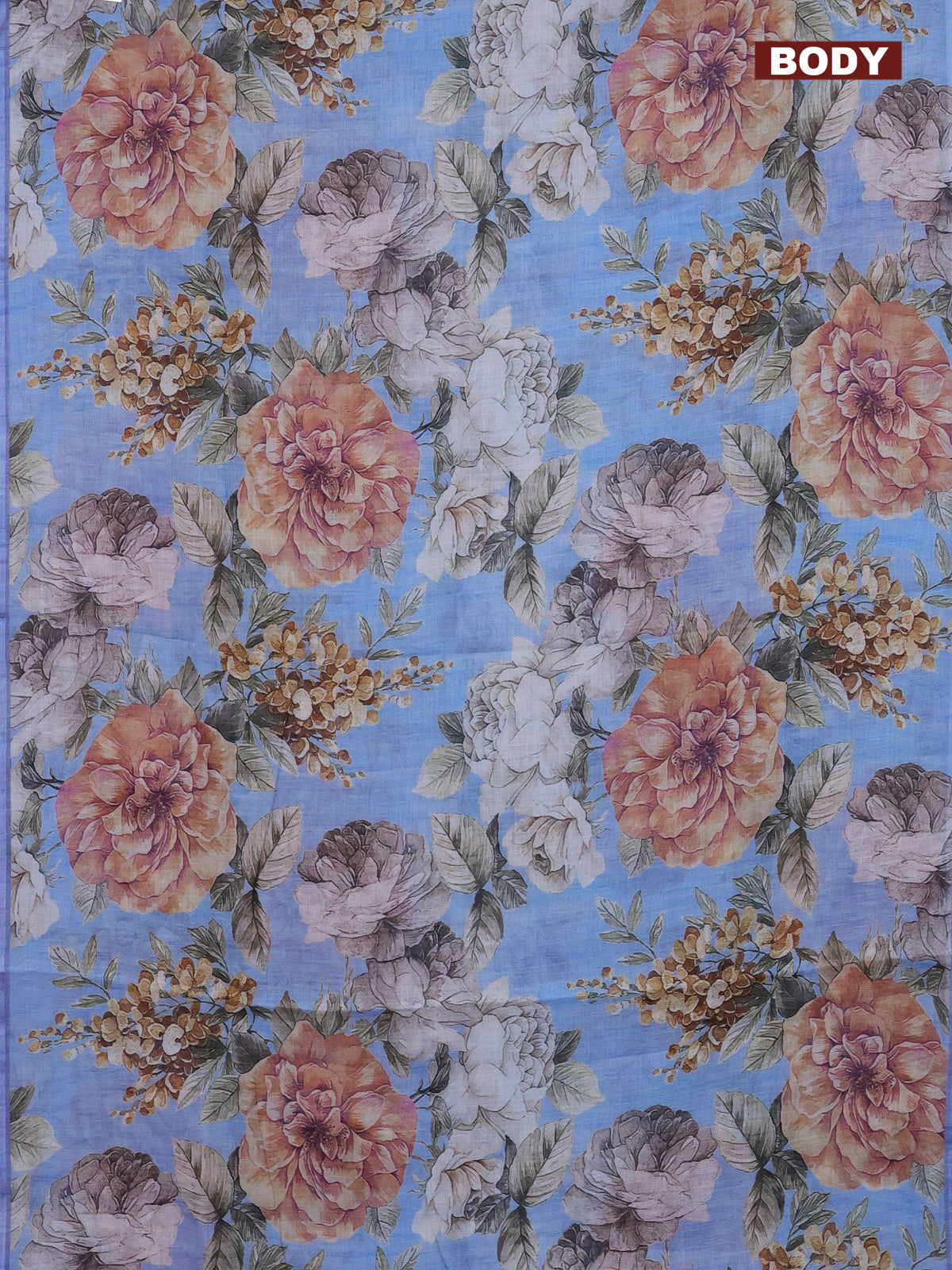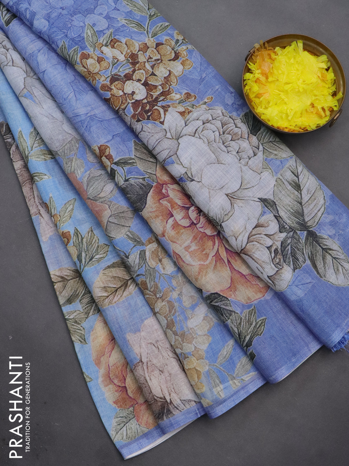 Linen cotton saree blue shade with allover floral digital prints and simple border