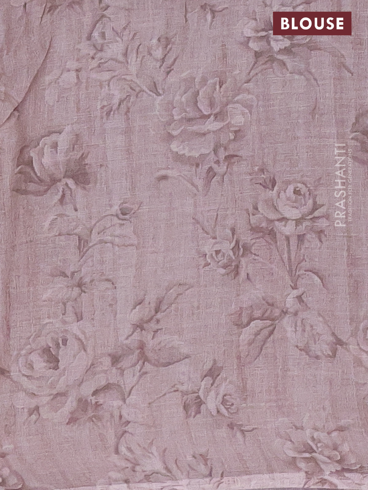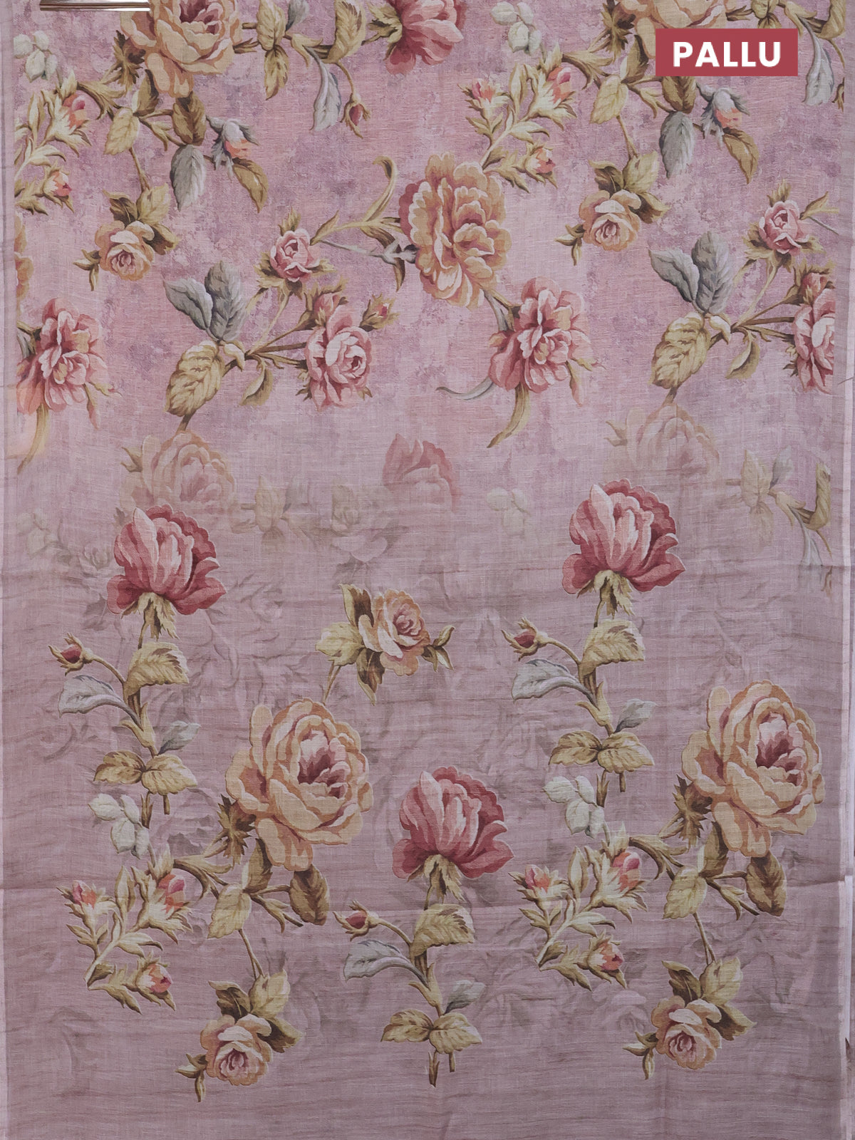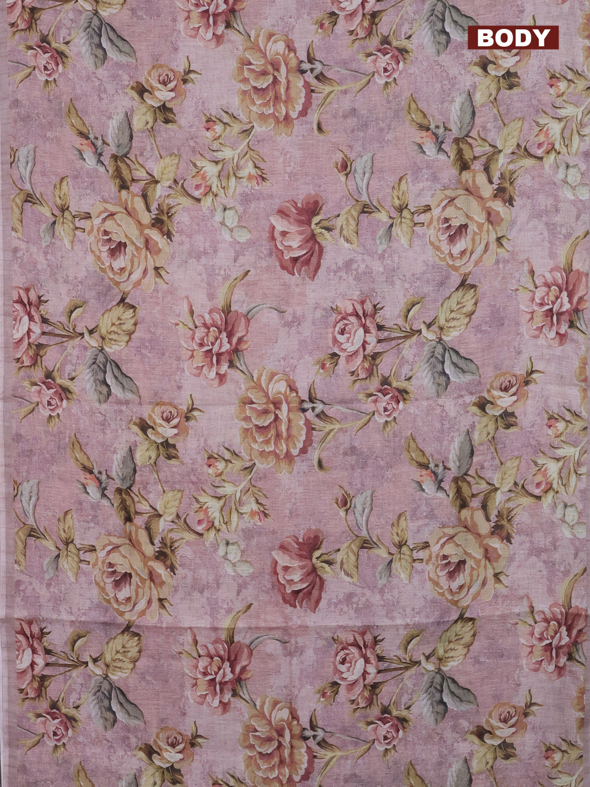 Linen cotton saree pastel brown with allover floral digital prints and simple border