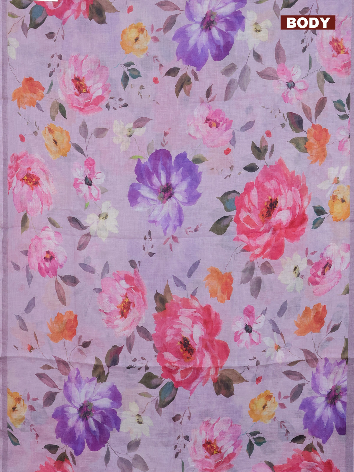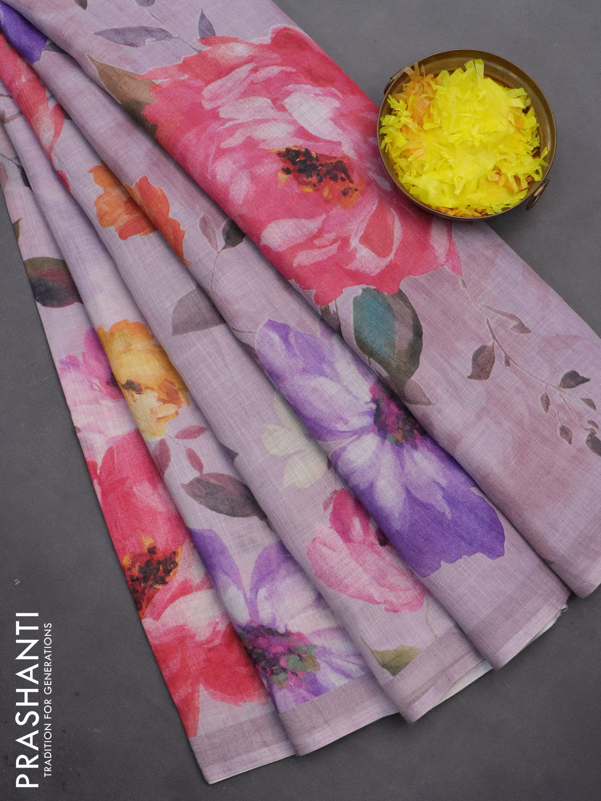 Linen cotton saree pastel lavender with allover floral digital prints and simple border