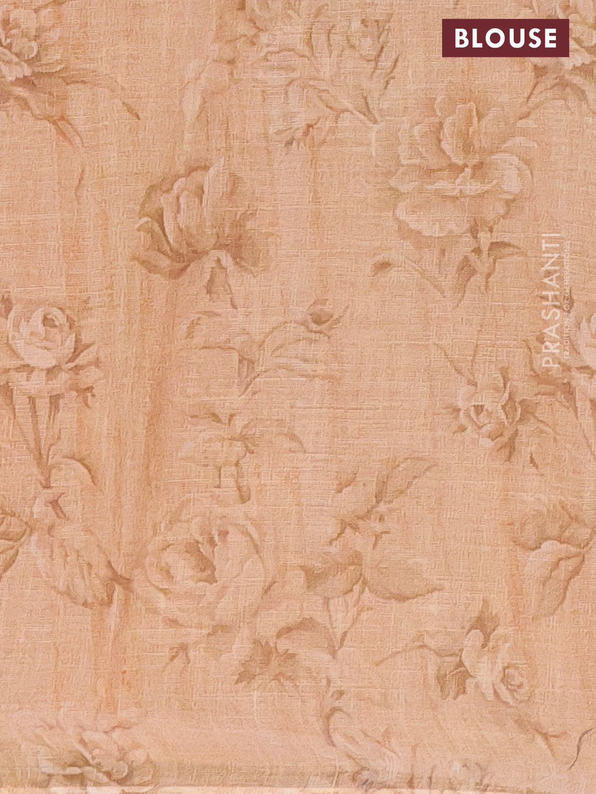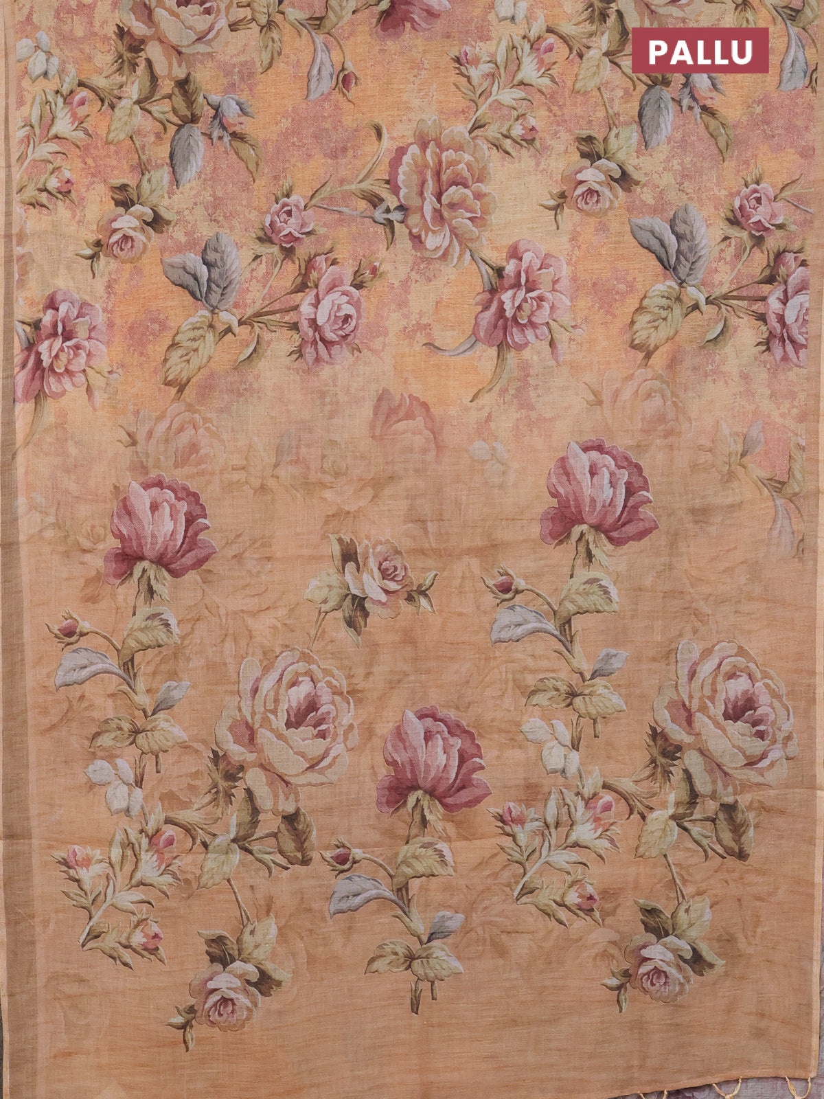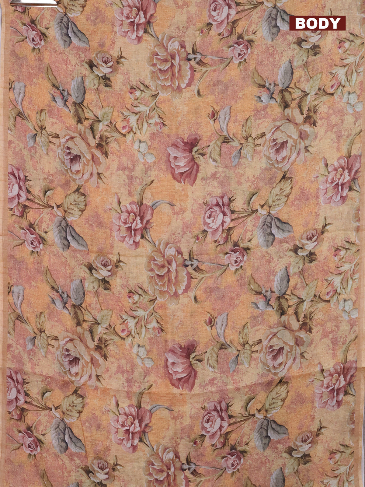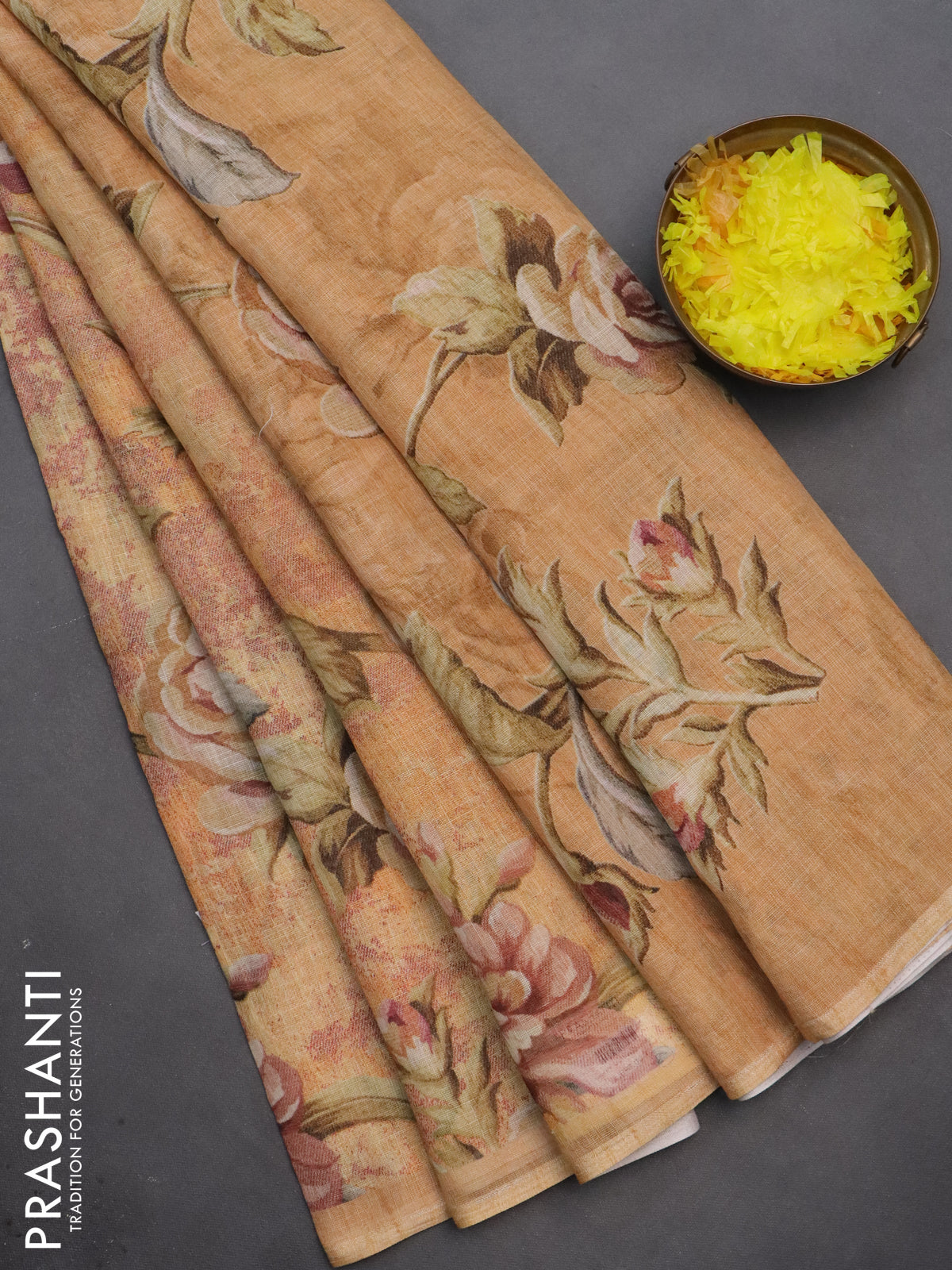 Linen cotton saree sandal with allover floral digital prints and simple border