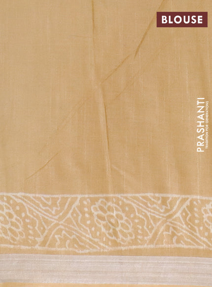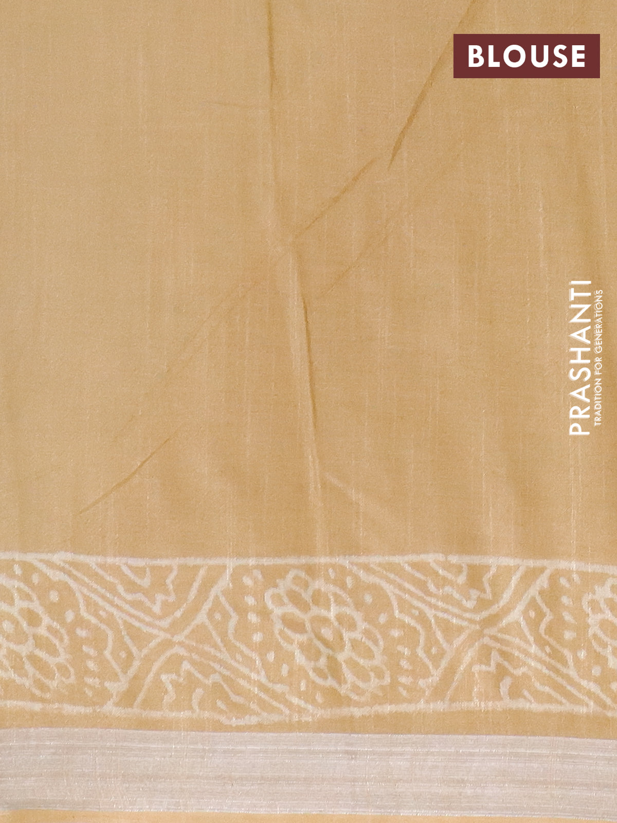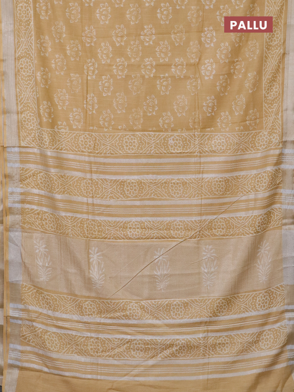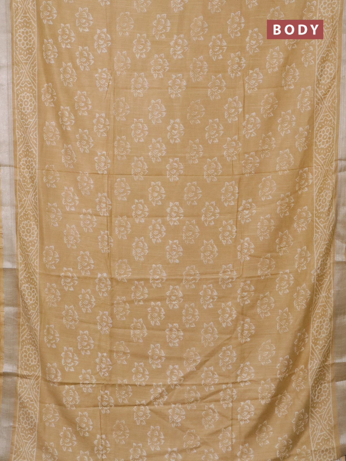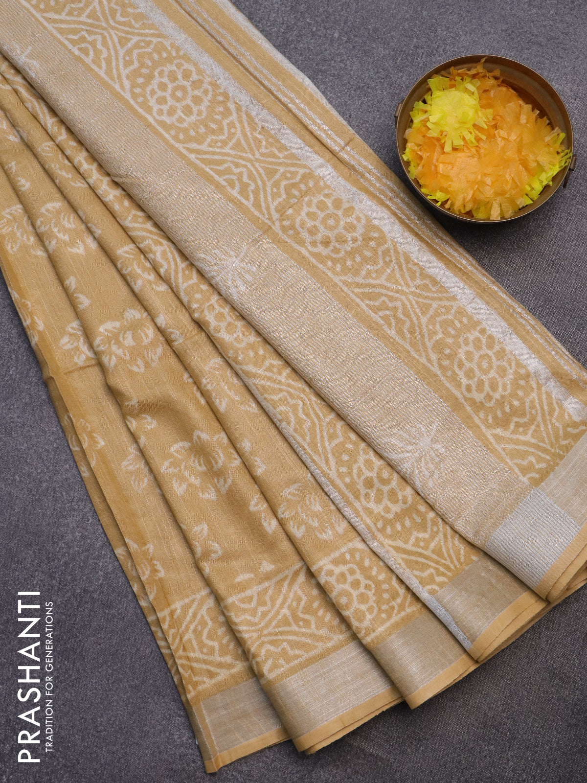Linen cotton saree sandal with floral butta prints and silver zari woven border