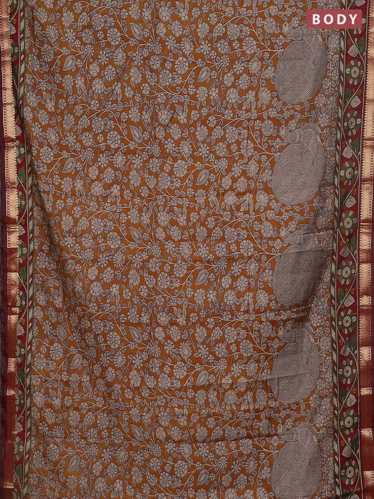 Maheshwari cotton saree mustard yellow and maroon with allover flower prints and zari woven border